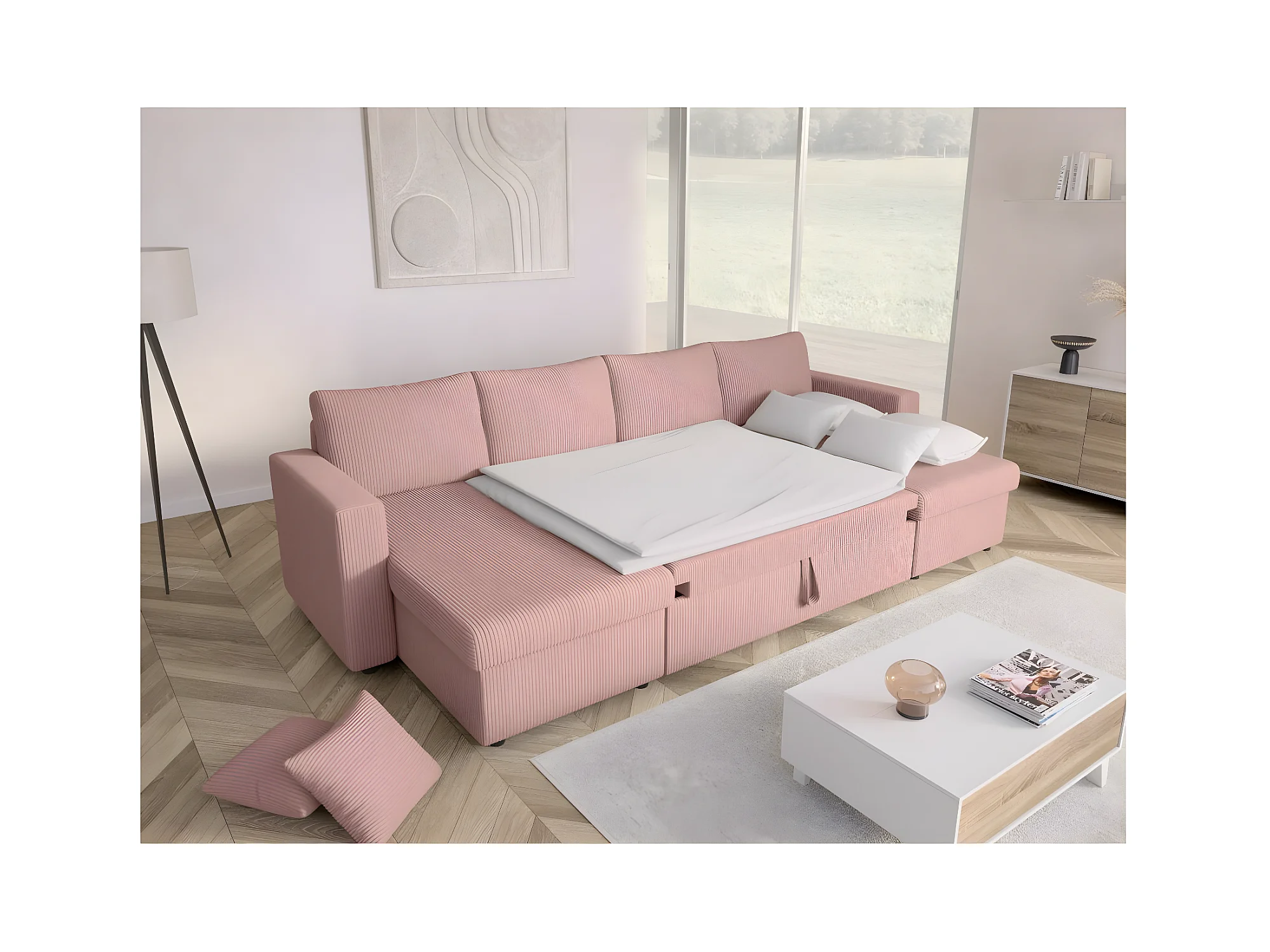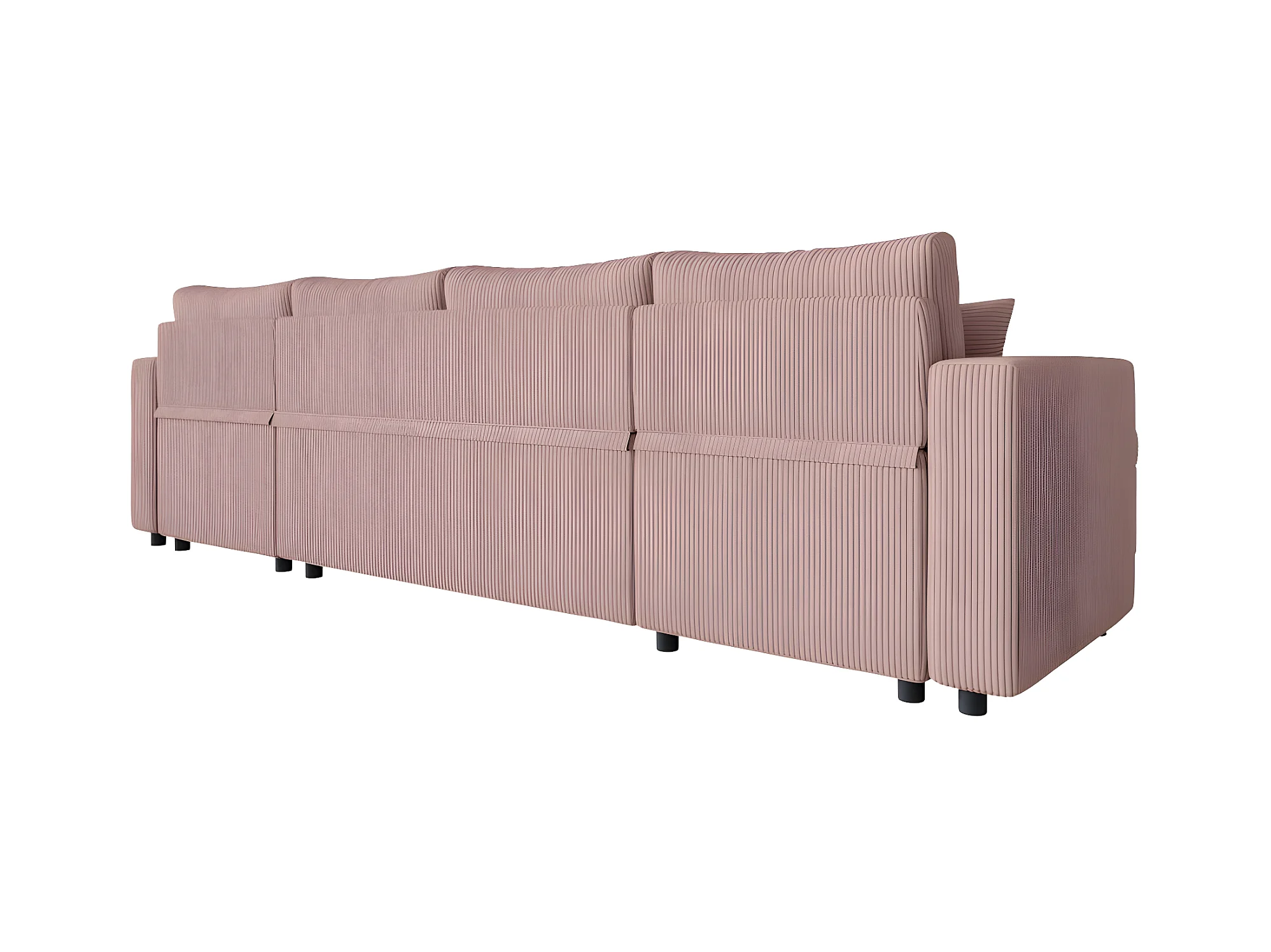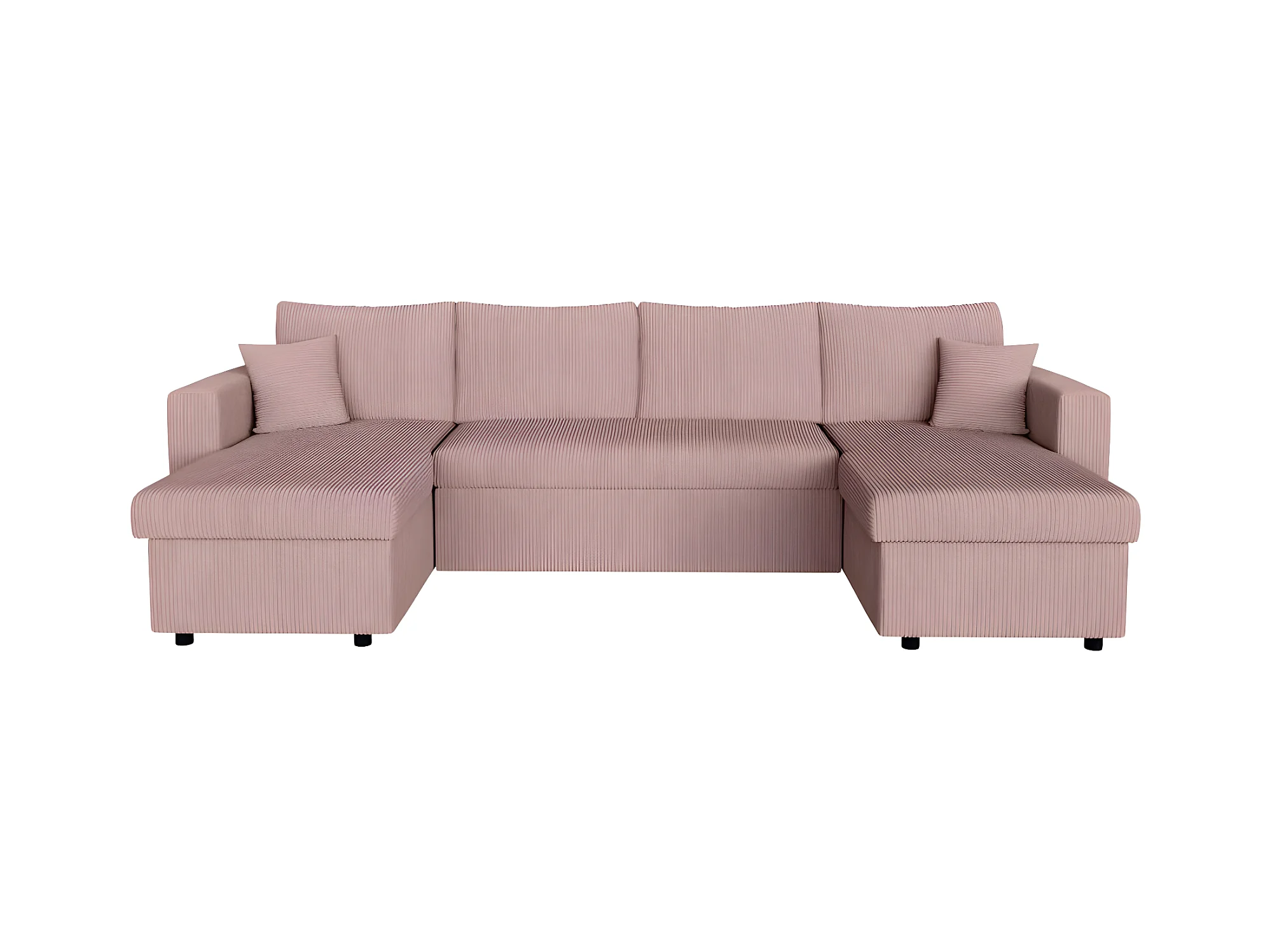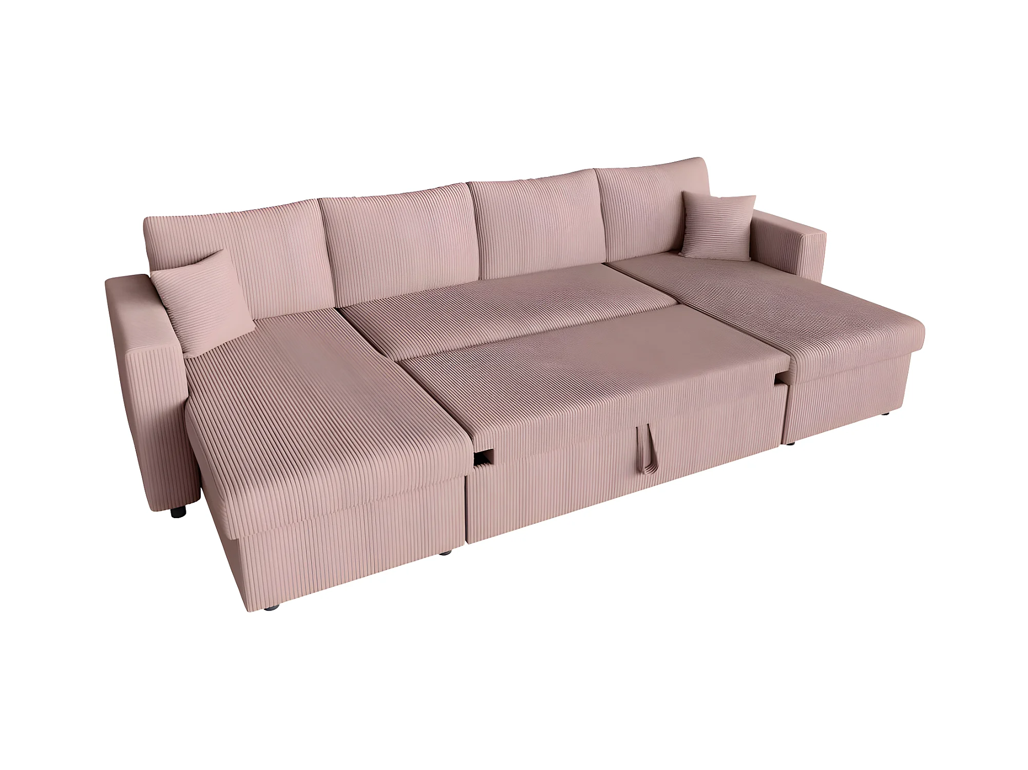 Canapé panoramique 6 places Maria convertible avec 2 coffres en velours côtelé - Rose - L295 x P146 x H81cm - Loungitude