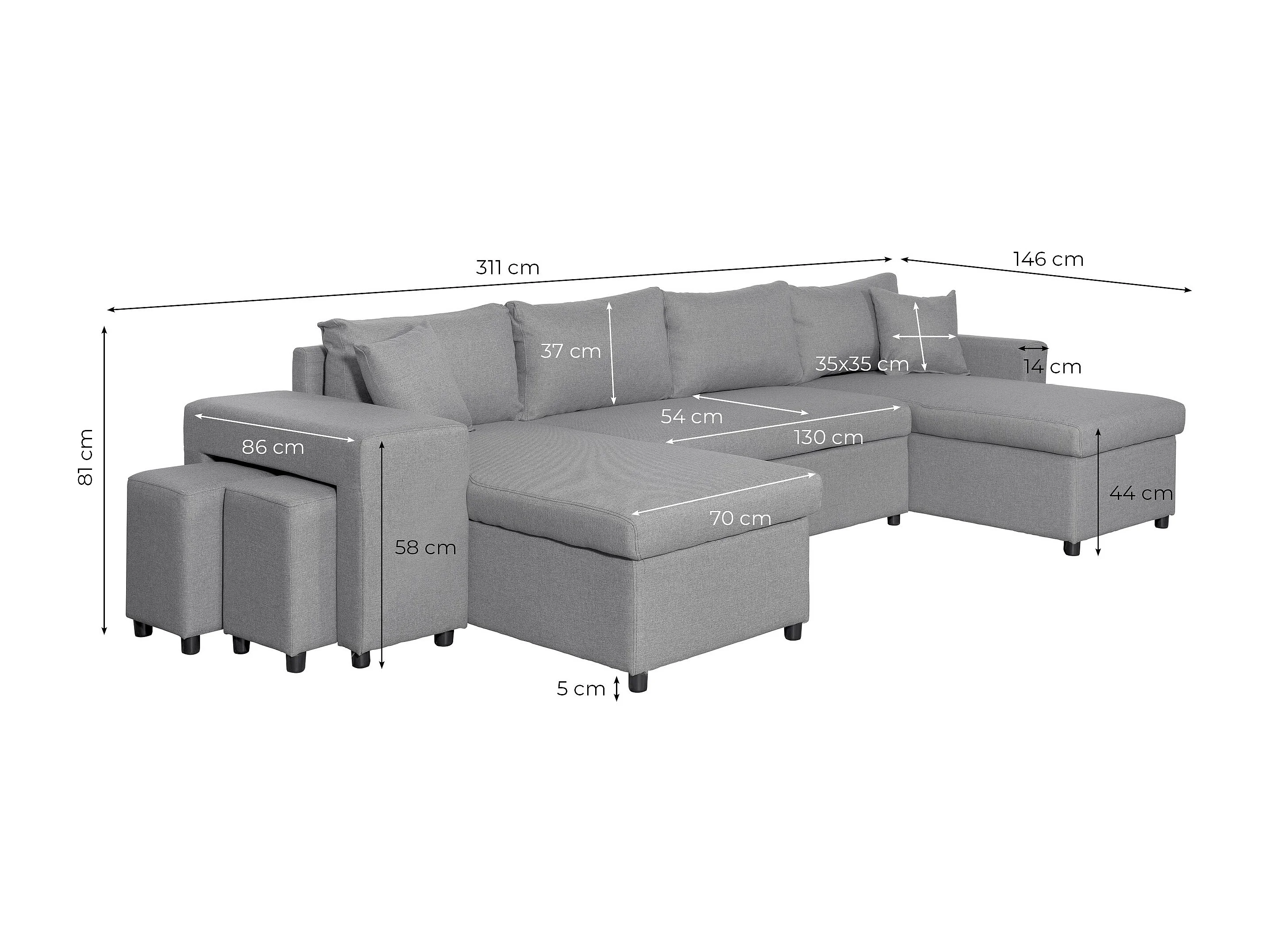 Canapé d'angle panoramique Oslo convertible avec coffres et poufs à gauche - Tissu - Gris clair - L311 x P146 x H81cm - Loungitude