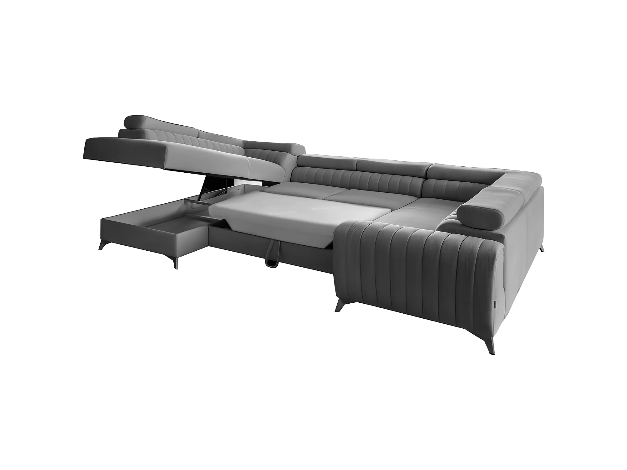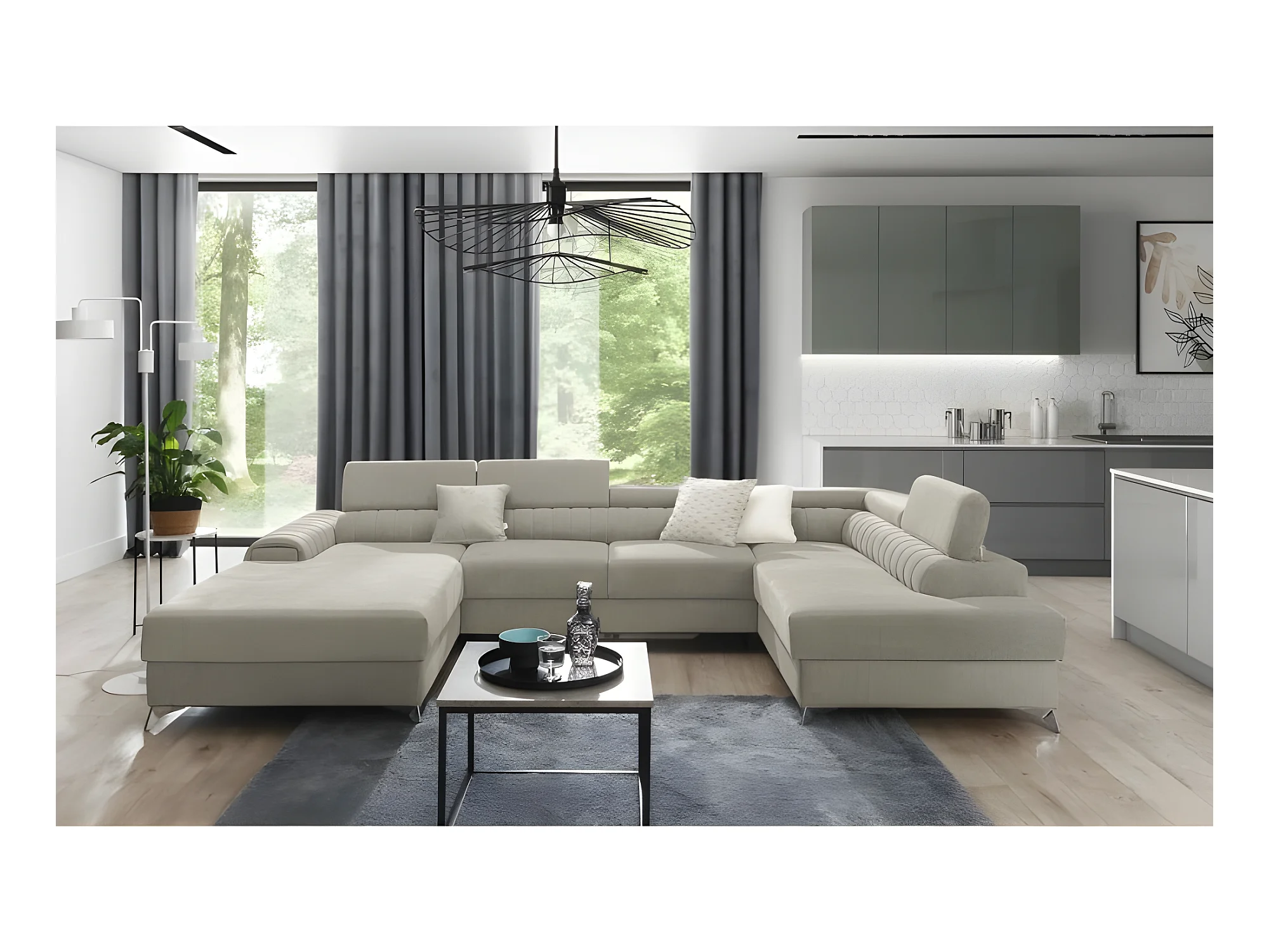 Canapé d'angle panoramique RILO avec têtières réglables angle droit beige