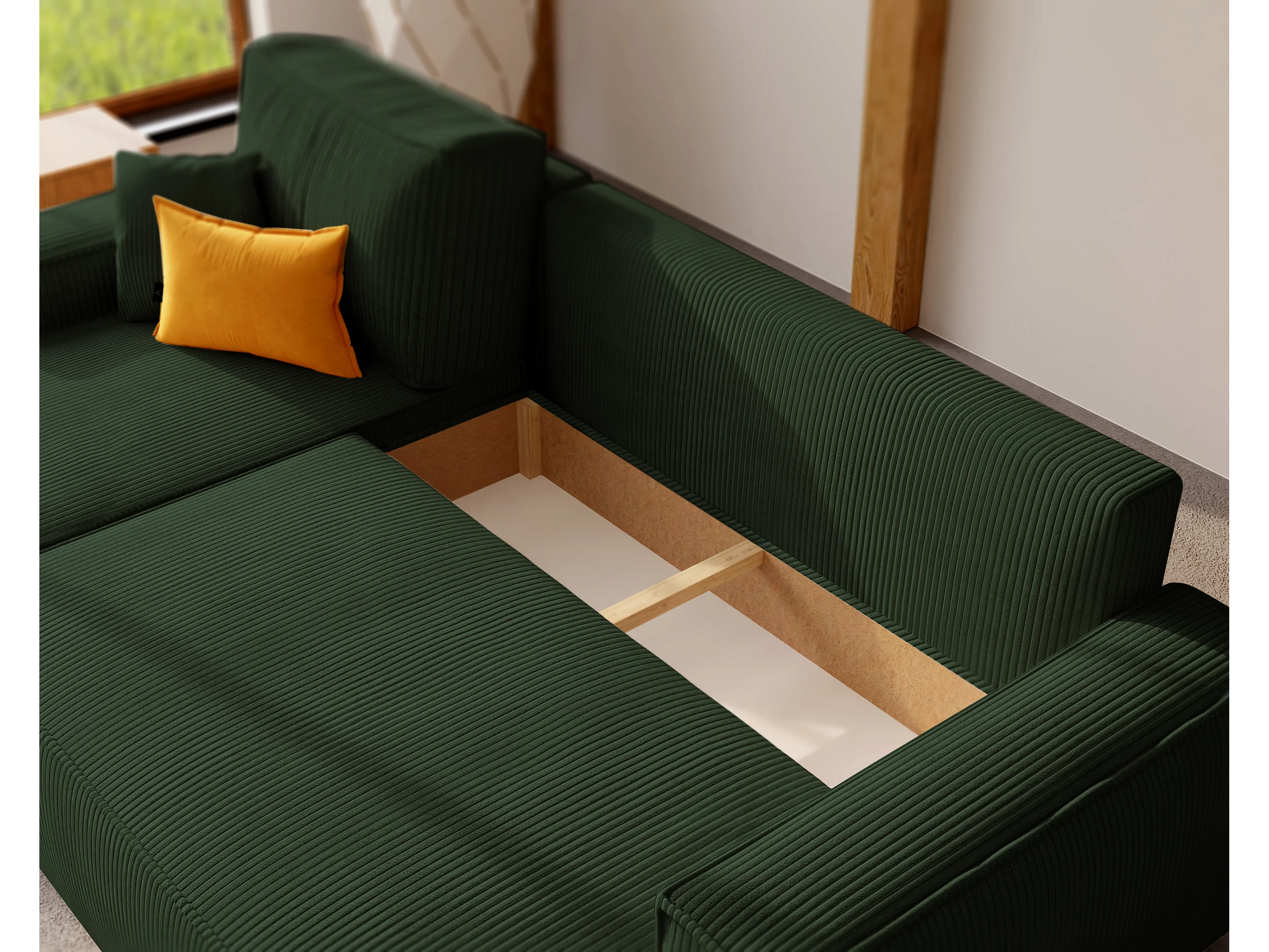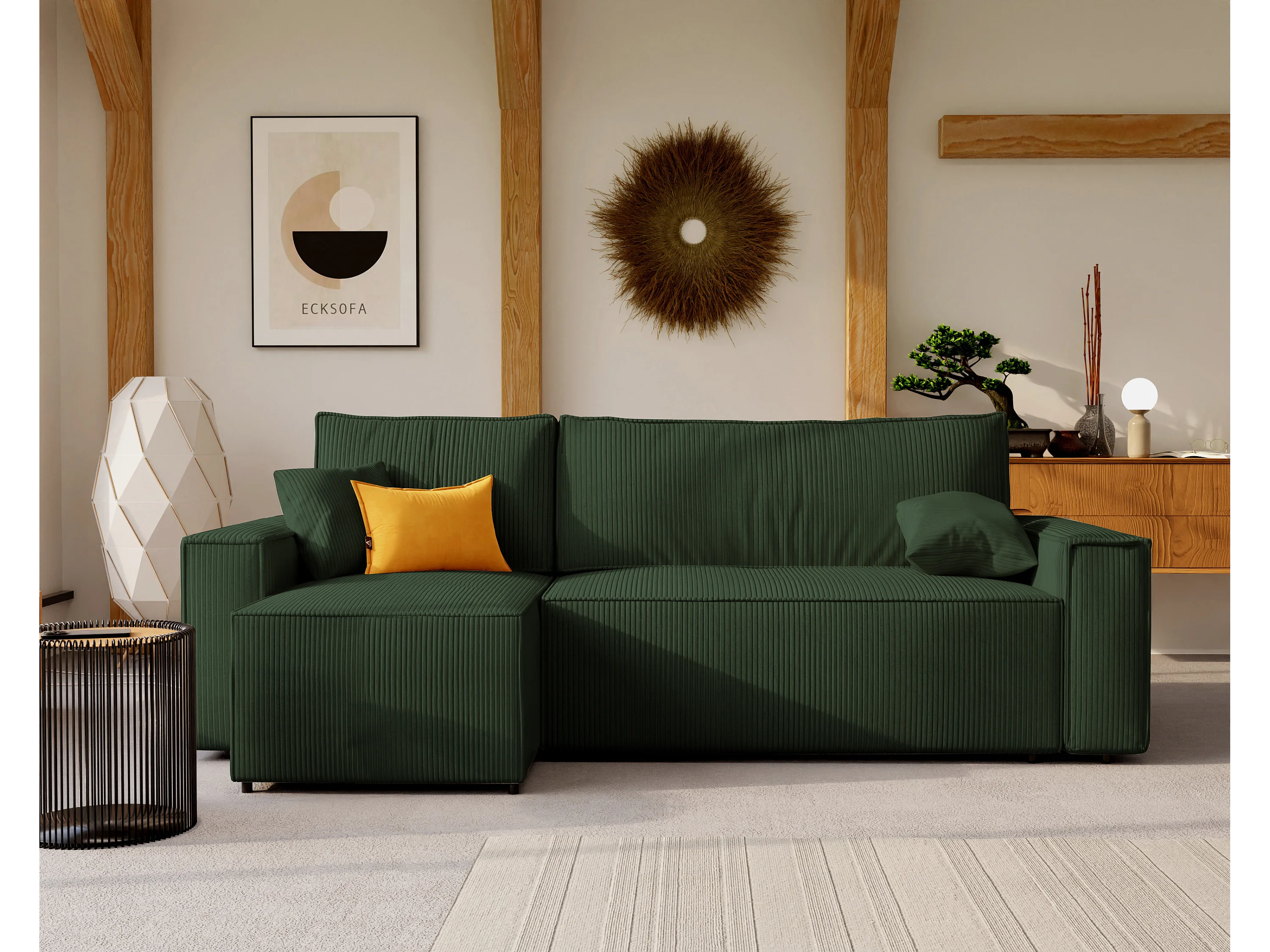 Canapé d'angle Paris réversible convertible en tissu Vert