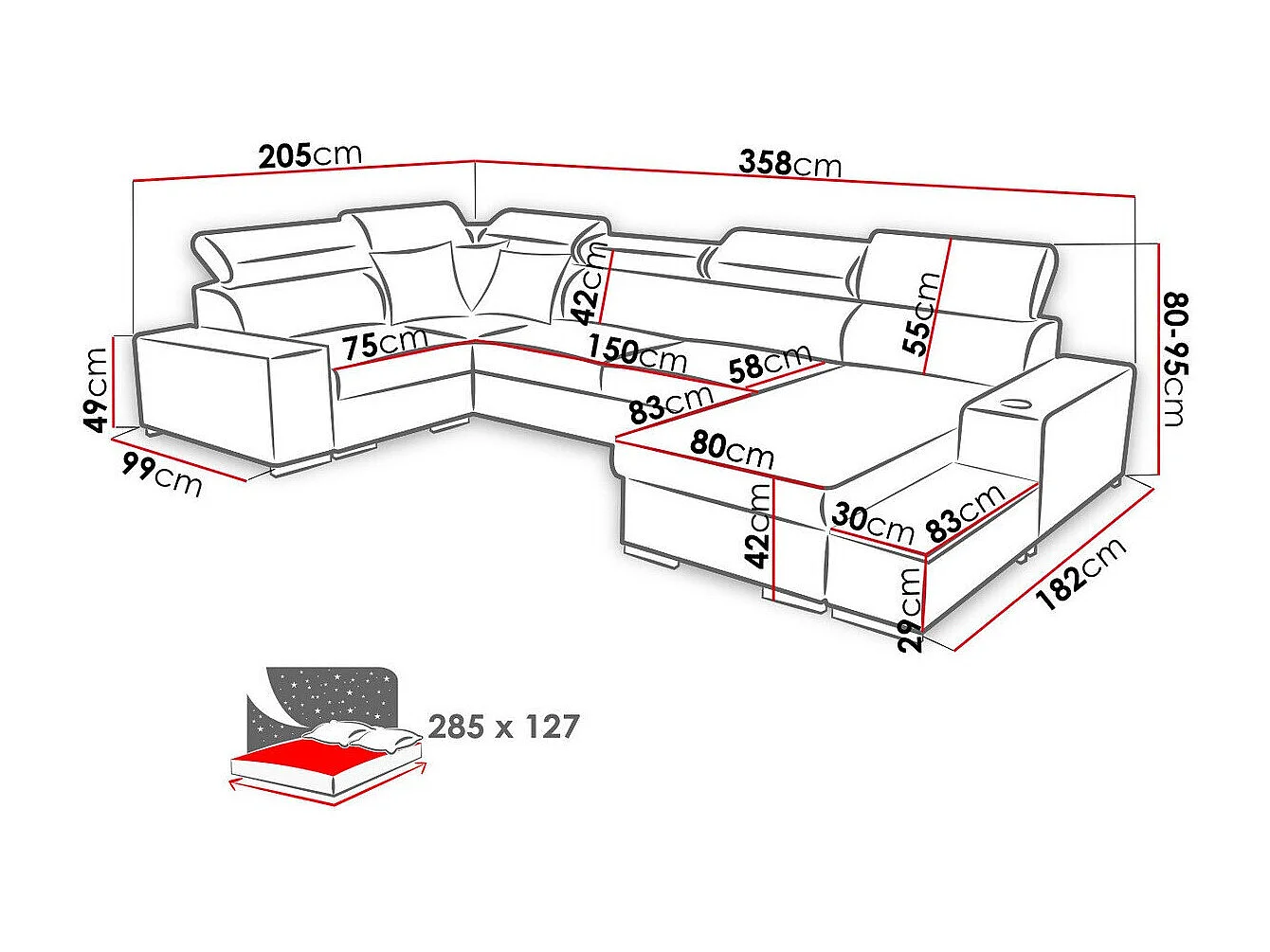 Canapé d'angle Pearland 101, Gris, Disponible, 358x205x80cm