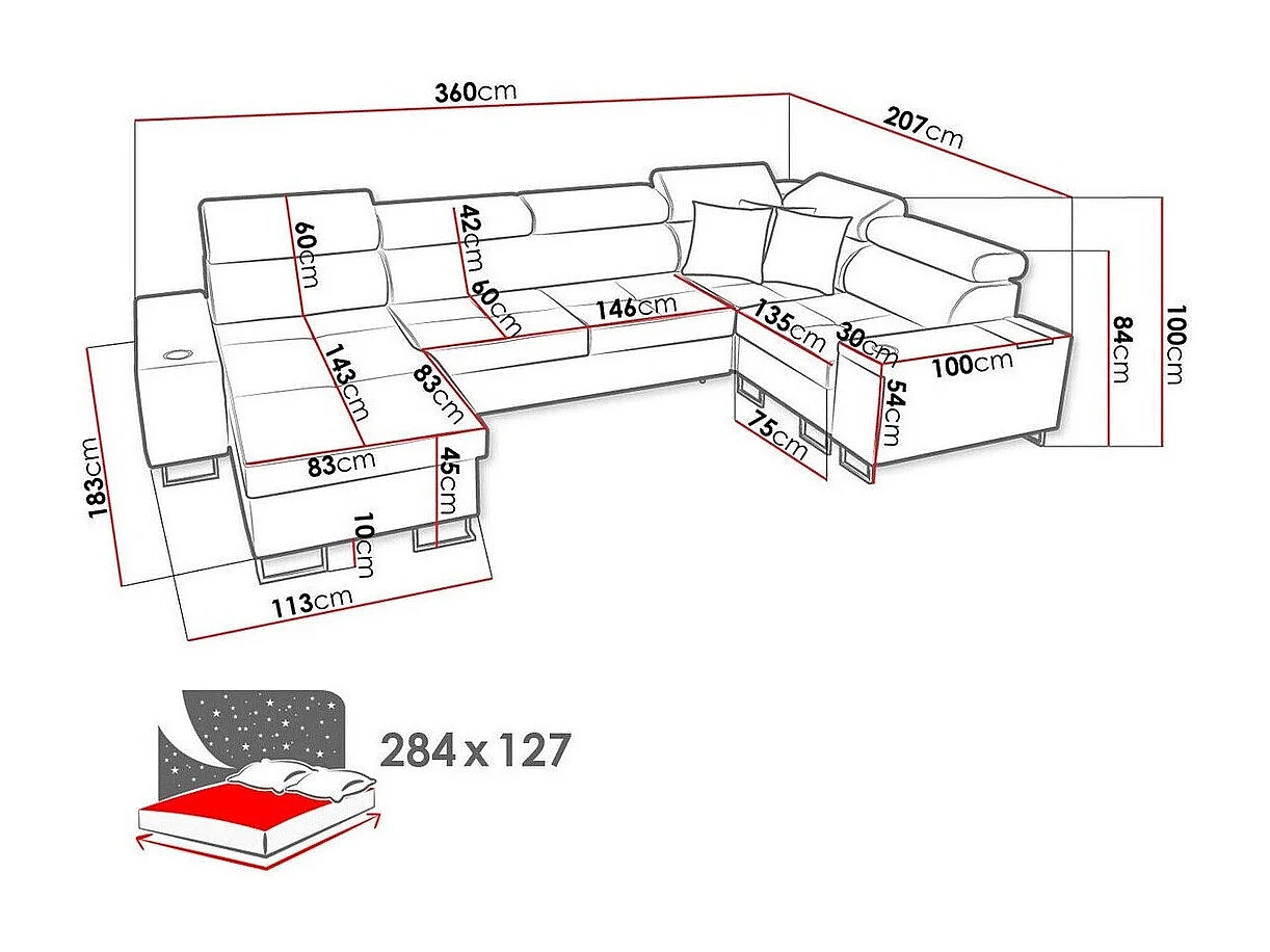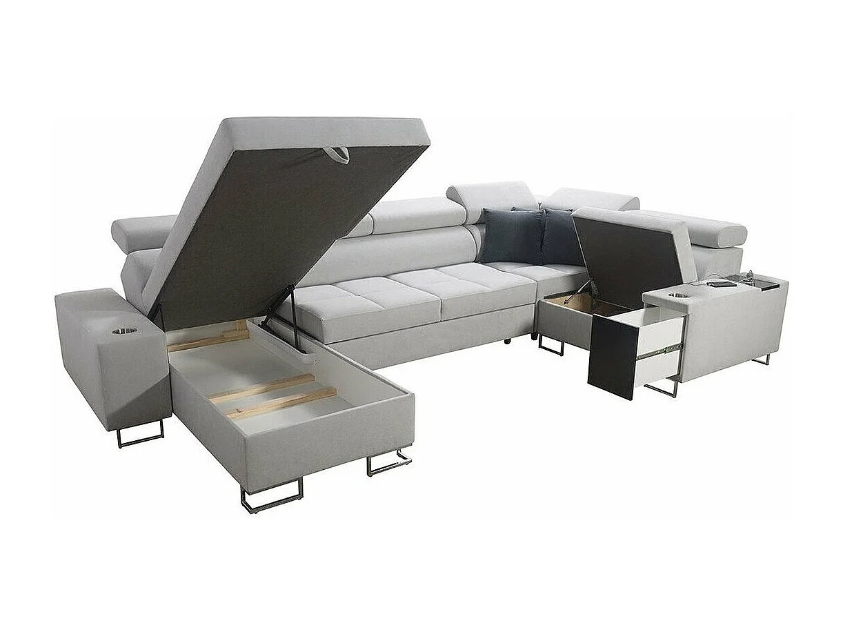Canapé d'angle Pearland 112, Bleu, Fonction de couchage, Boîte de literie, 360x207x84cm