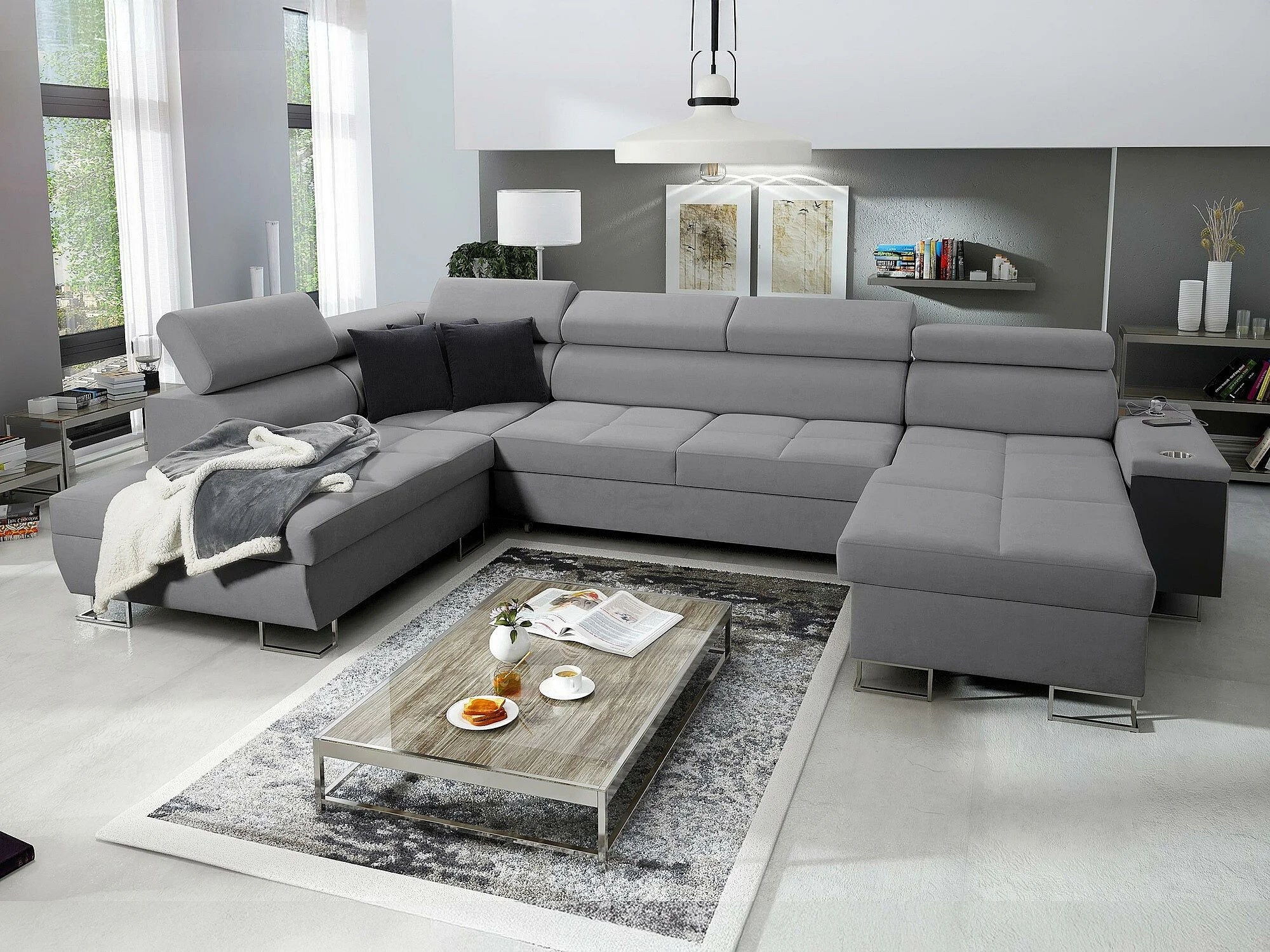 Canapé d'angle Pearland 114, Gris, Fonction de couchage, Boîte de literie, 360x221x84cm