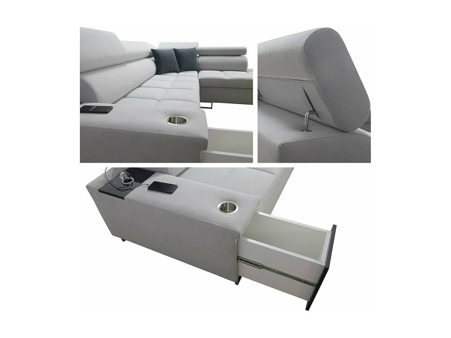 Canapé d'angle Pearland 115, Gris, Fonction de couchage, Boîte de literie, 283x221x84cm