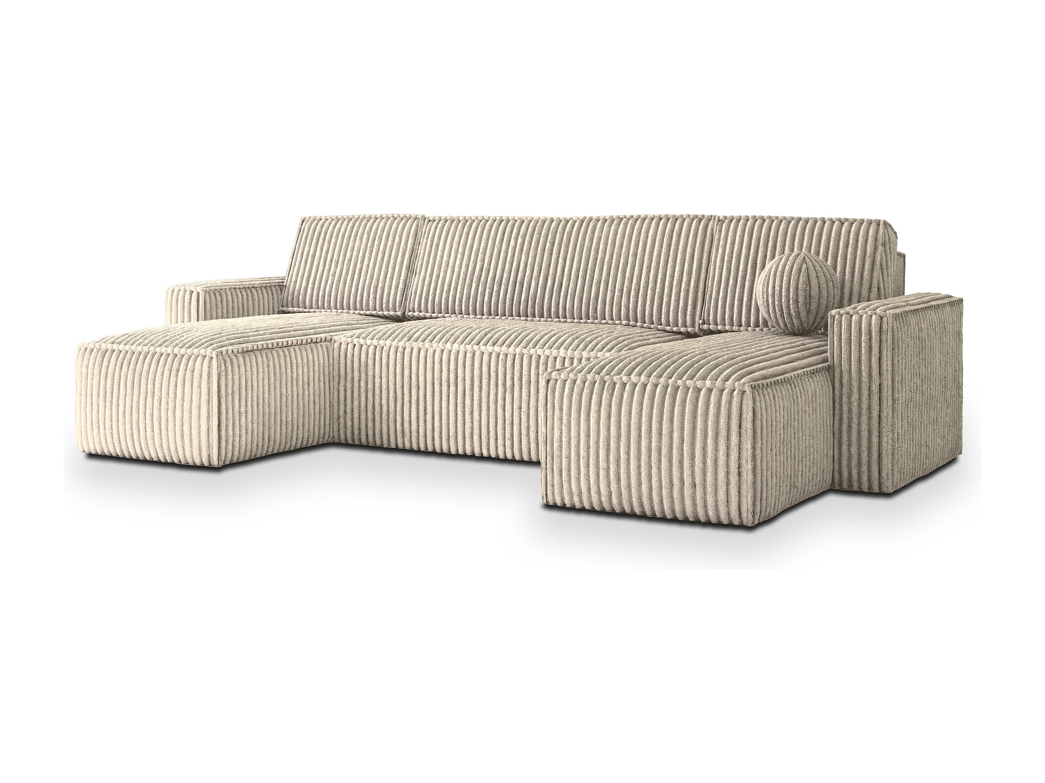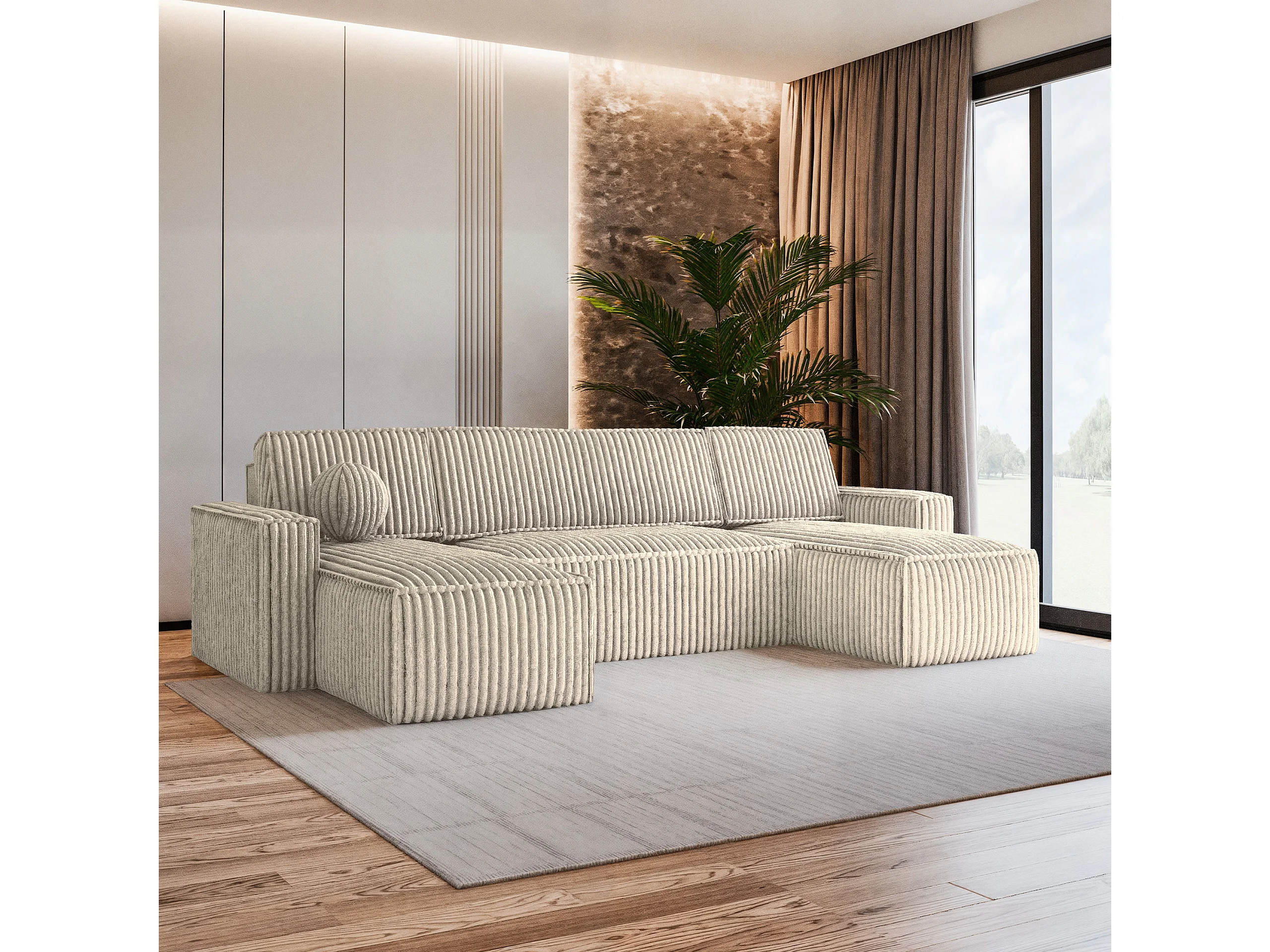Canapé d'angle PESANO Crème en velours côtelé avec fonction de couchage