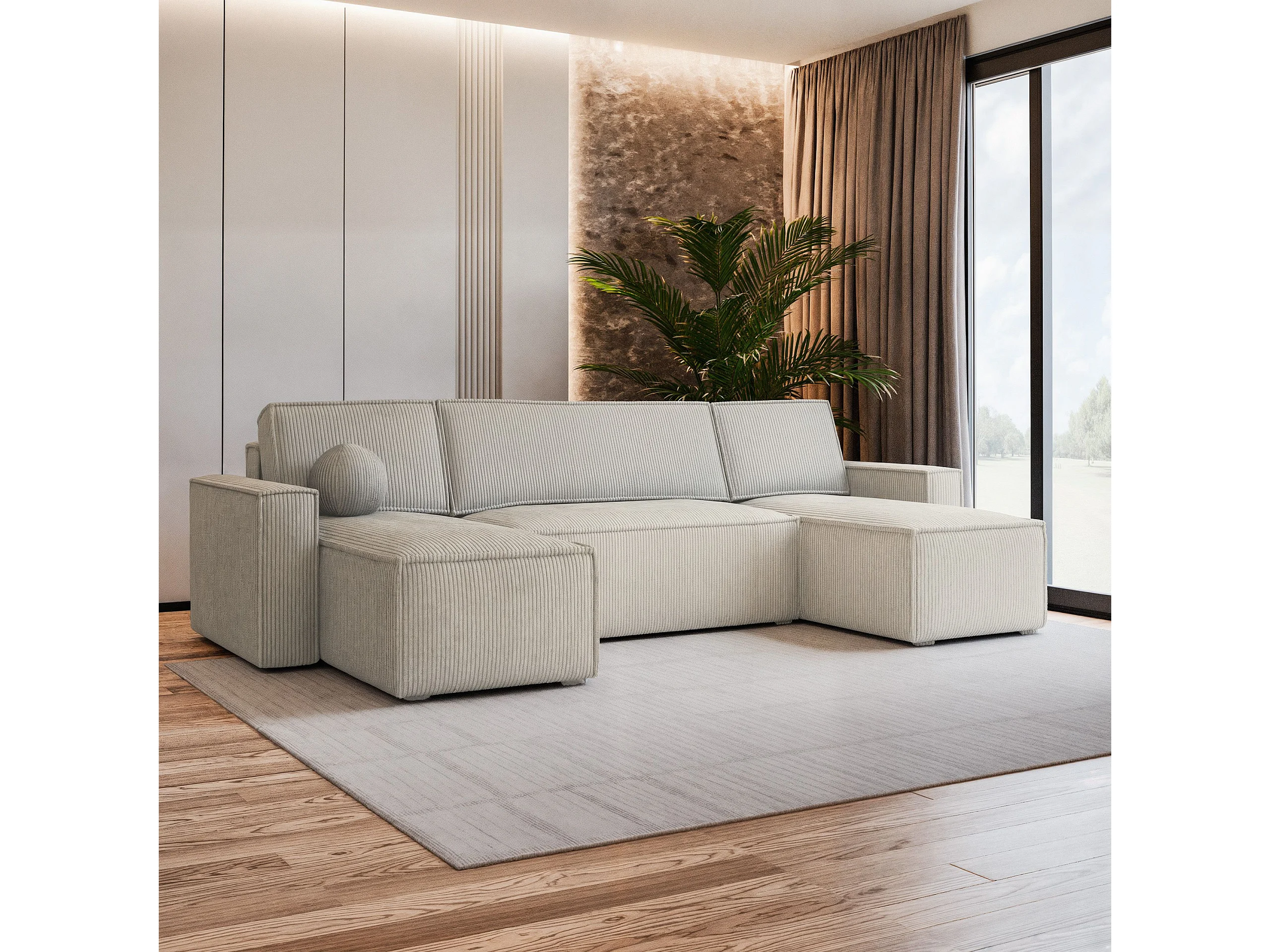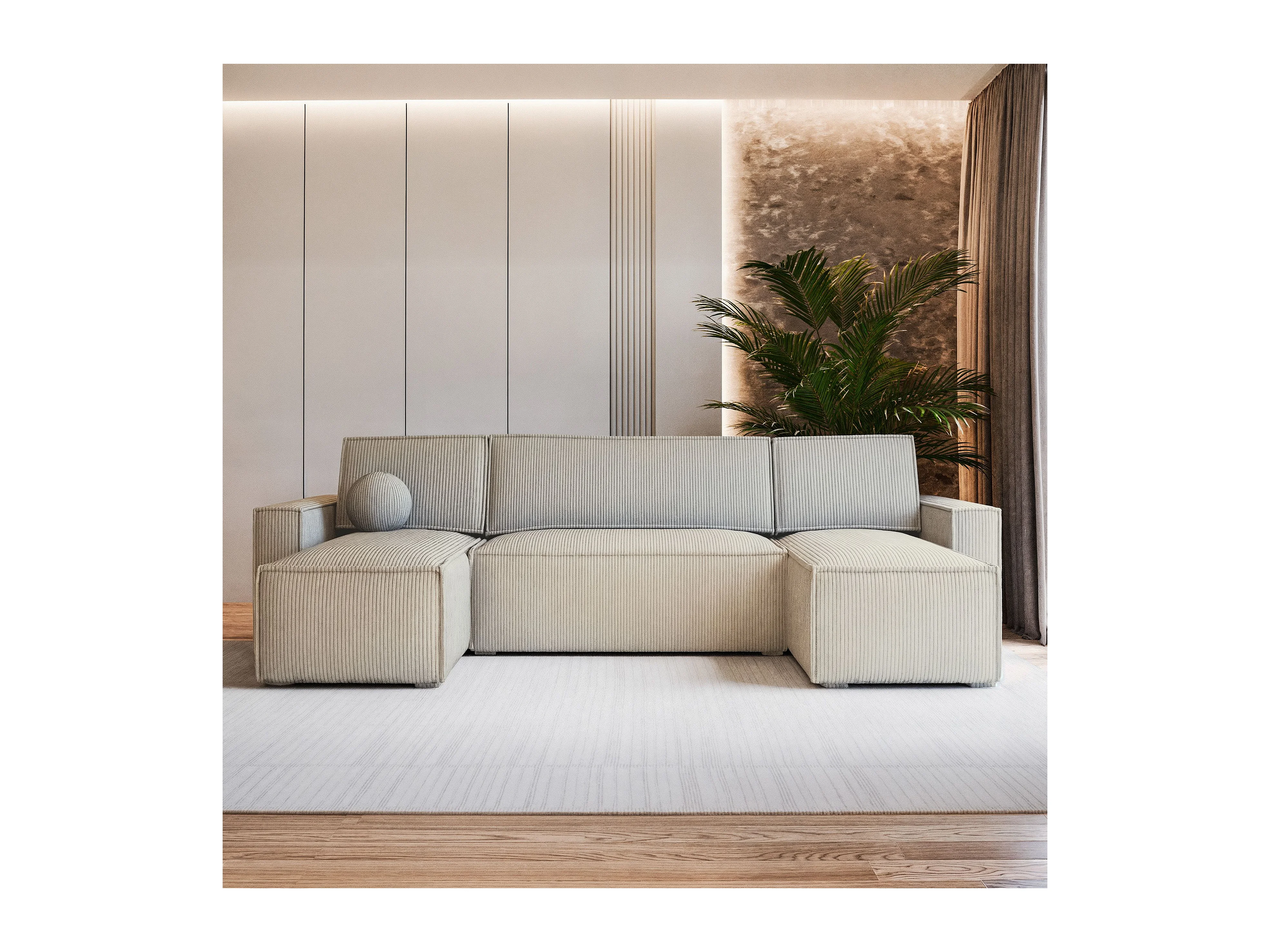 Canapé d'angle PESANO Crème en velours côtelé avec fonction de couchage