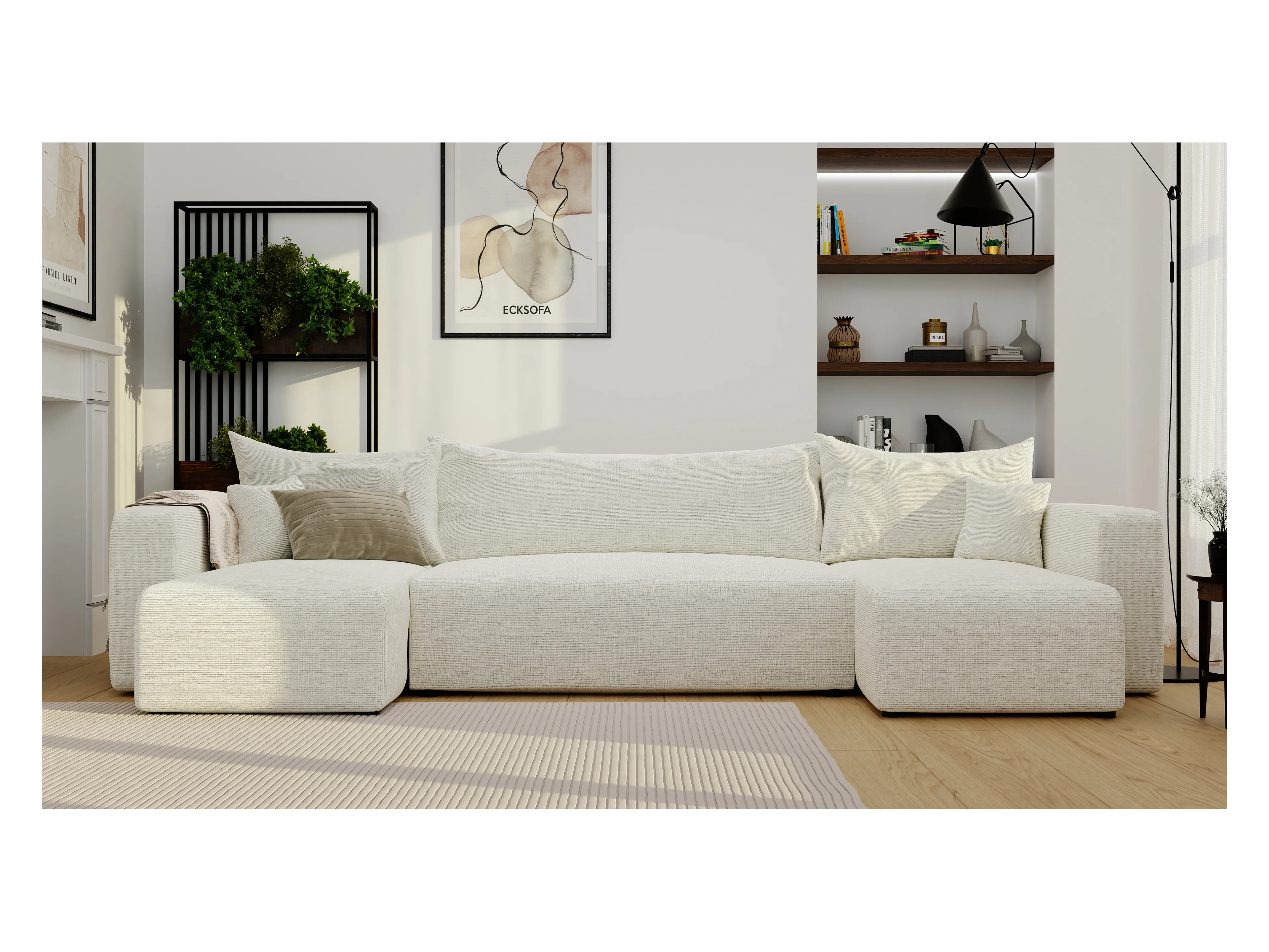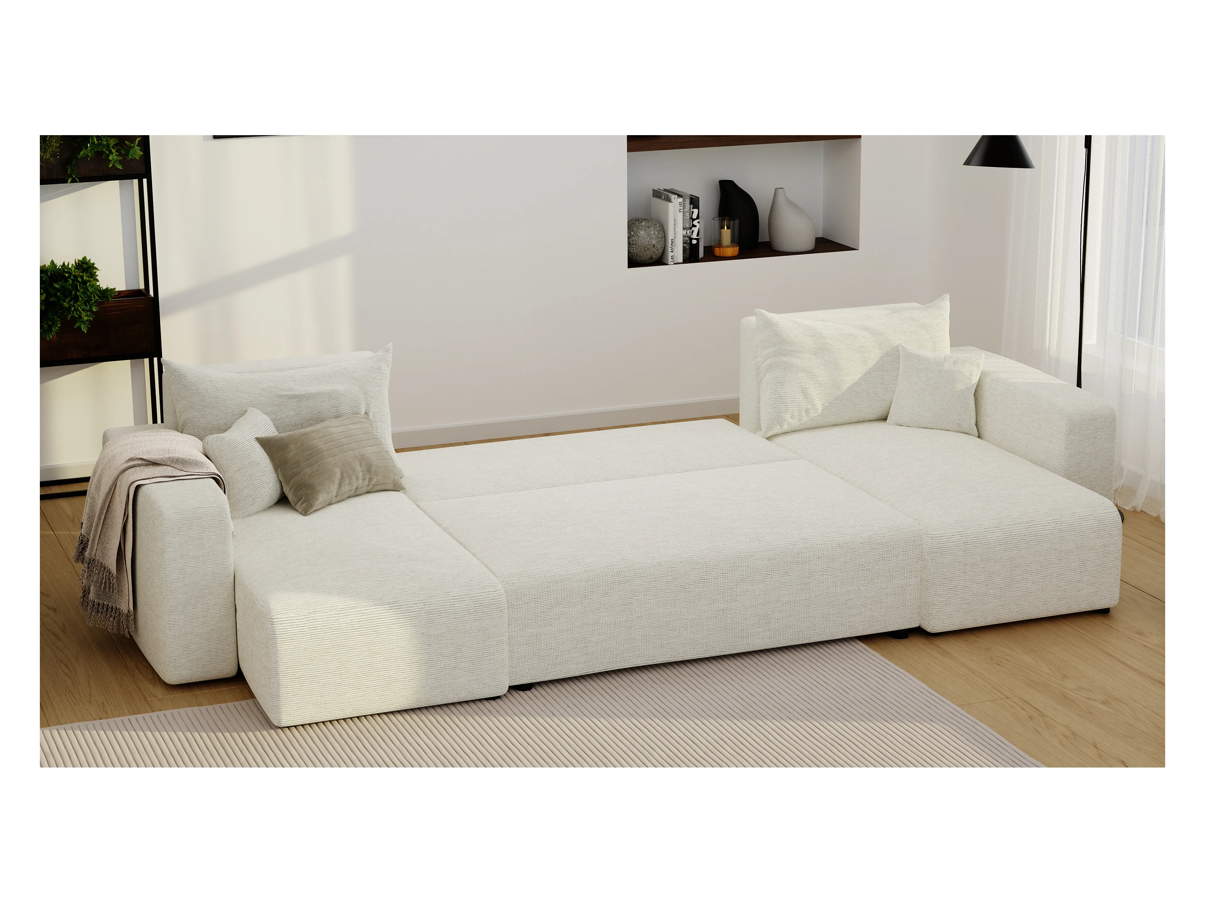Canapé d'angle Piano U fonction couchage, et tissu Beige