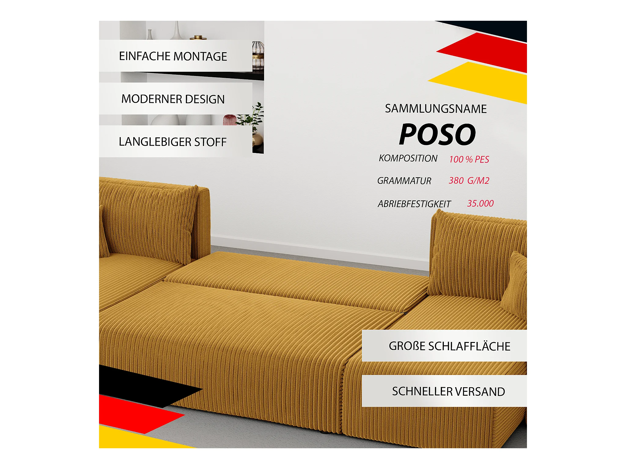 Canapé d'angle Piano U fonction couchage, et tissu Jaune moutarde