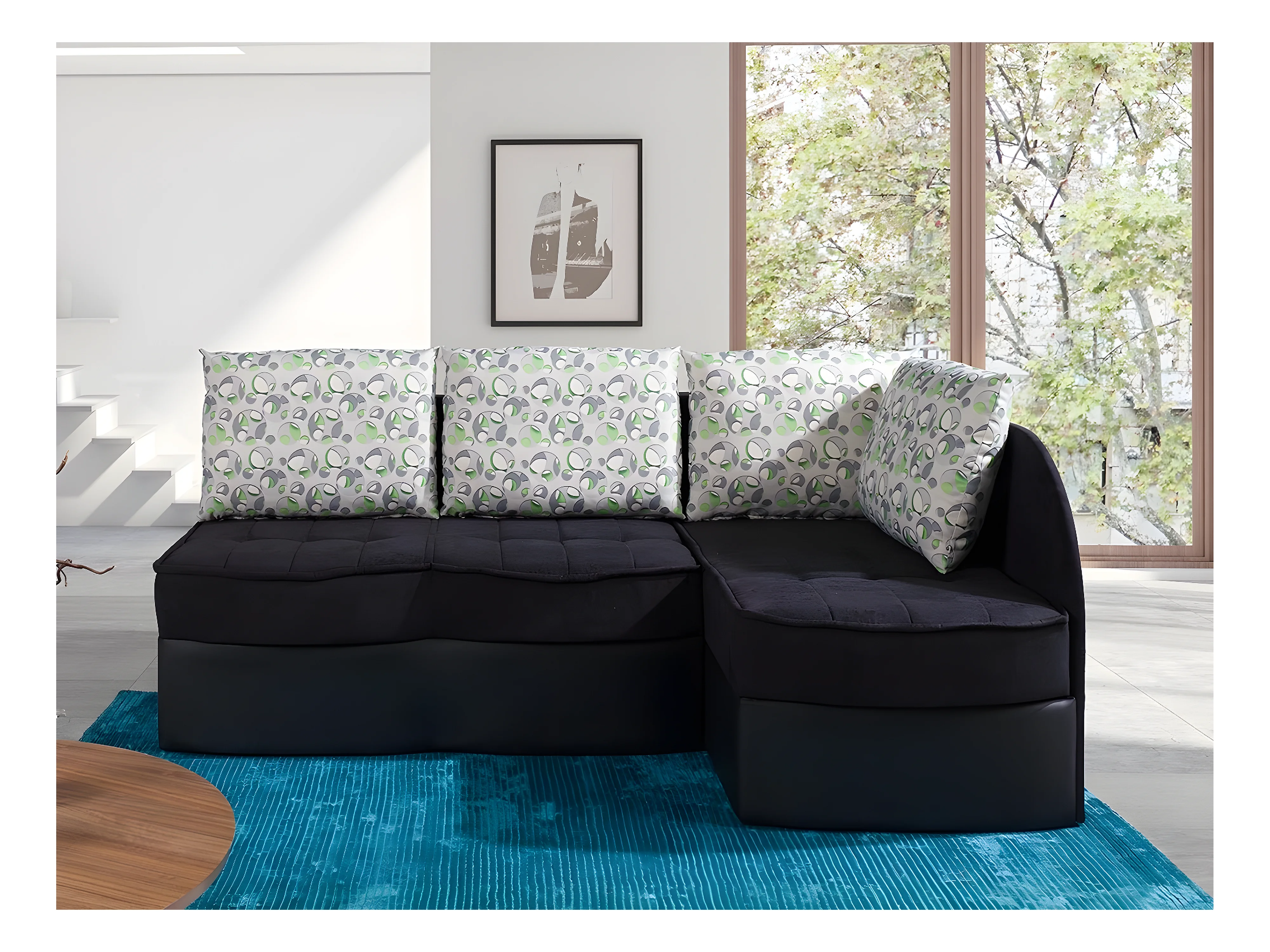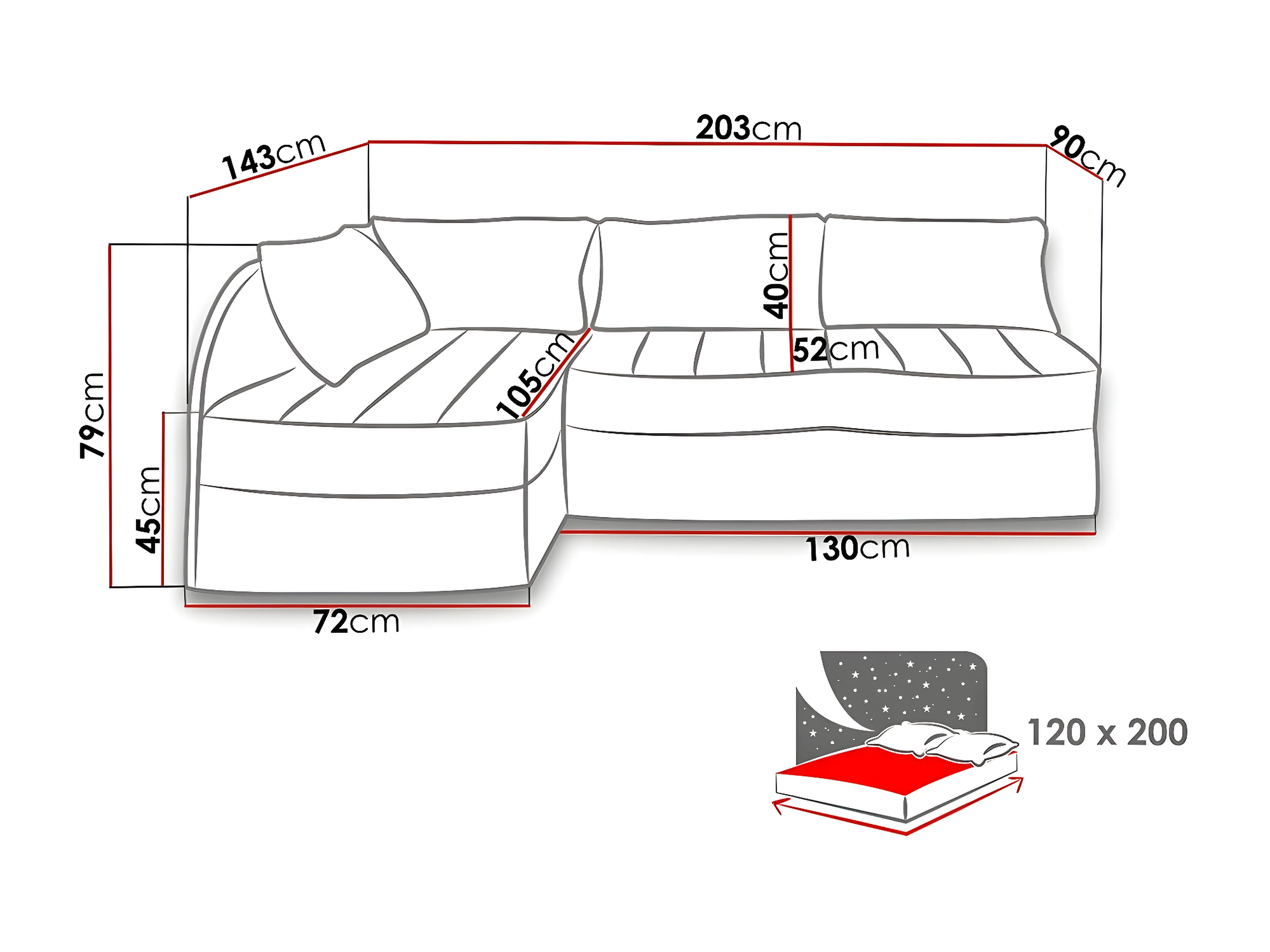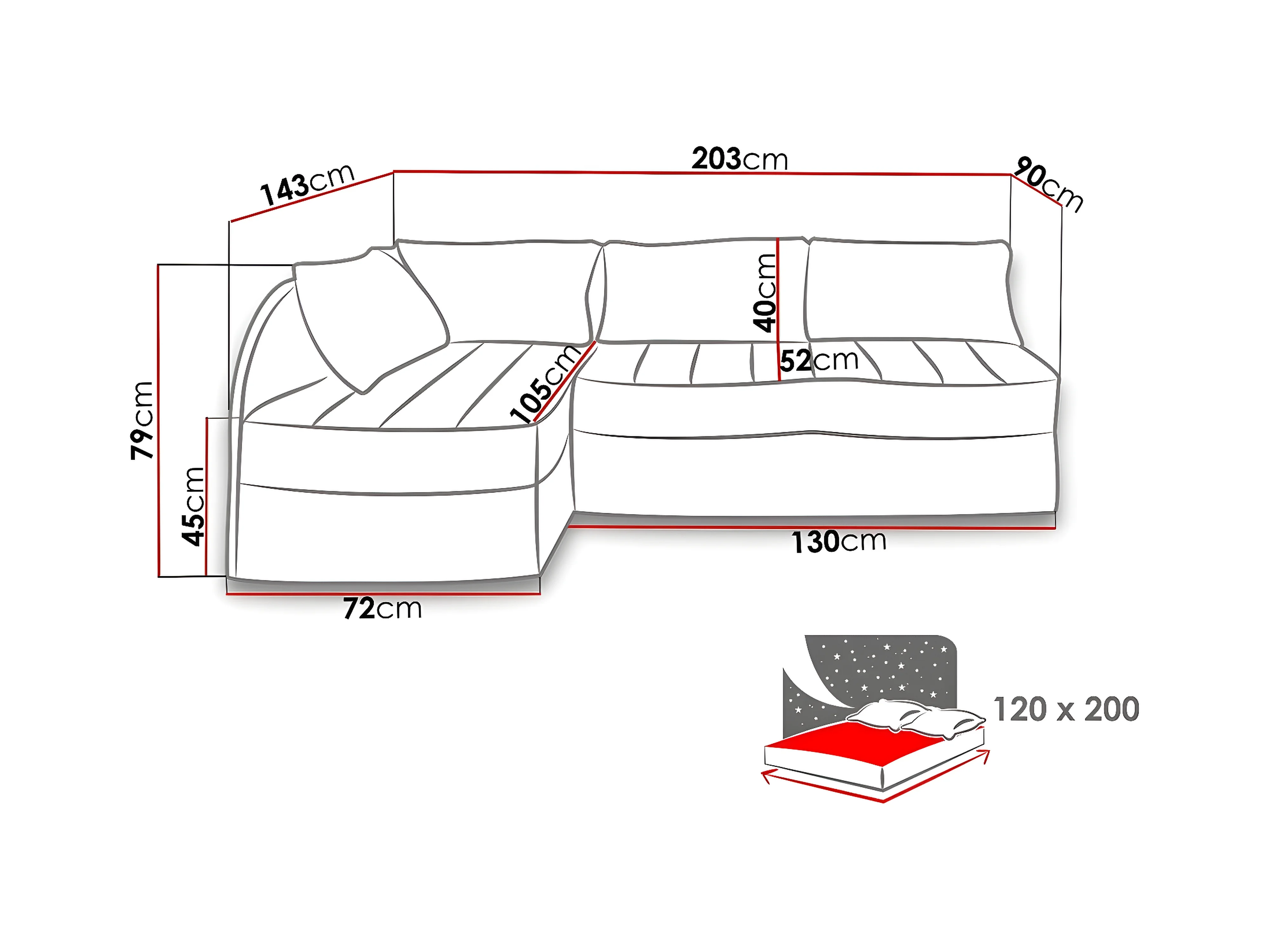 Canapé d'angle Providence 119, Noir, Fonction de couchage, Boîte de literie, 203x143x79cm