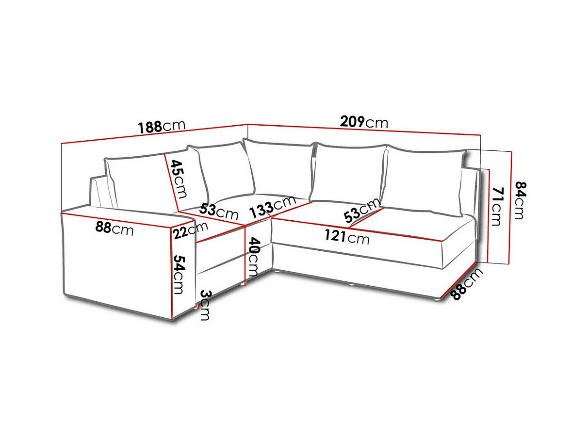 Canapé d'angle Providence 120, Gris, 209x188x84cm
