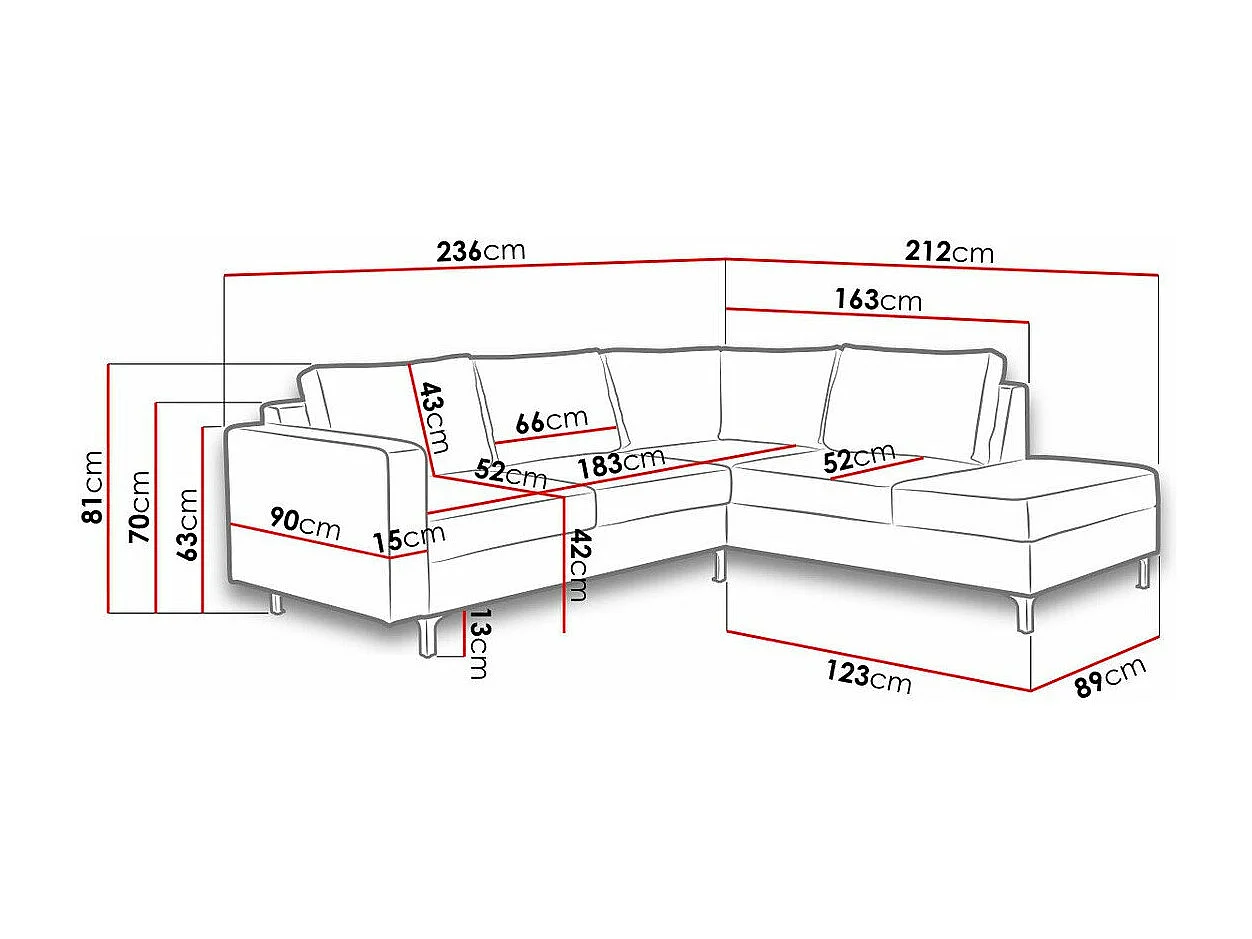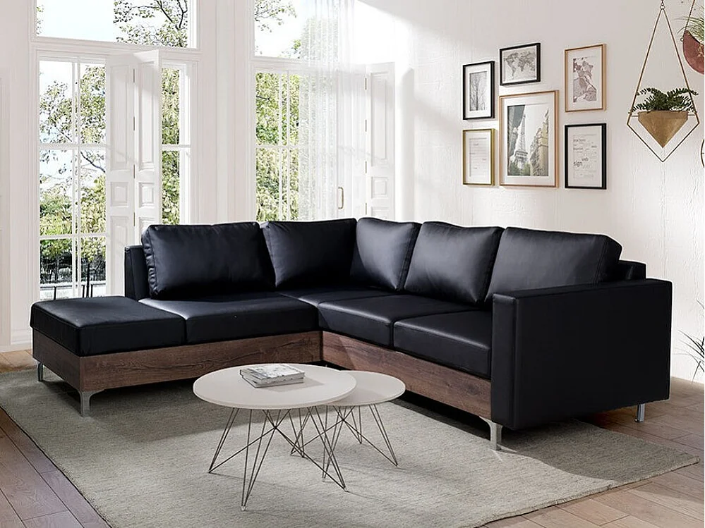 Canapé d'angle Providence 140, Noir, 236x212x81cm