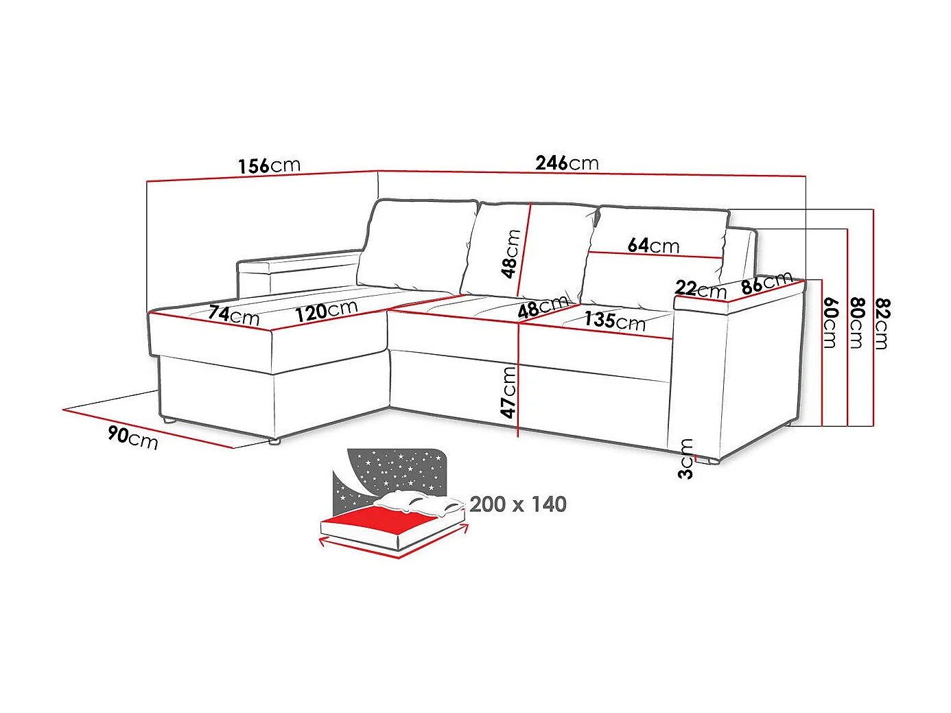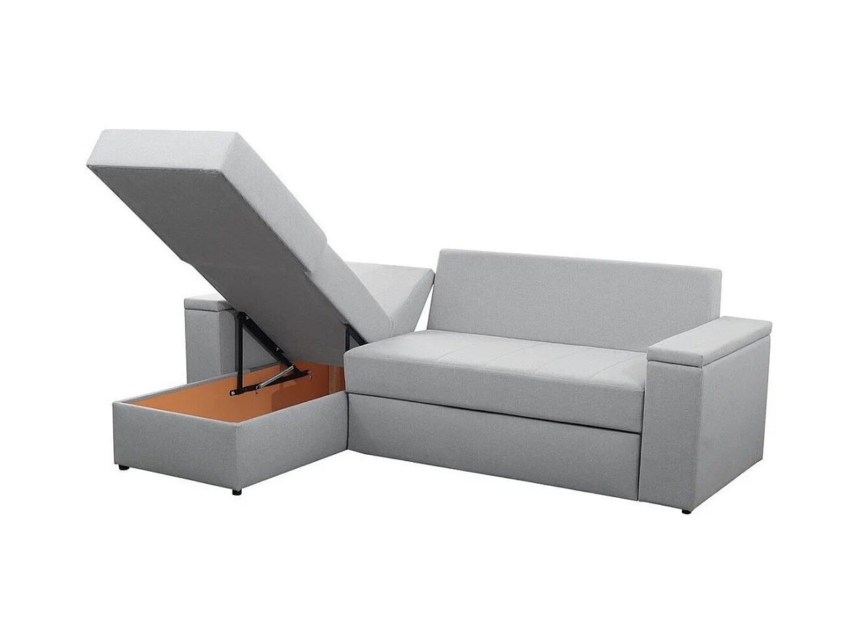 Canapé d'angle Providence 149, Gris, Fonction de couchage, Boîte de literie, 246x156x82cm