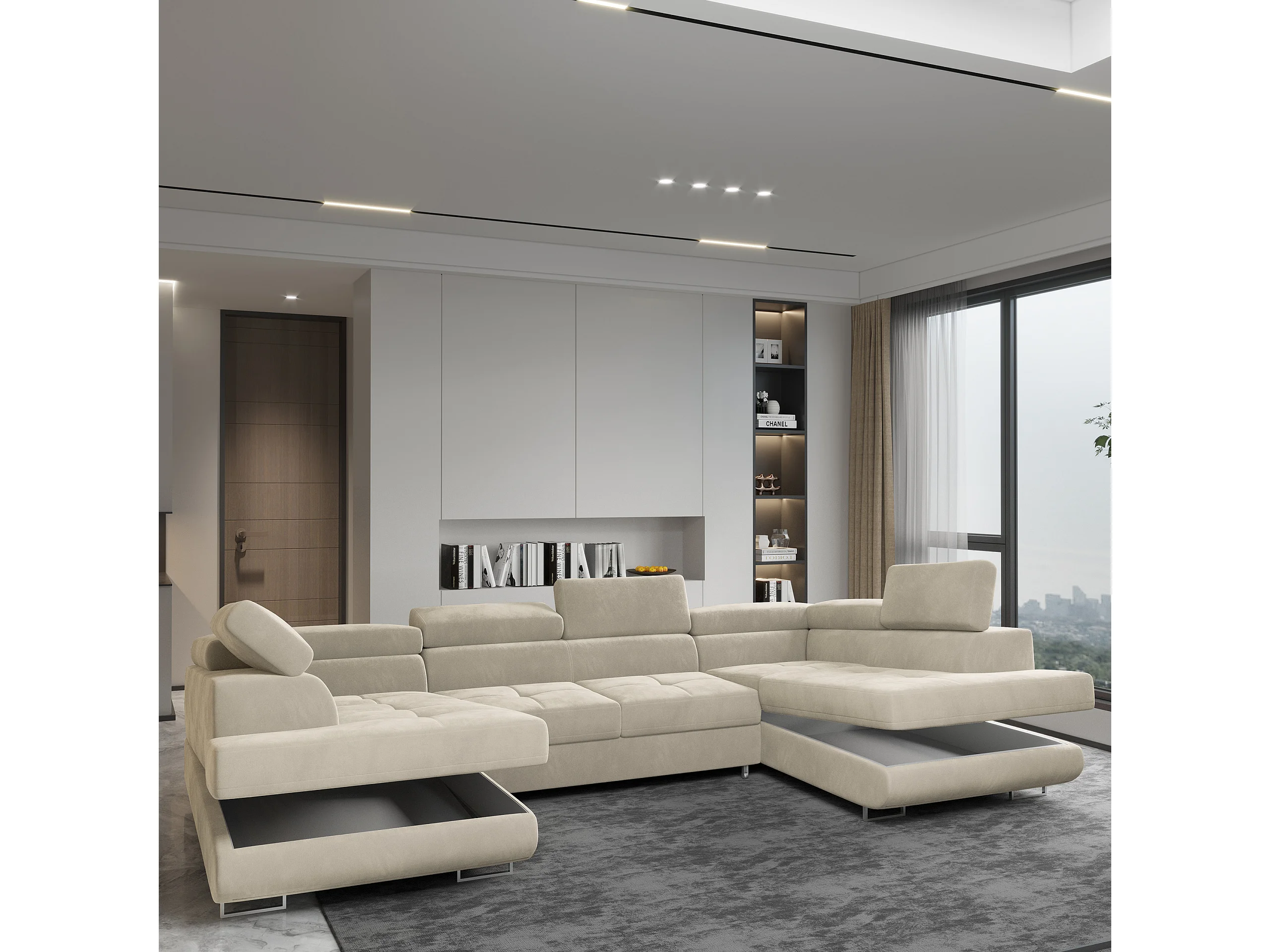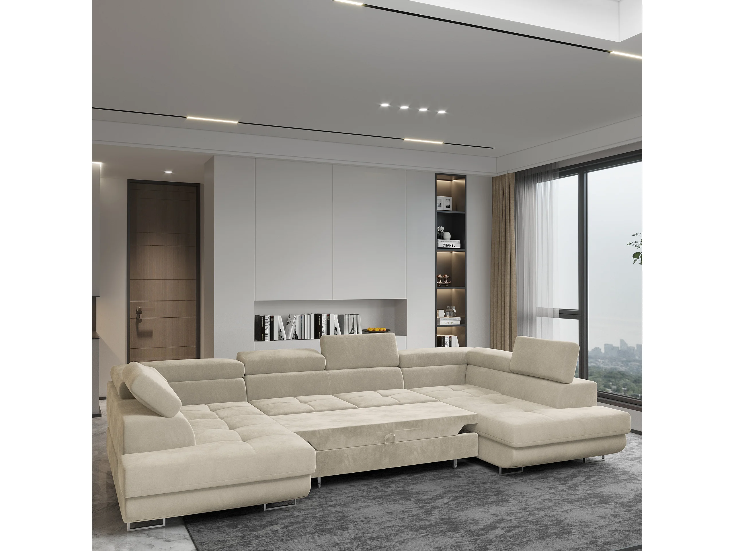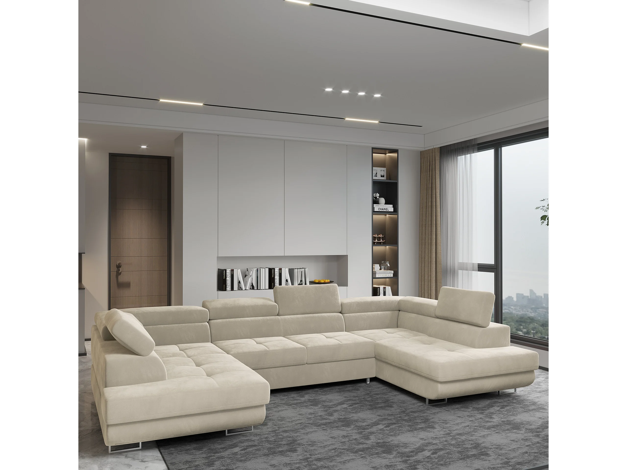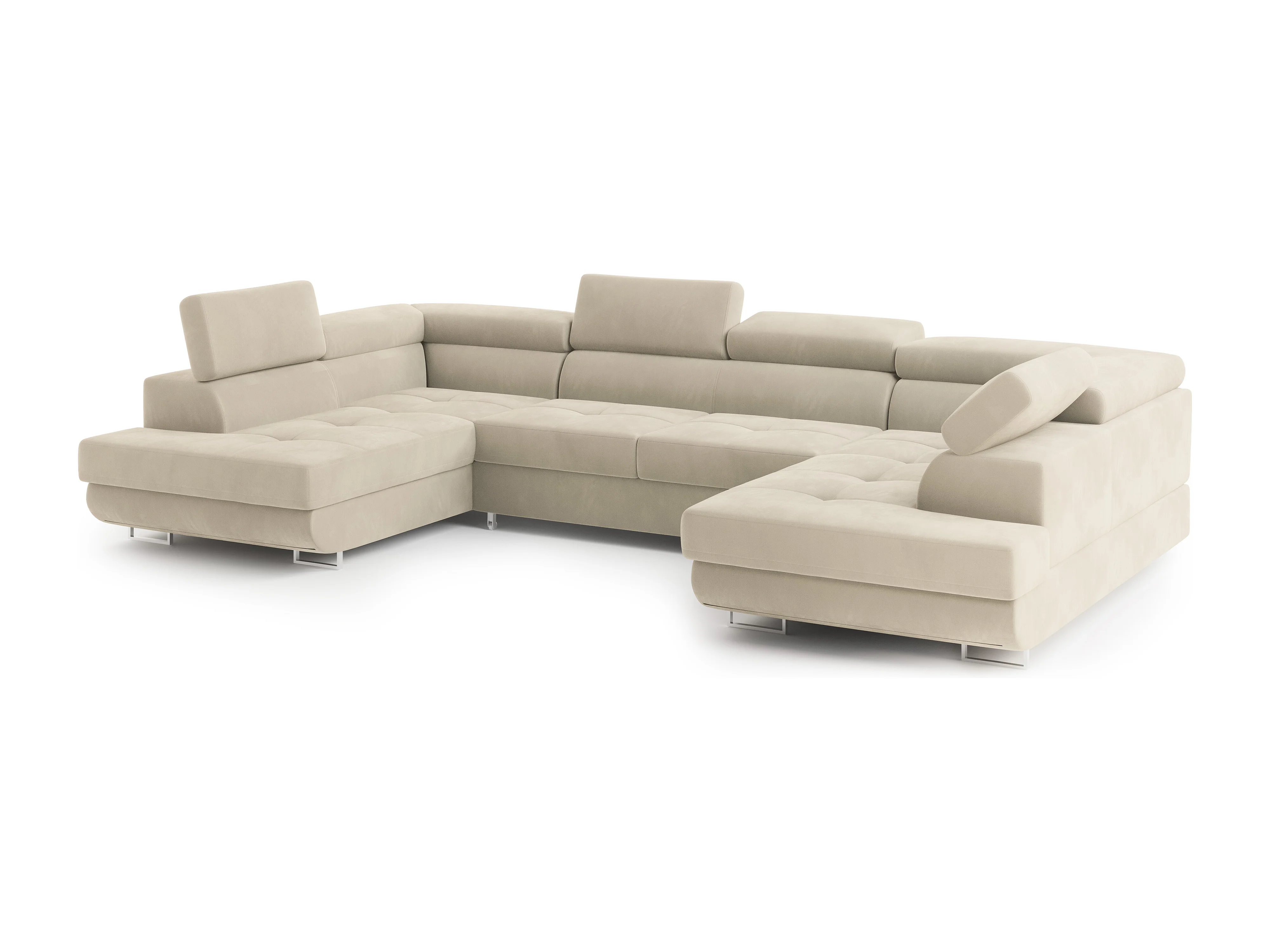 Canapé d'angle RAGGIO Crème en velours avec fonction de couchage
