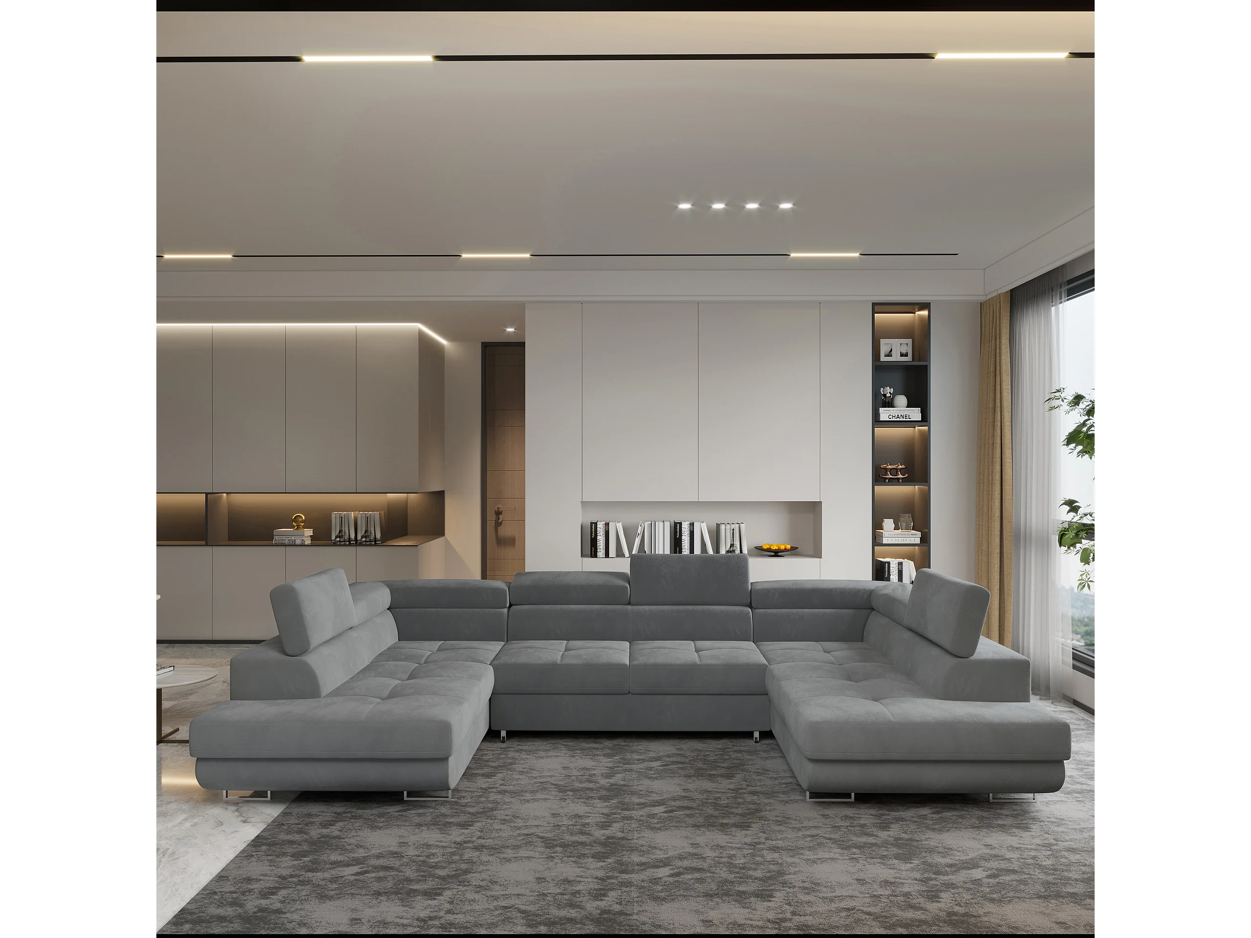 Canapé d'angle RAGGIO Gris en velours avec fonction de couchage