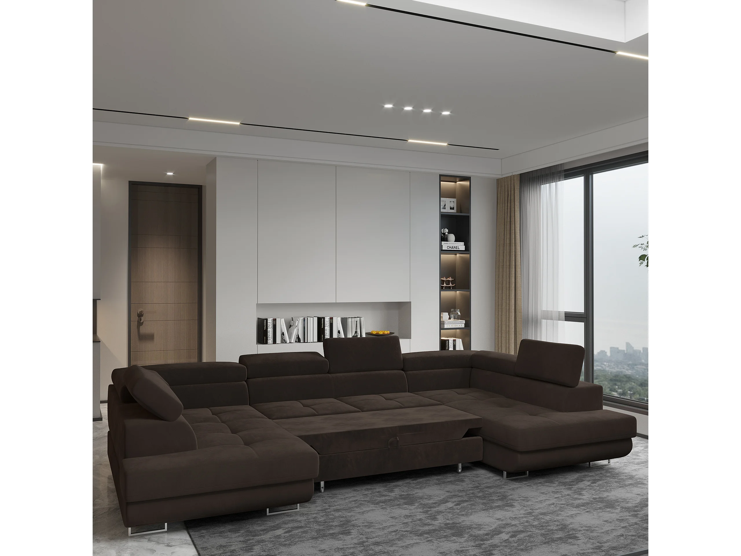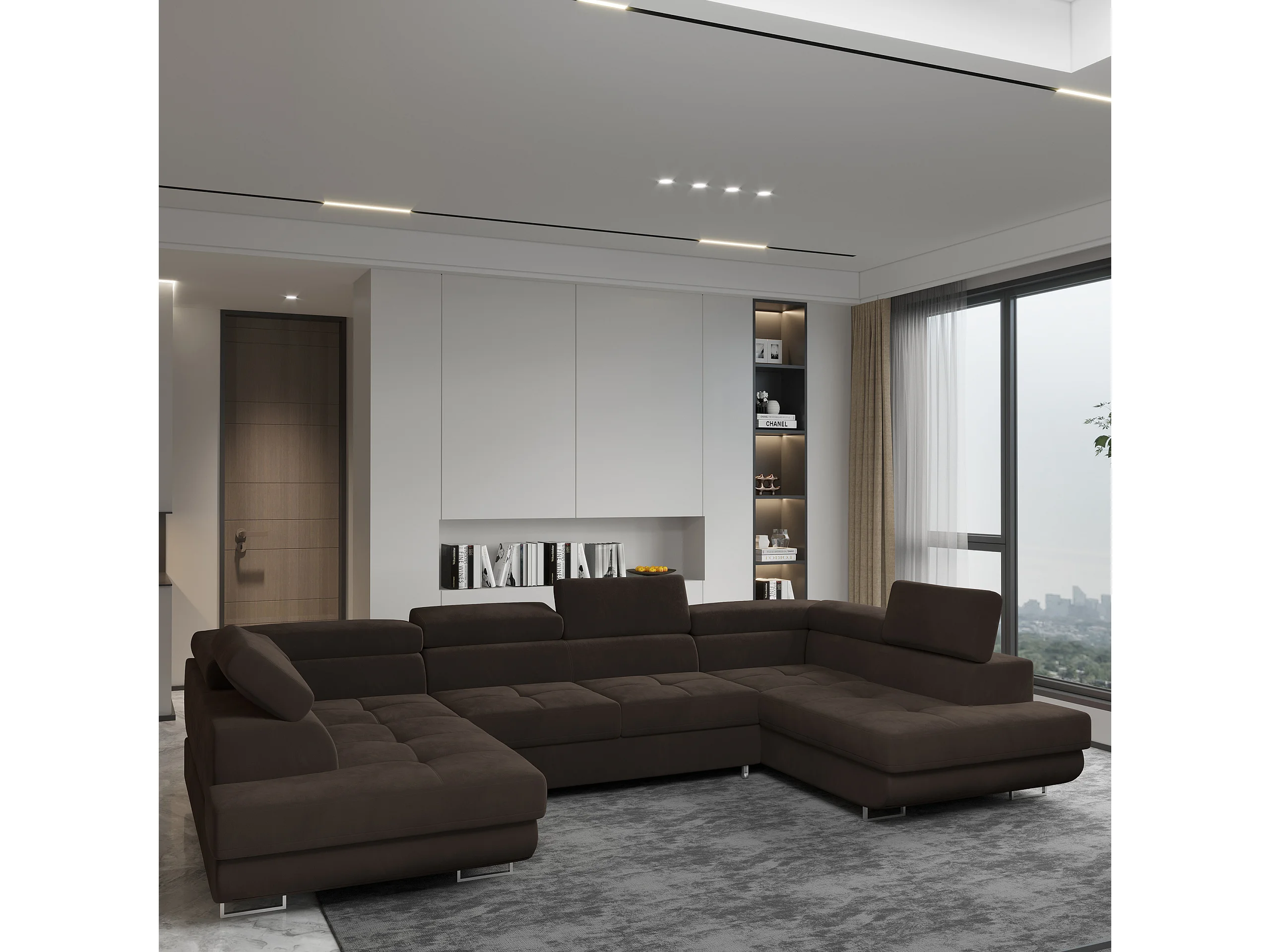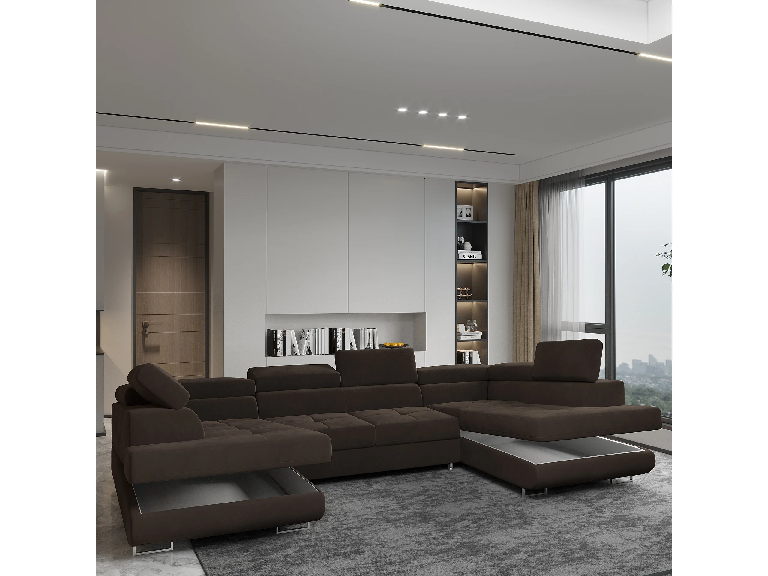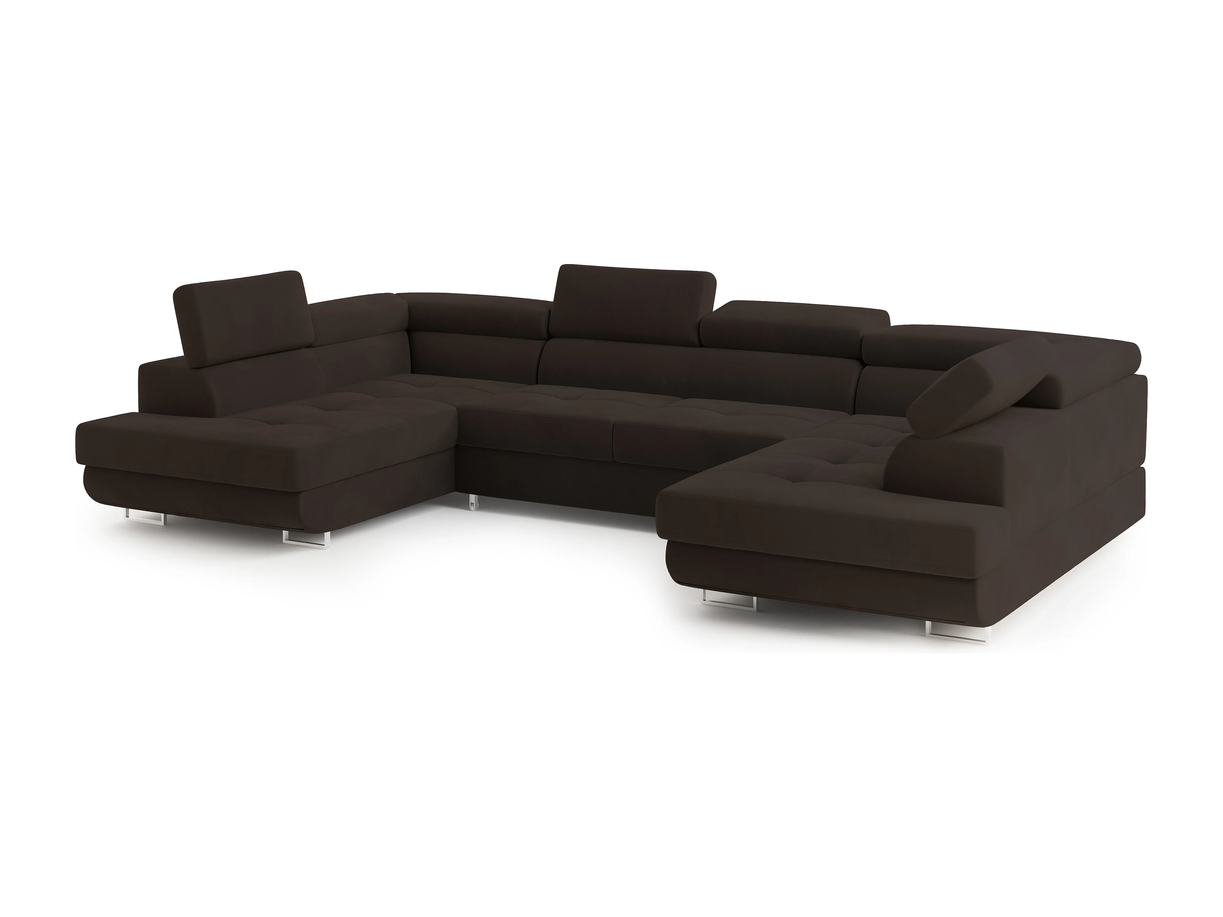 Canapé d'angle RAGGIO Marron en velours avec fonction de couchage