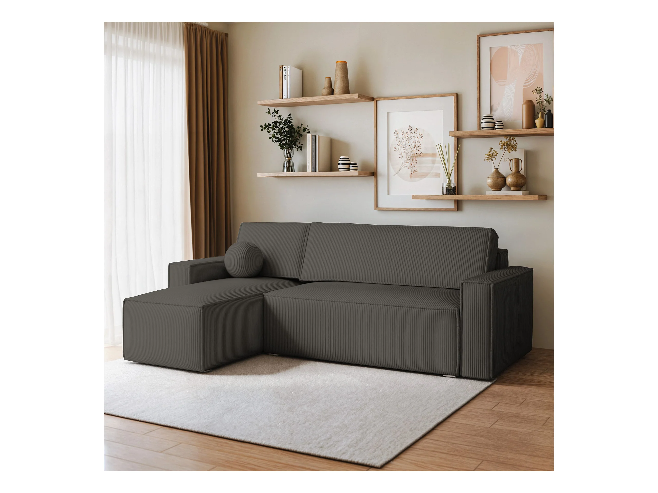 Canapé d'angle RAVELO Gris anthracite en velours côtelé avec fonction de couchage