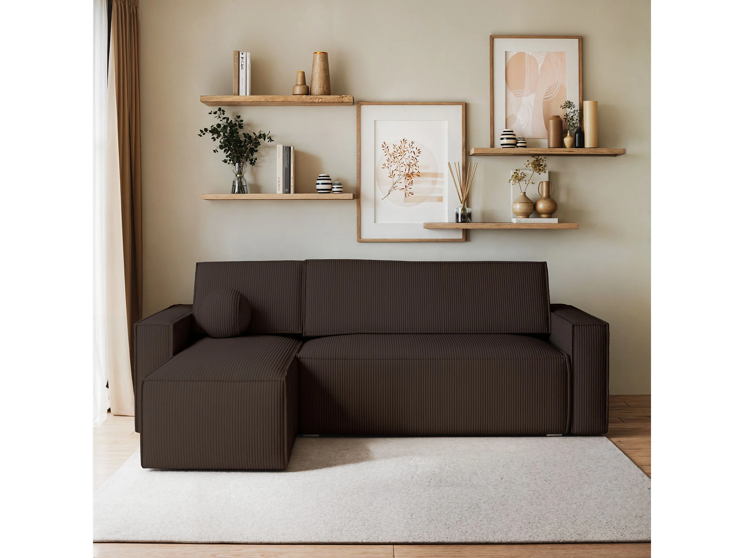 Canapé d'angle RAVELO Marron en velours côtelé avec fonction de couchage