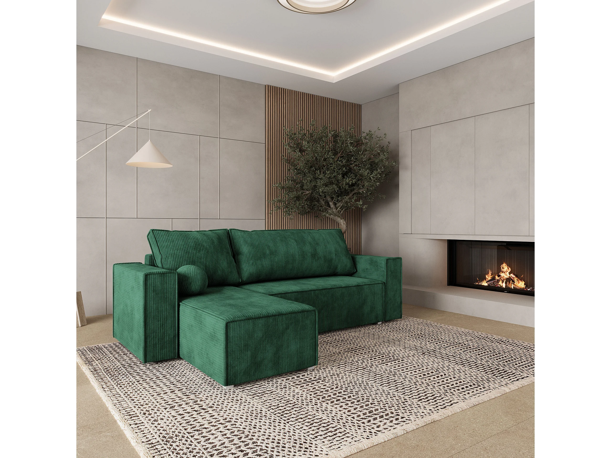 Canapé d'angle RAVELO Vert Sapin en velours côtelé avec fonction de couchage