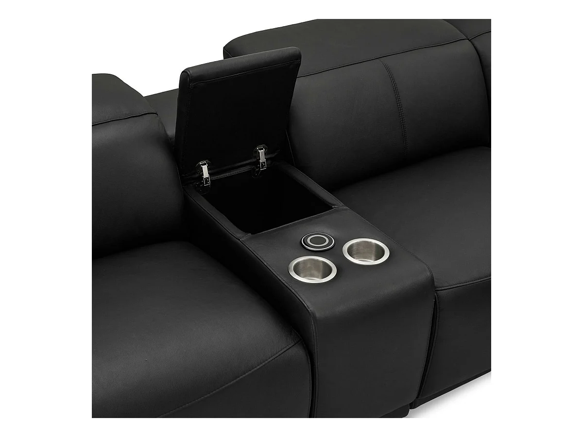 Canapé panoramique gauche électrique Alexa - 6 places - Cuir - Noir
