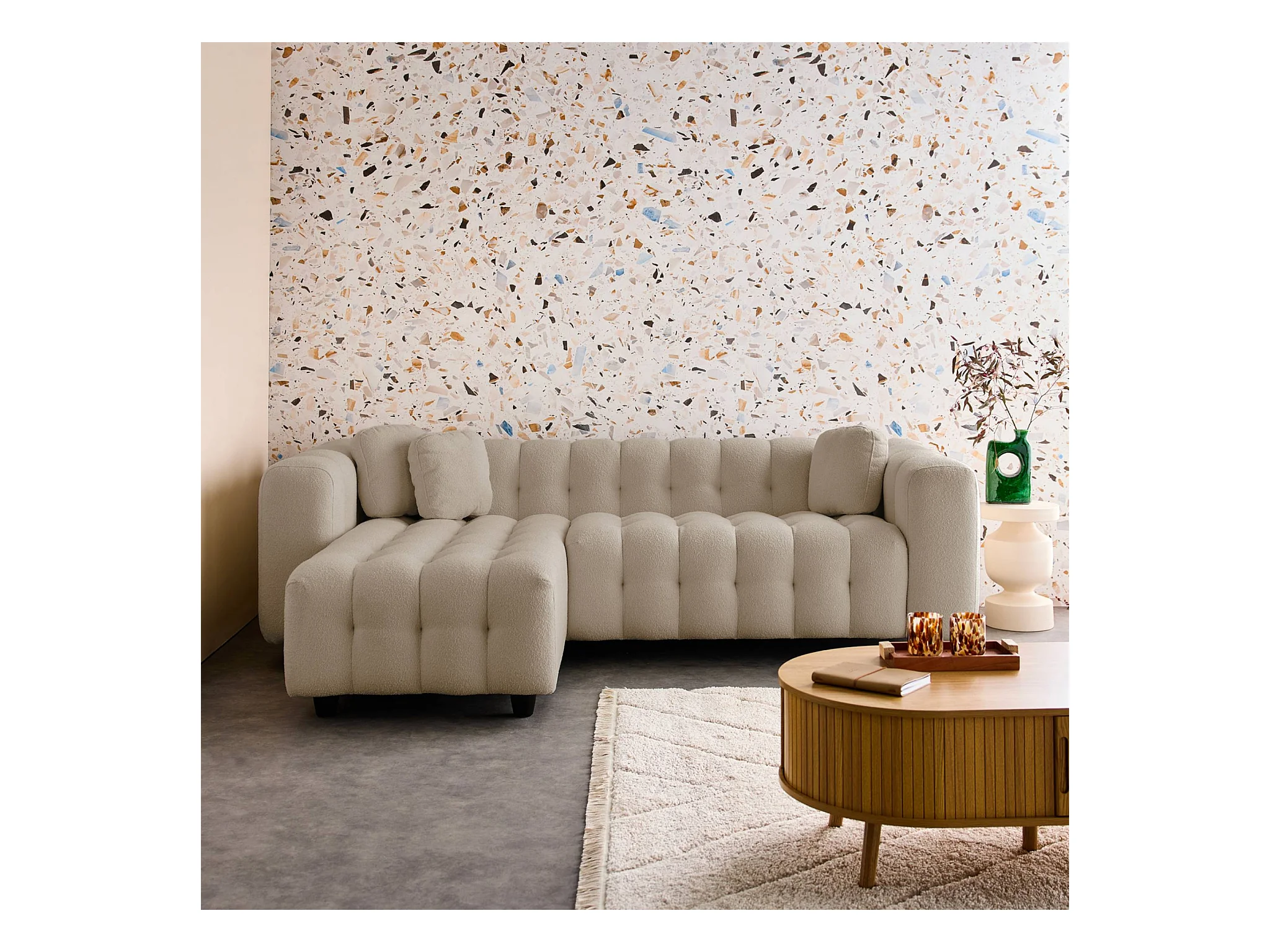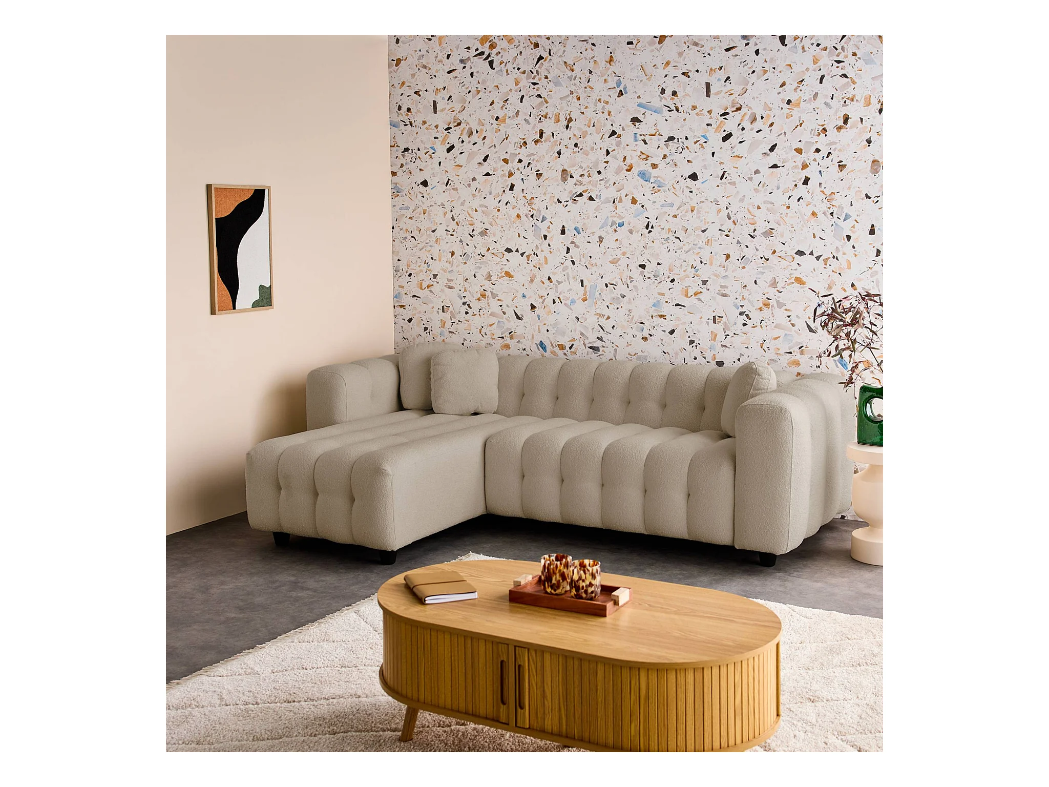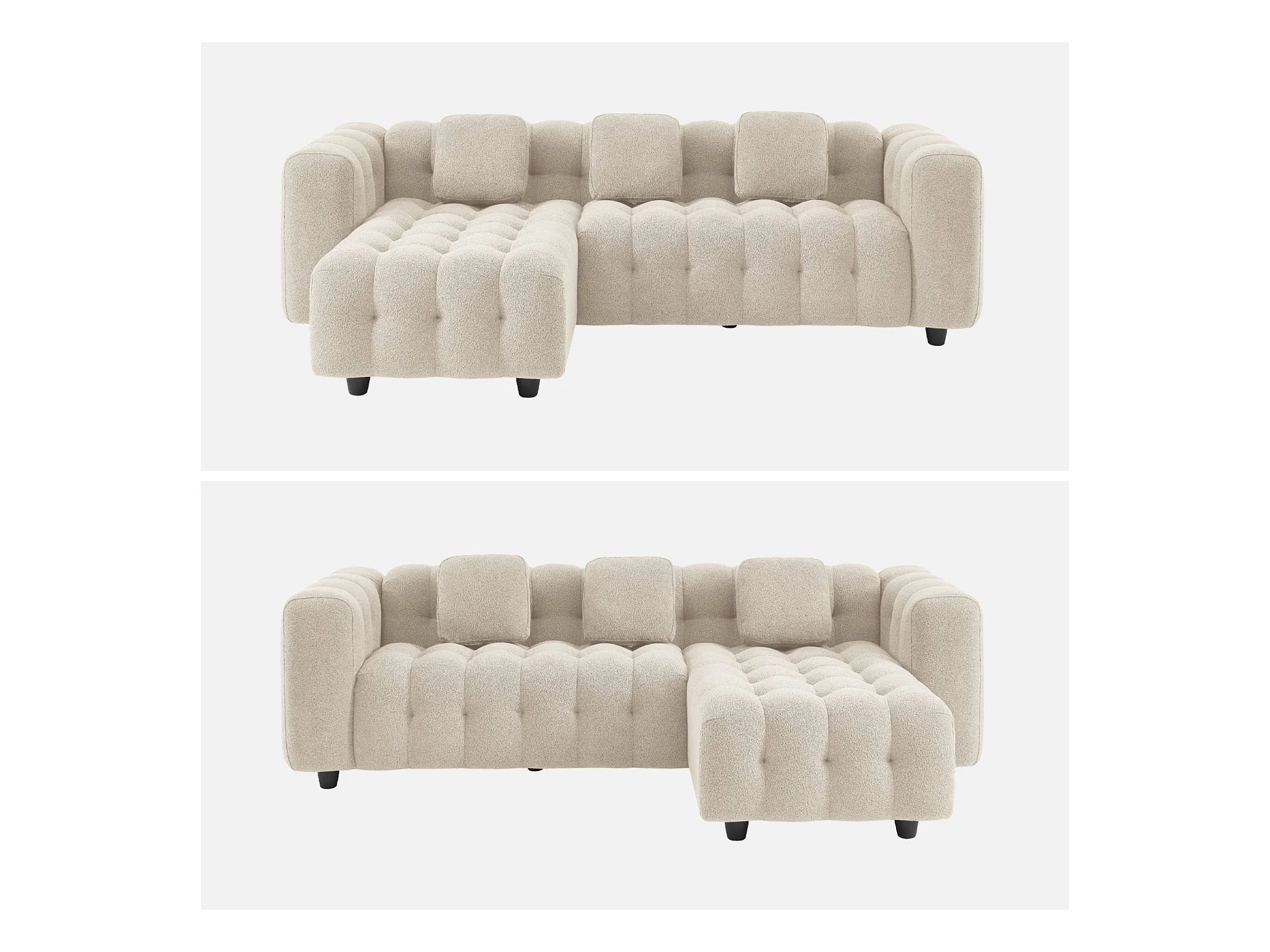 Canapé d'angle réversible 3-4 places bouclette texturée. beige. capitonné structure bois d'eucalyptus et contreplaqué