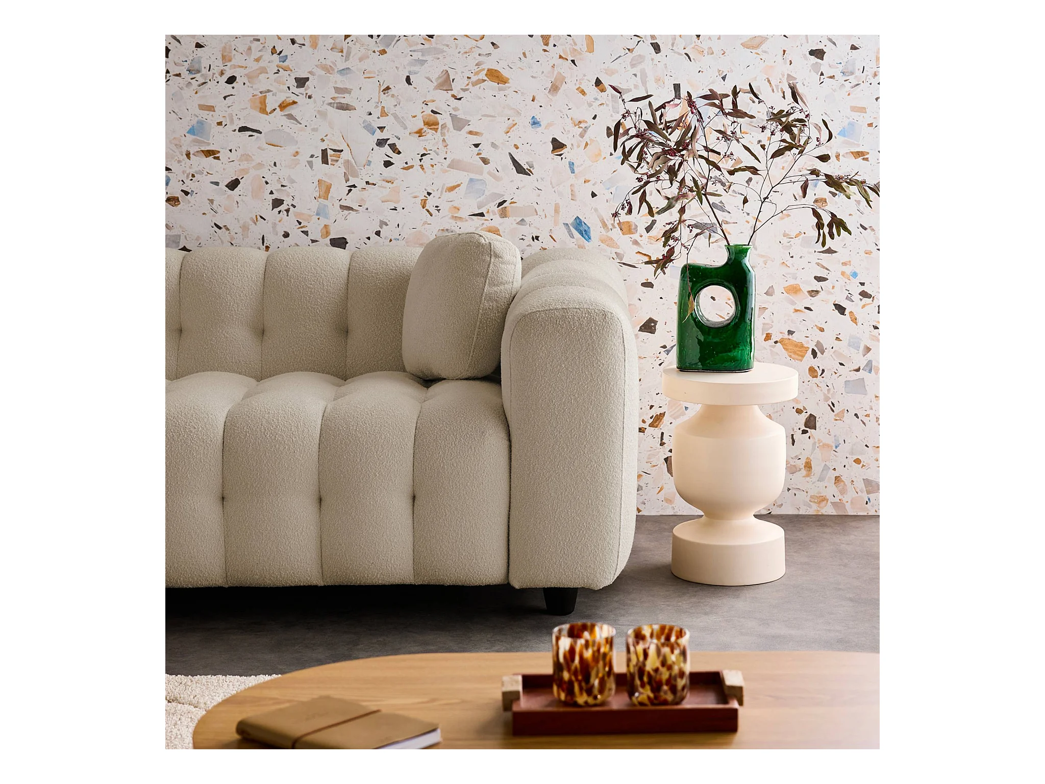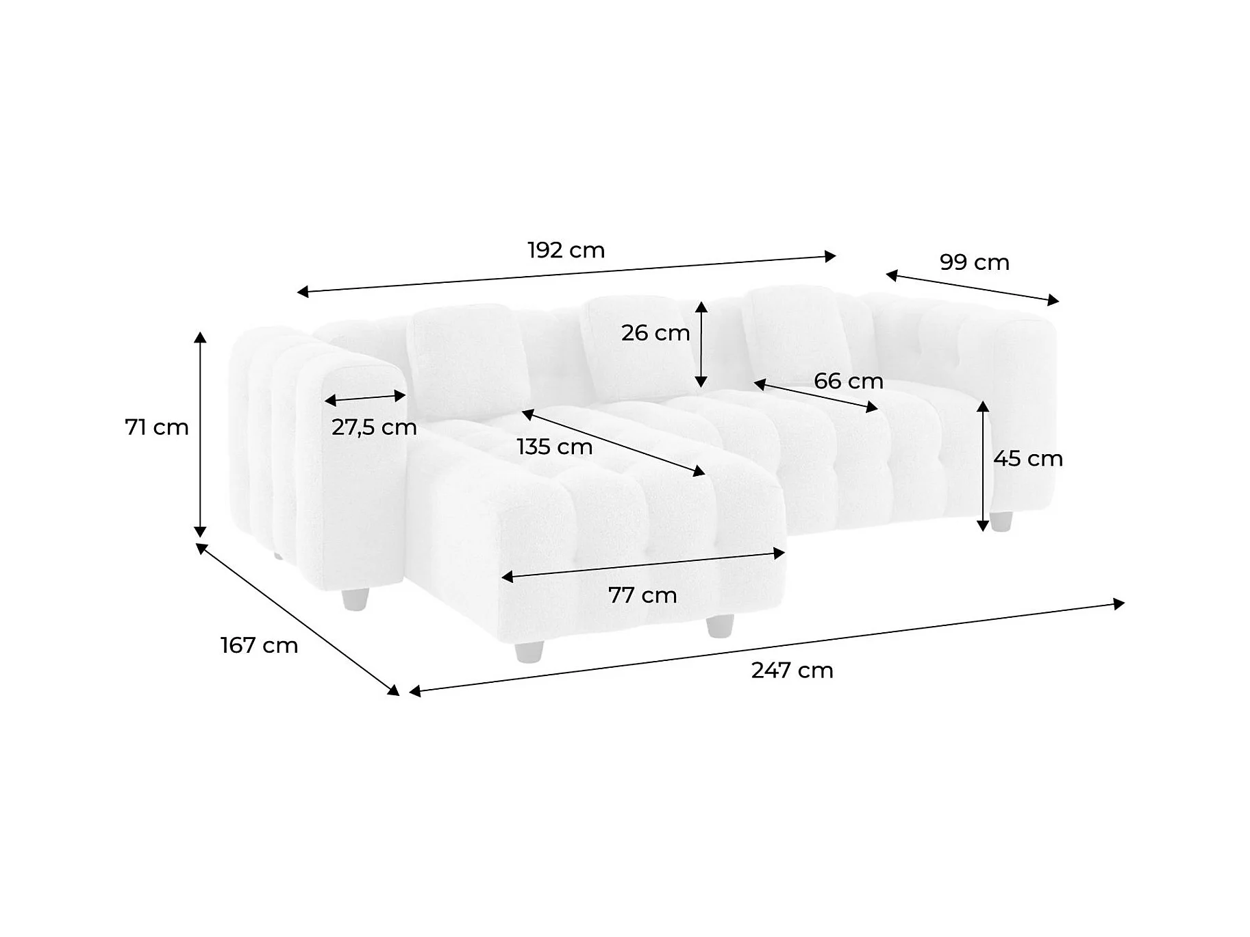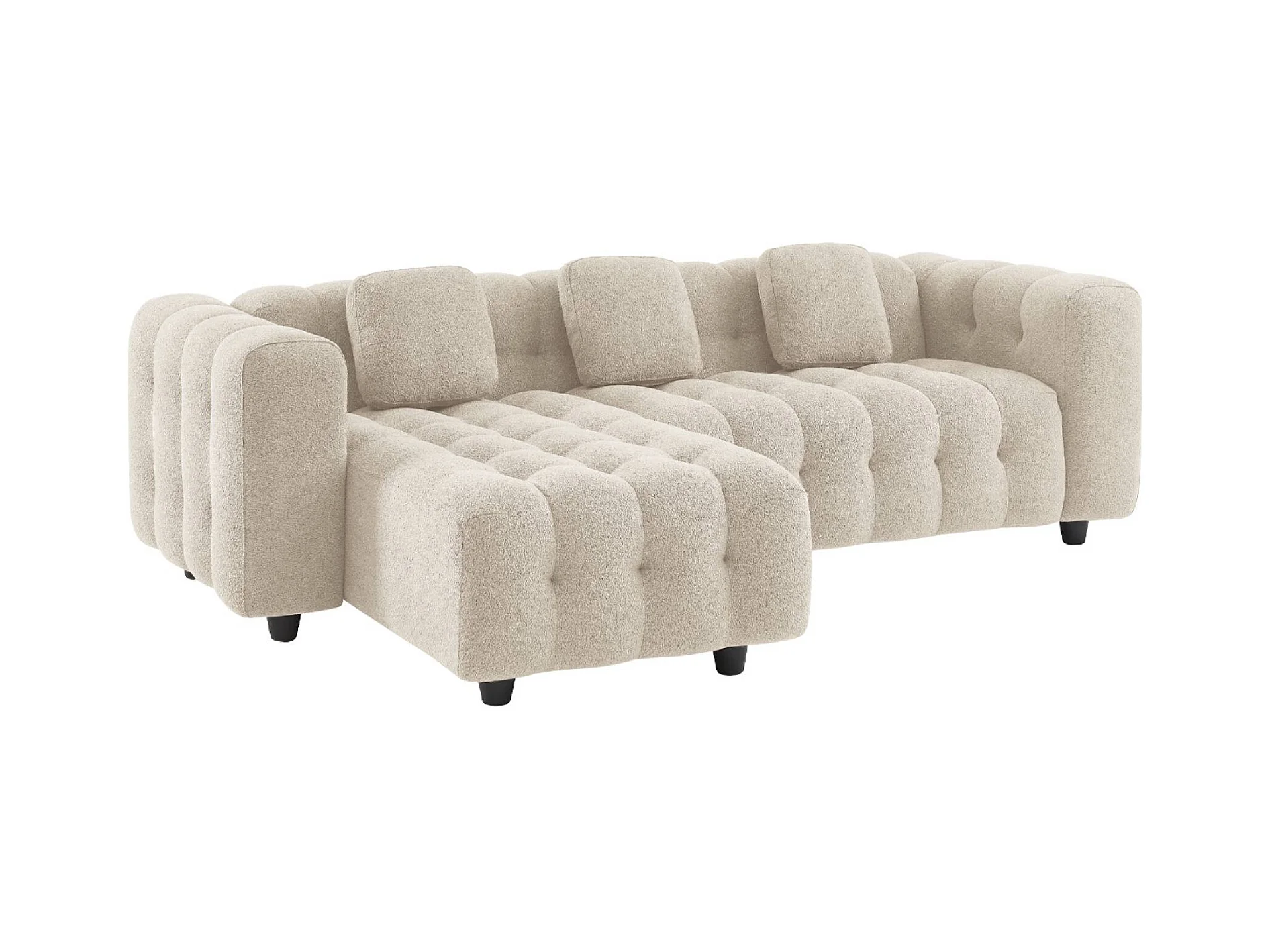 Canapé d'angle réversible 3-4 places bouclette texturée. beige. capitonné structure bois d'eucalyptus et contreplaqué