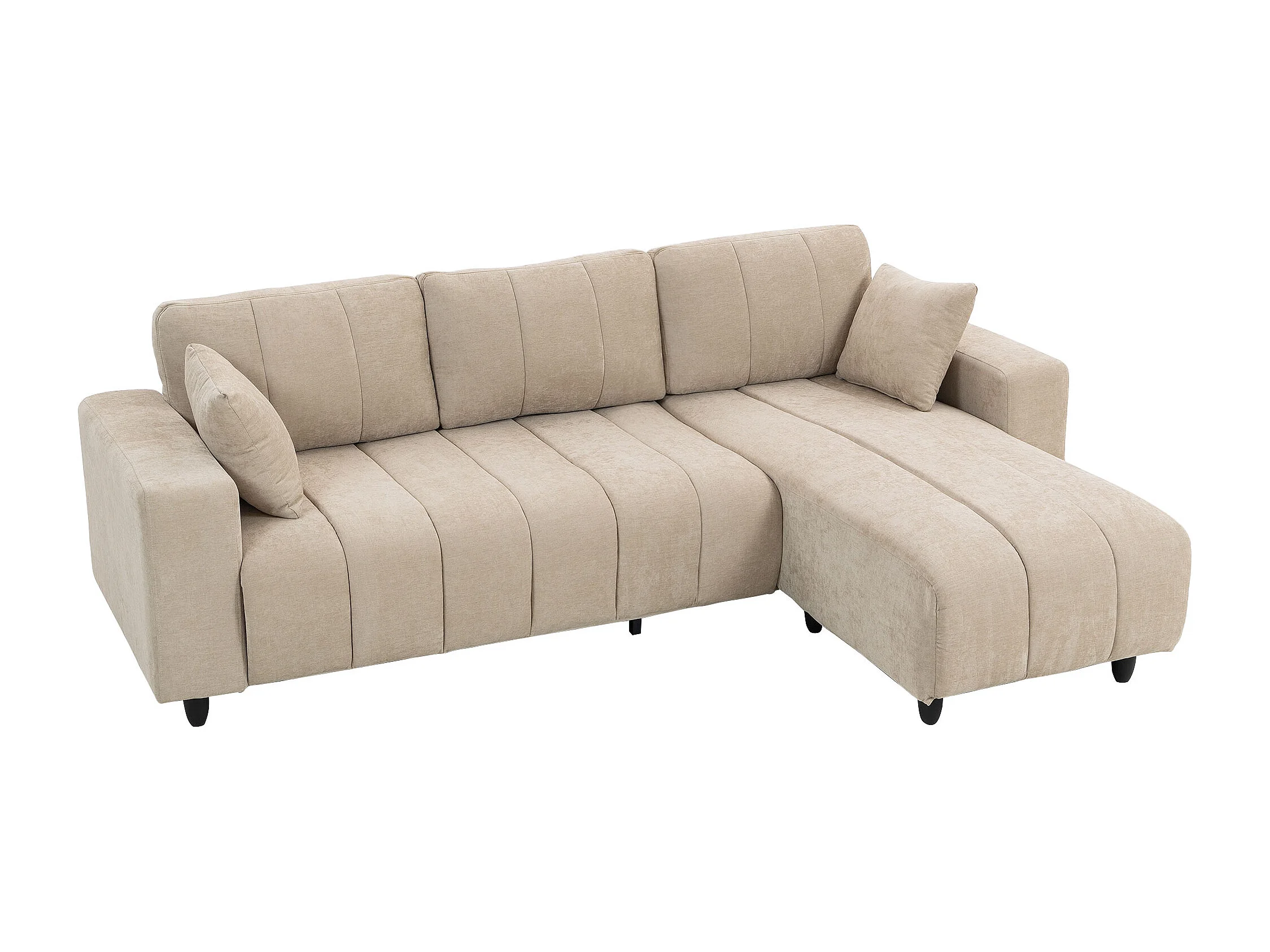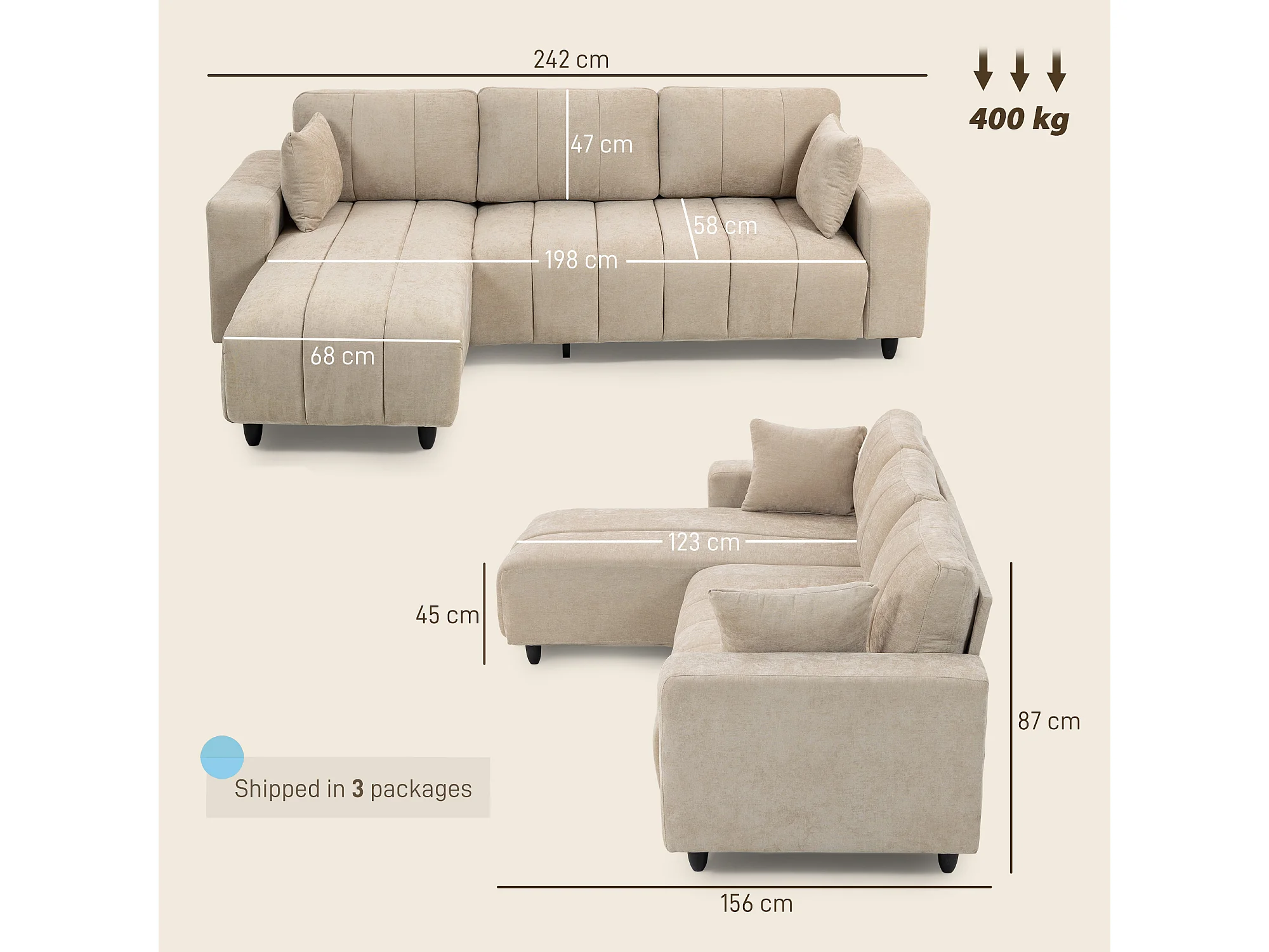 Canapé d'angle réversible 3 places design look matelassé 2 coussins déco tissu toucher lin beige
