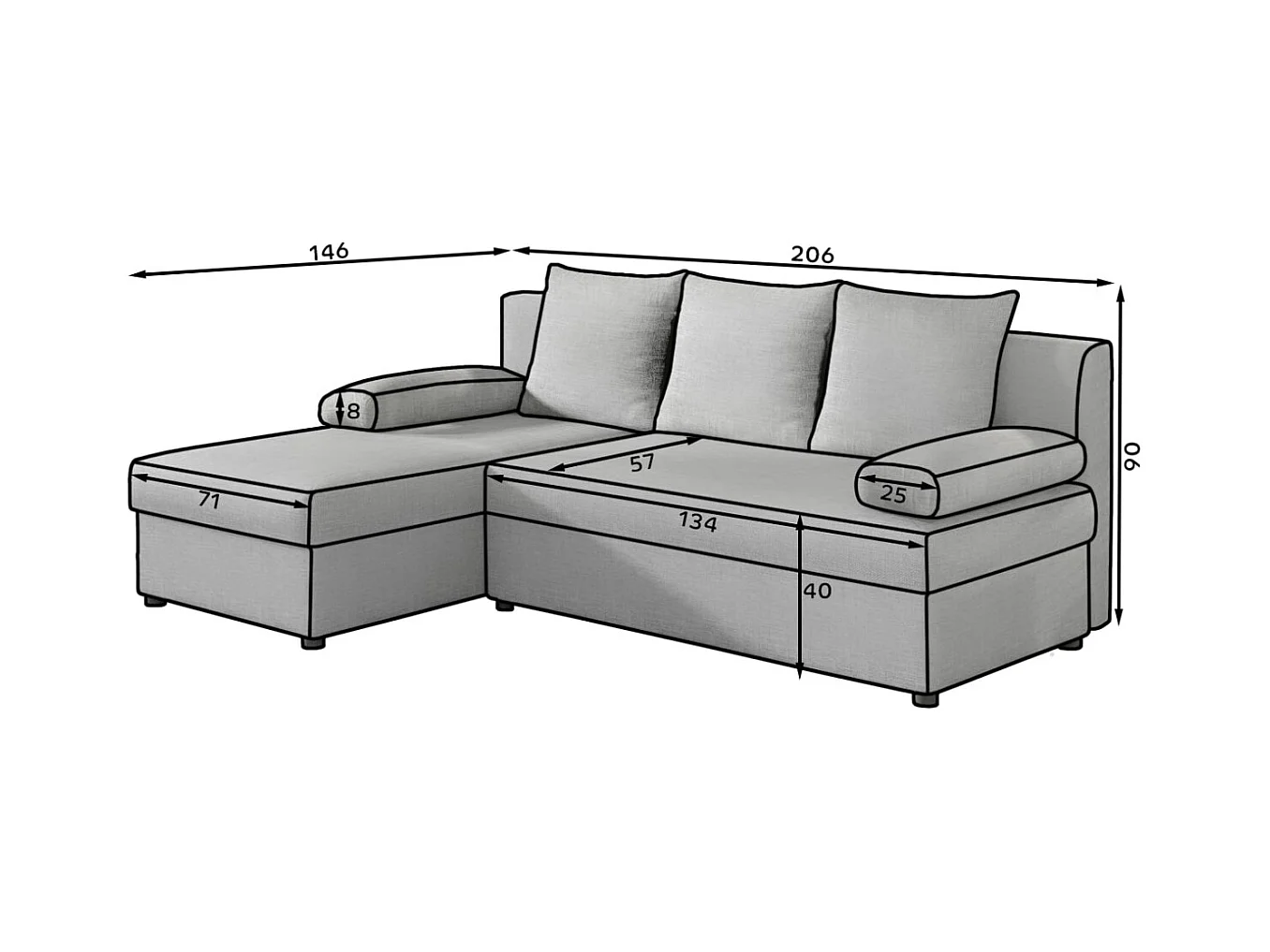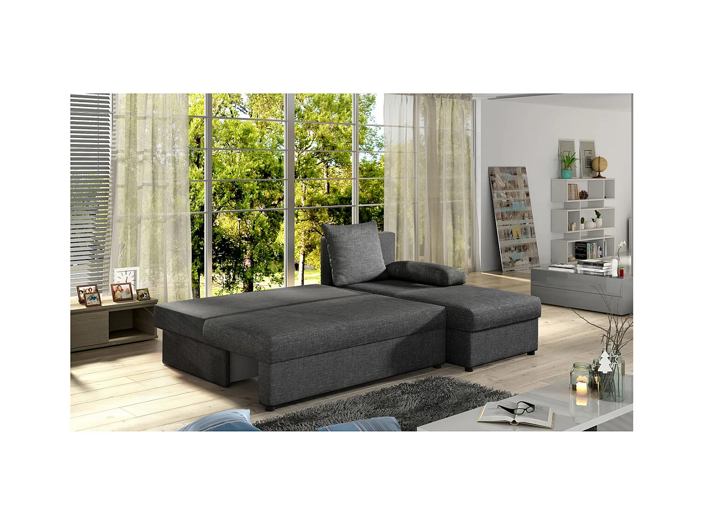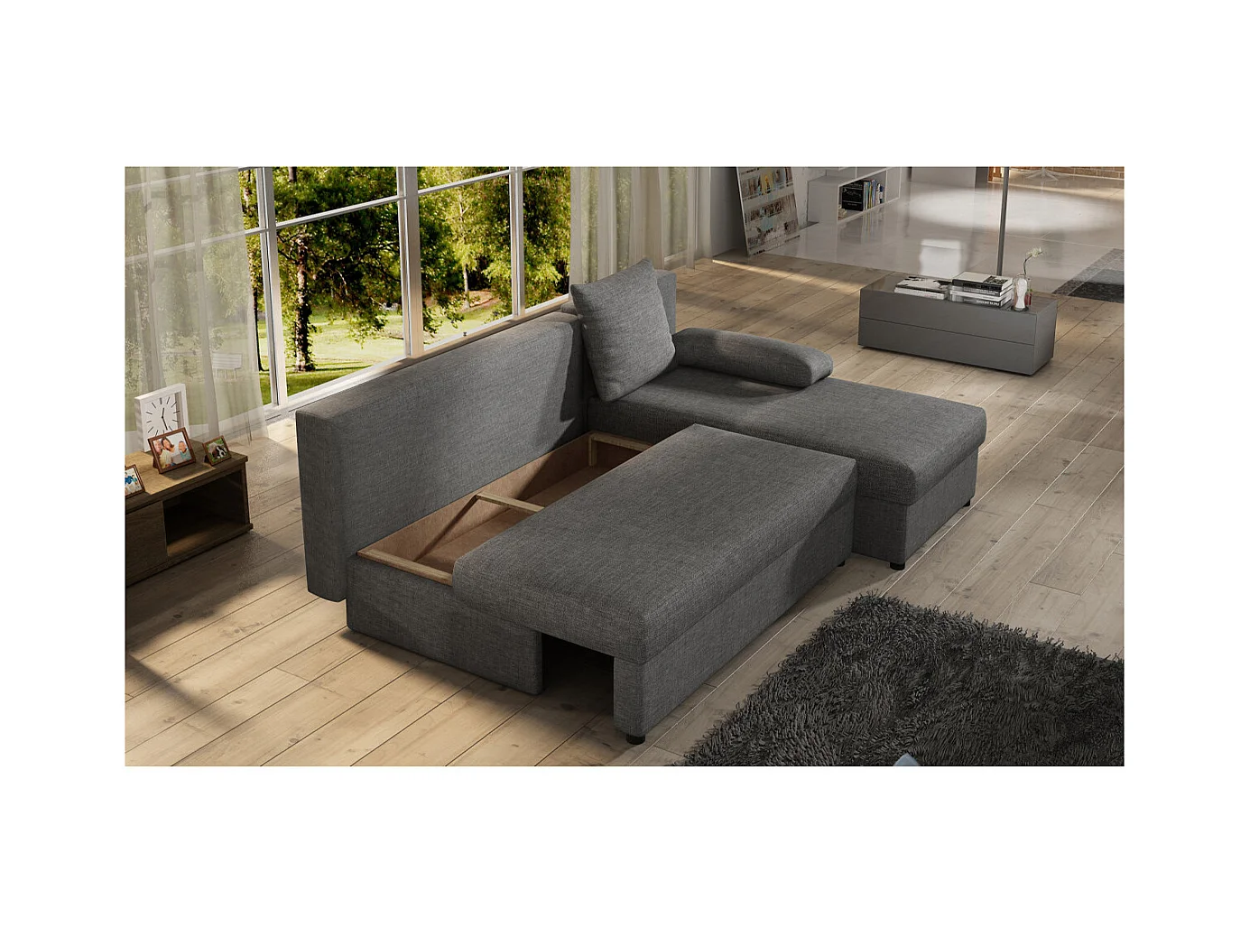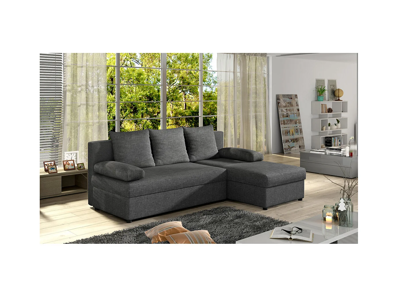 Canapé d'angle réversible 3 places DINA convertible en tissu - Gris moyen