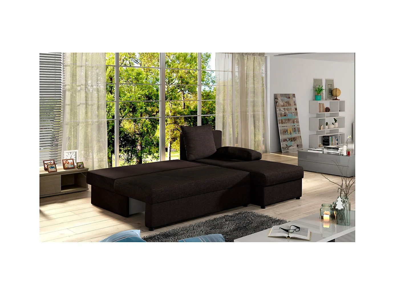 Canapé d'angle réversible 3 places DINA convertible en tissu - Marron