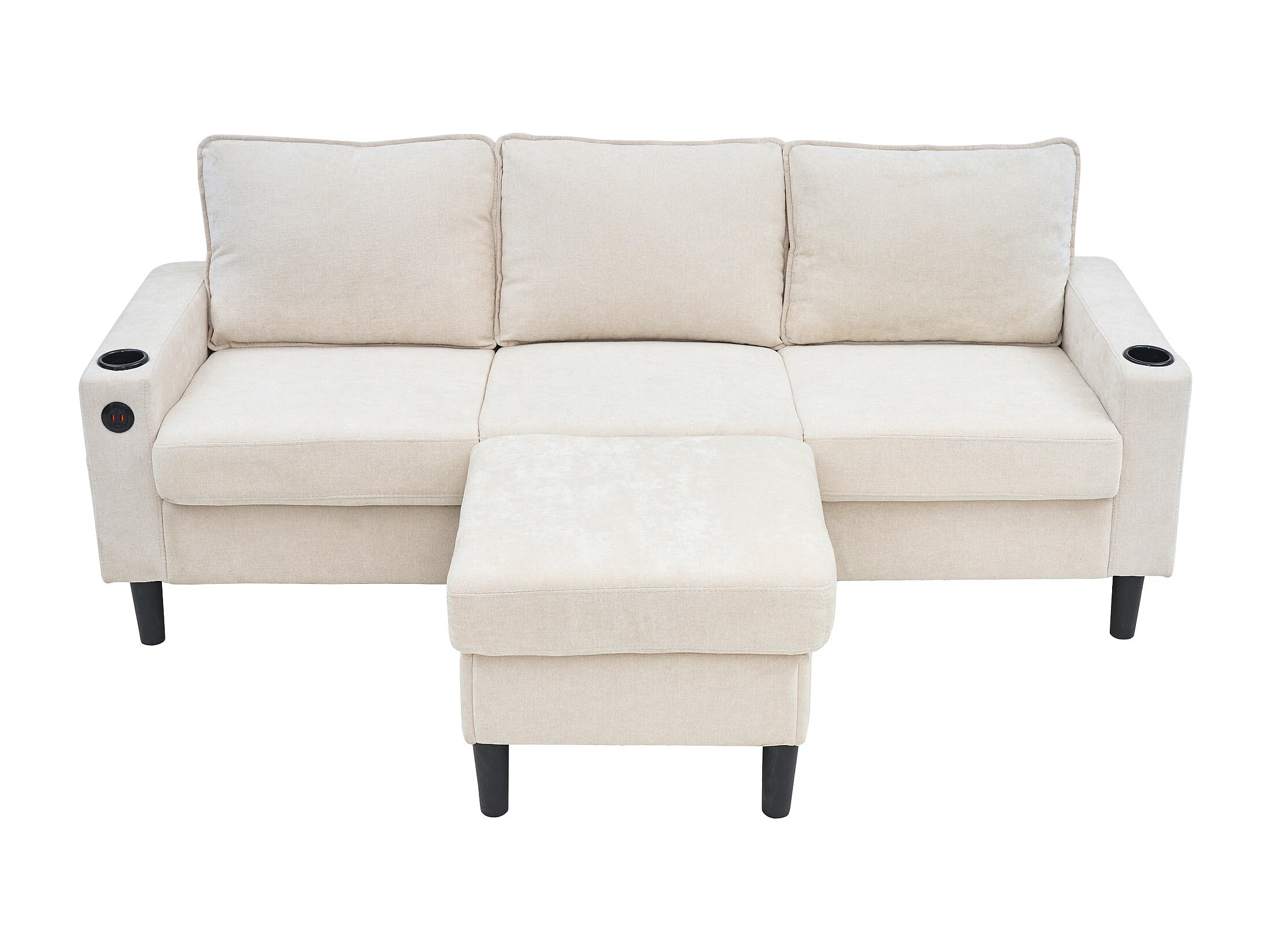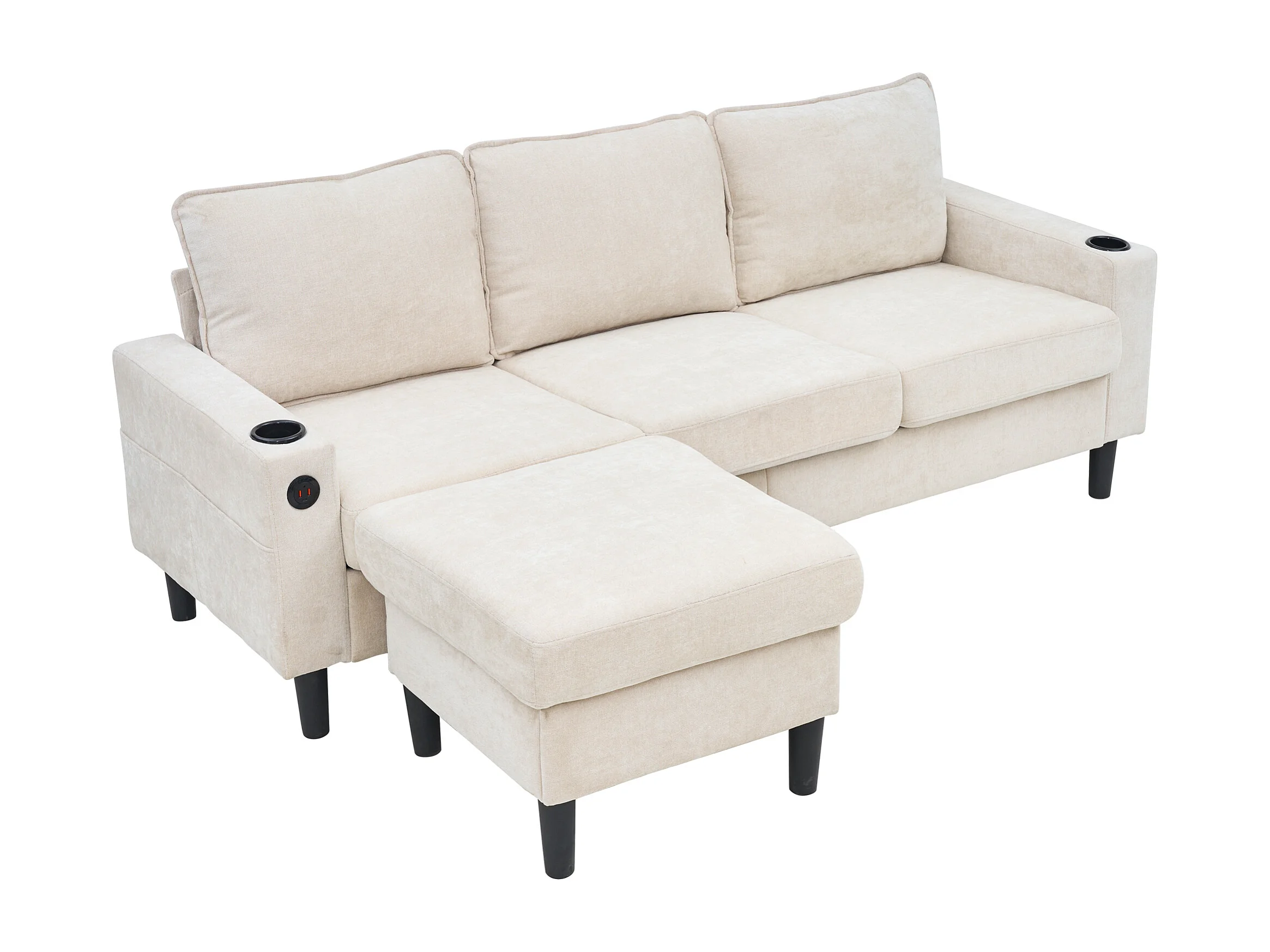 Canapé d'angle reversible 3 places en lin beige, avec ports USB et type-C - 202x137x80cm