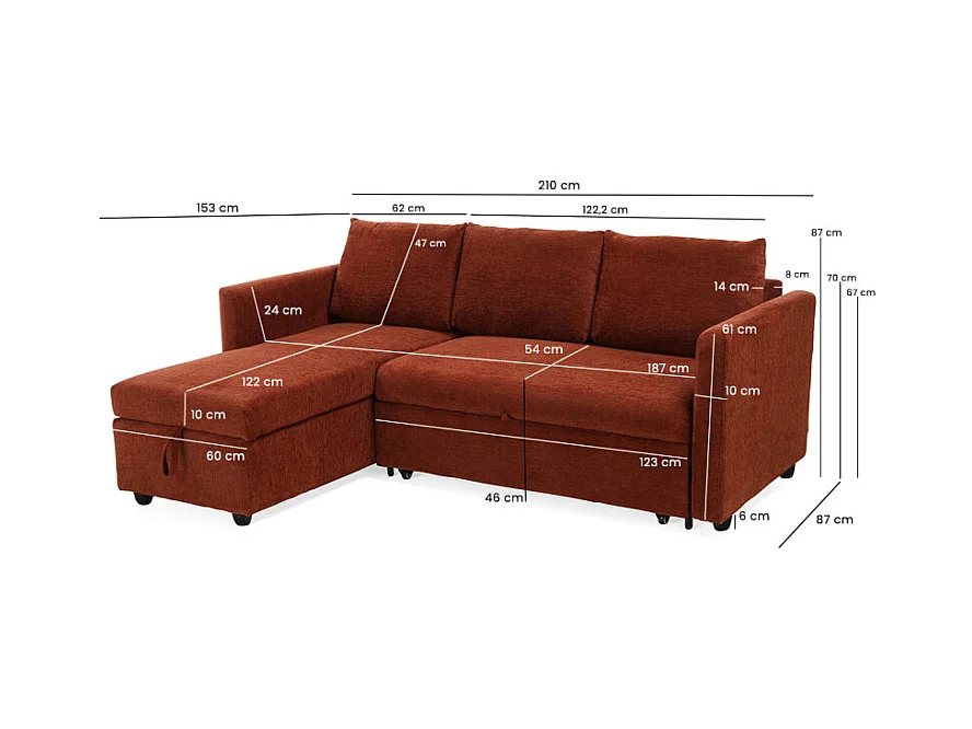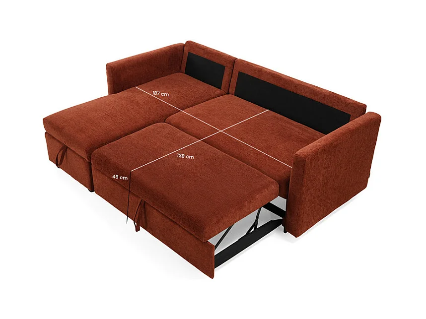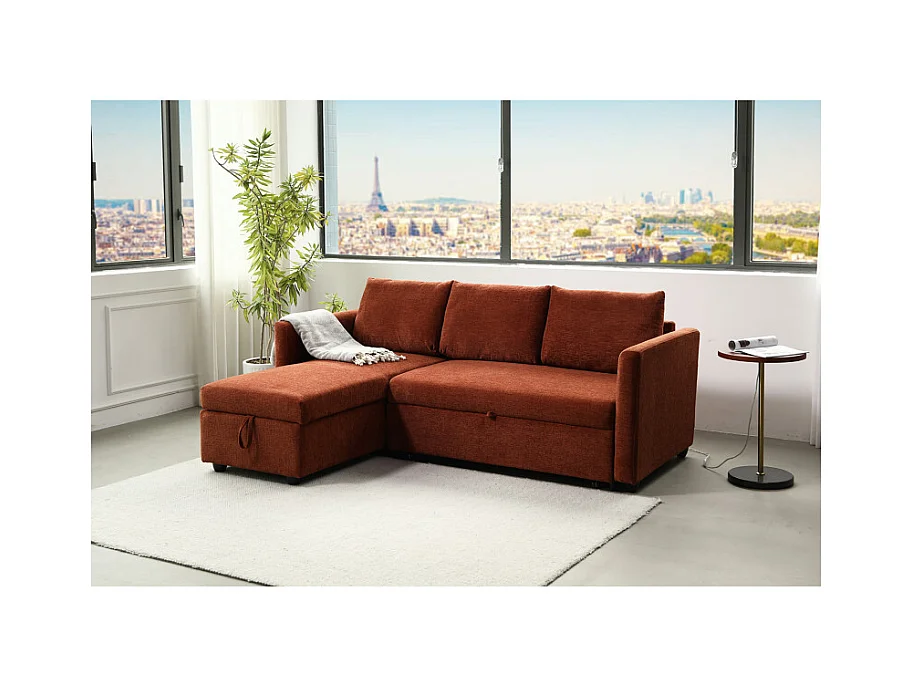 Canapé d'angle réversible 3p convertible tissu terracotta – WILSON