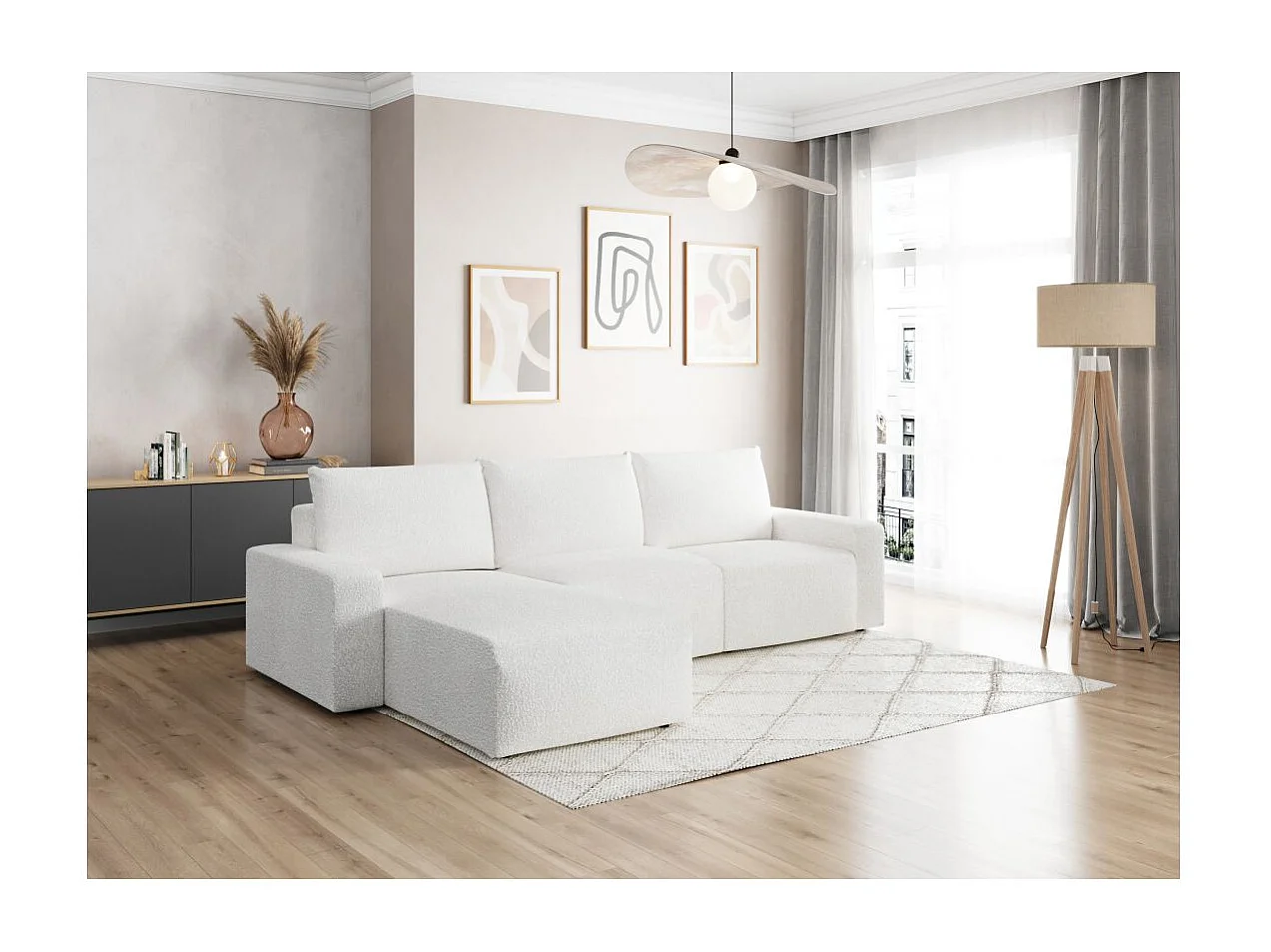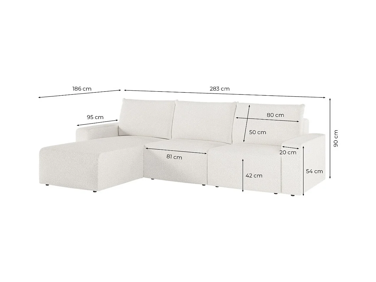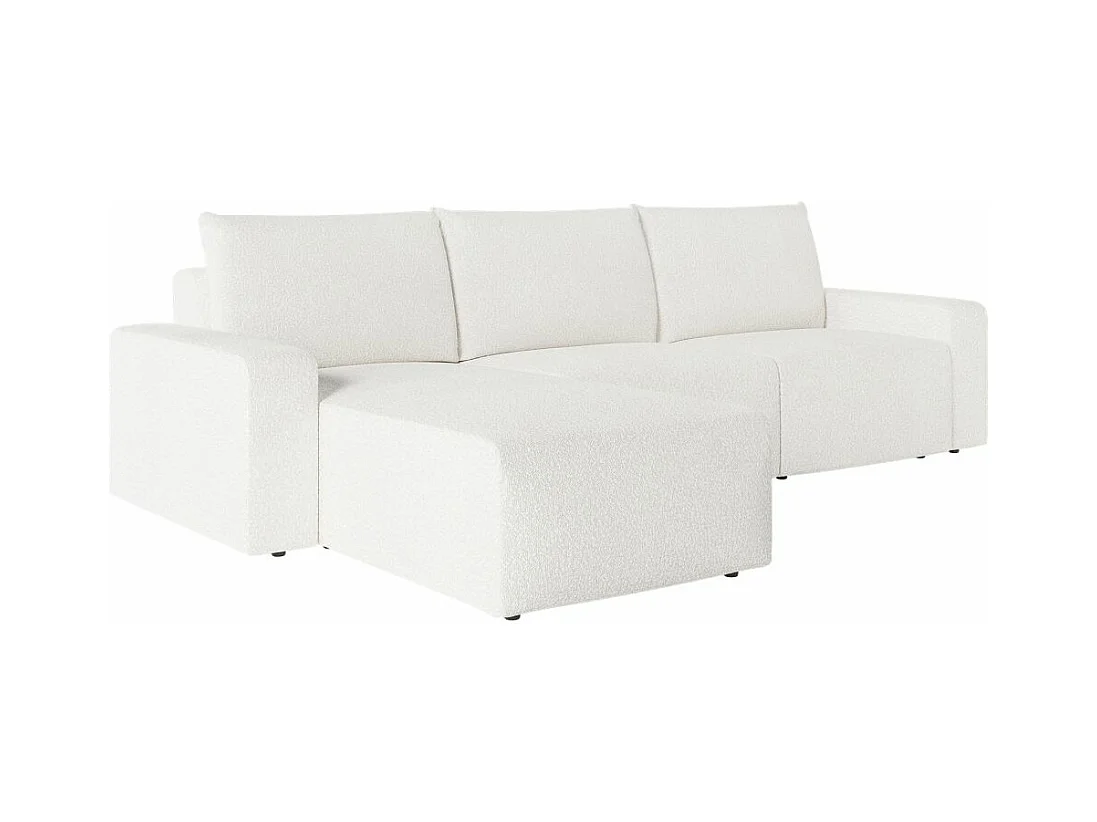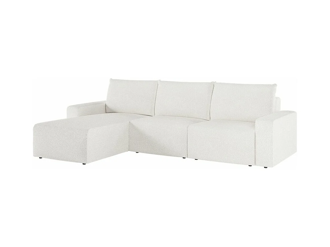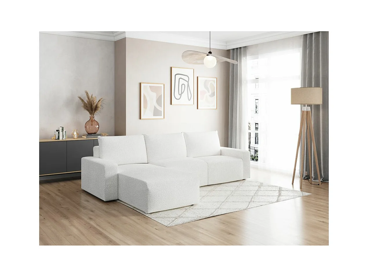 Canapé d'angle réversible 4 places ROMANE en tissu bouclette - Blanc