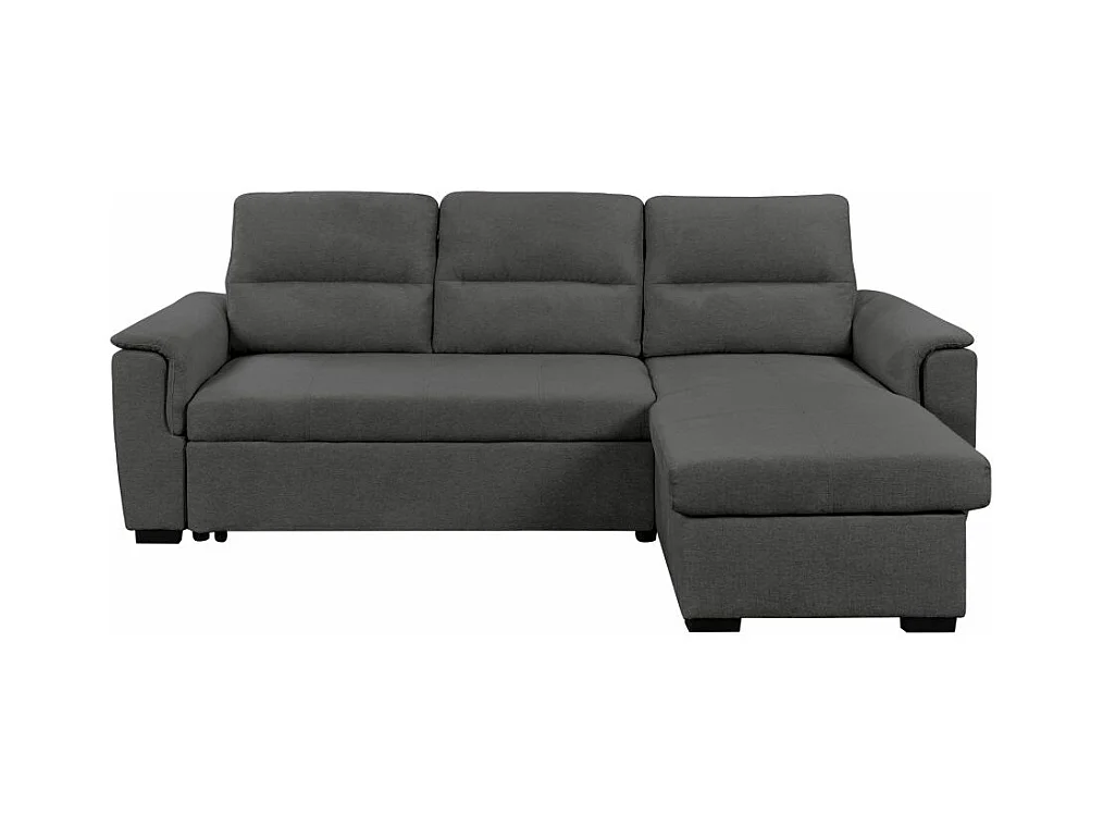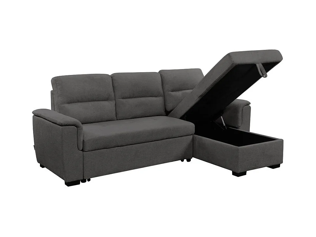 Canapé d'angle 3 places réversible Auguste convertible avec dossier haut en tissu - Gris - L239 x P155 x H98cm - Loungitude