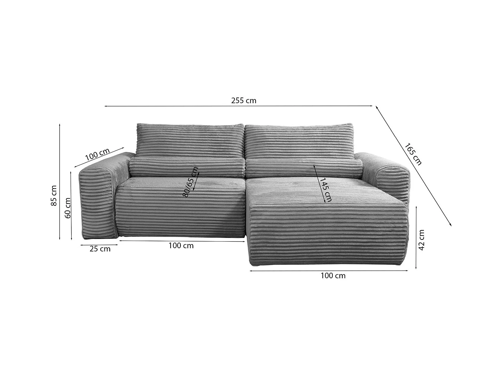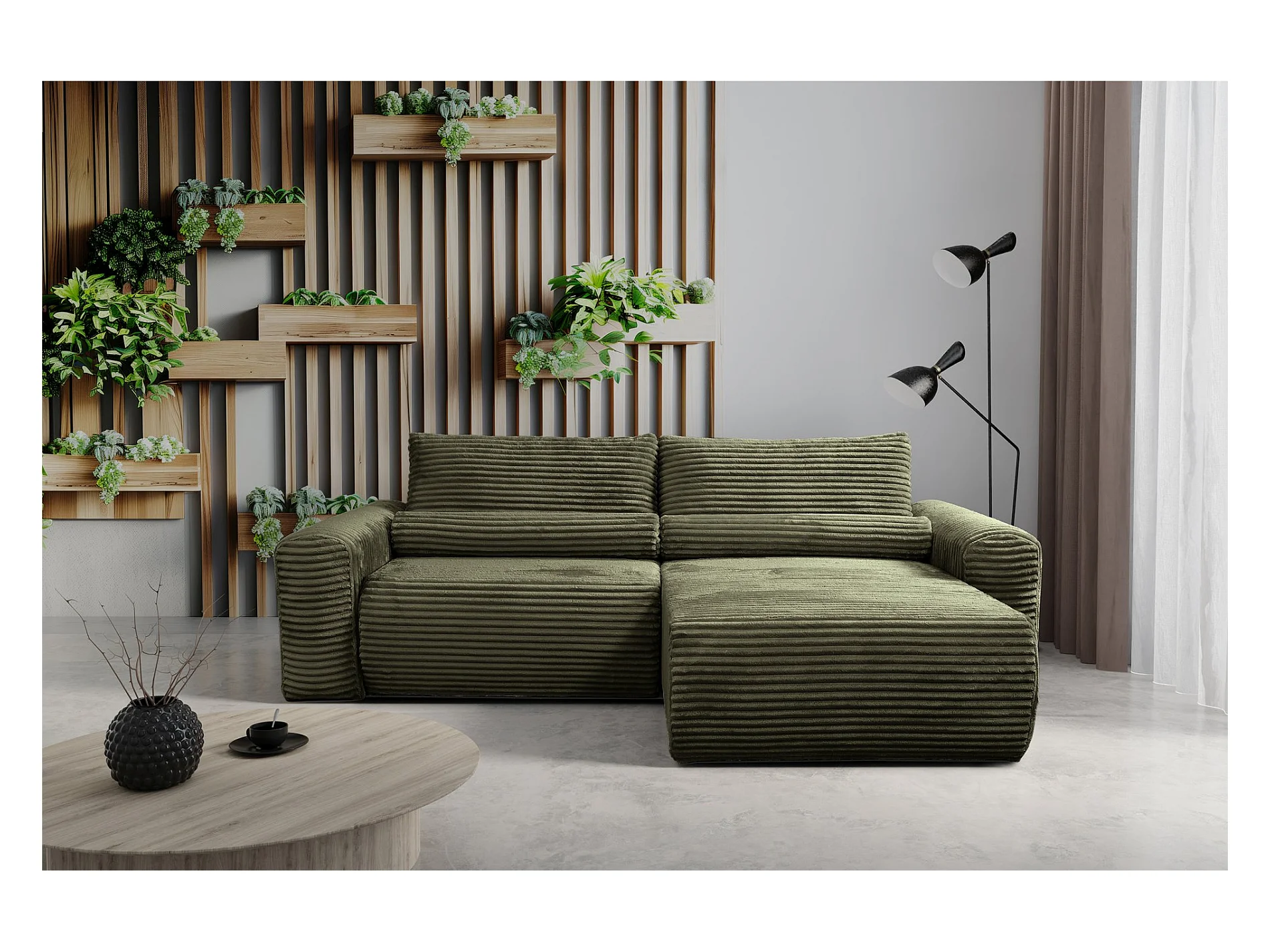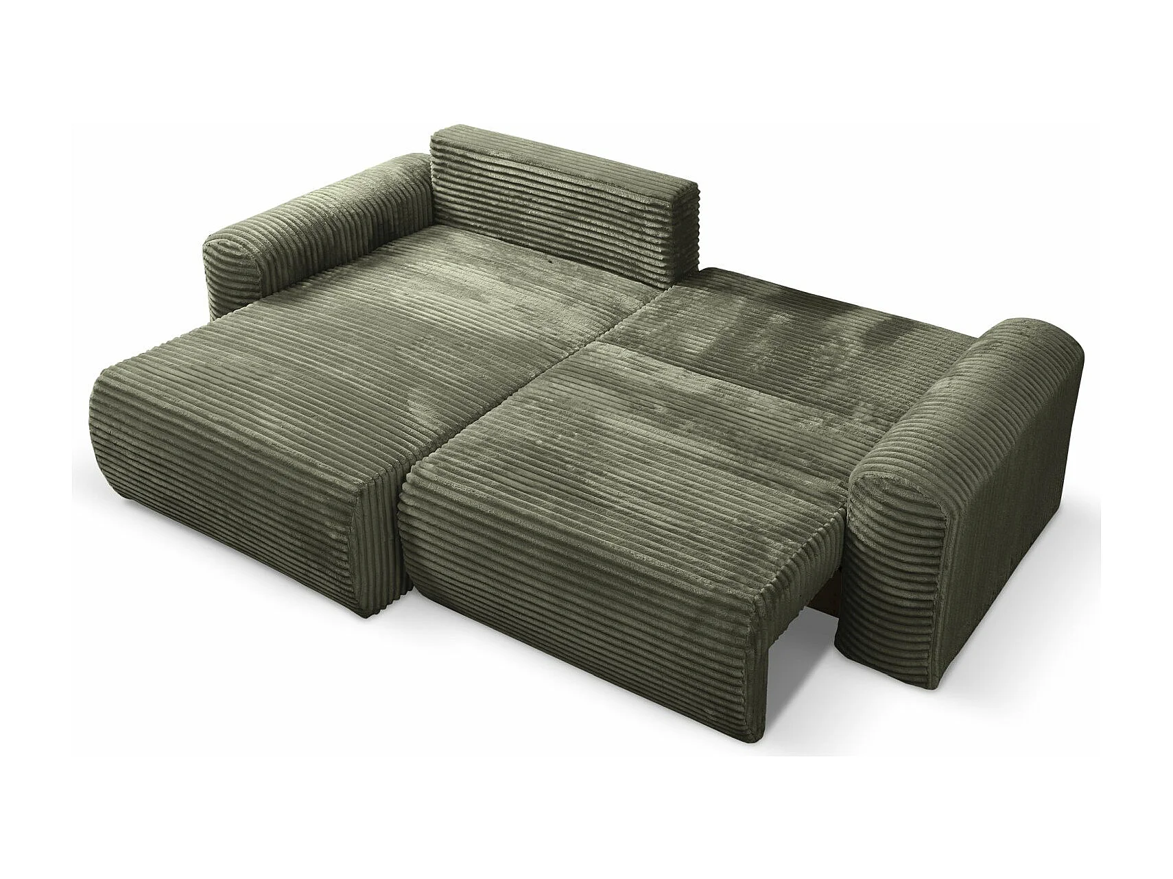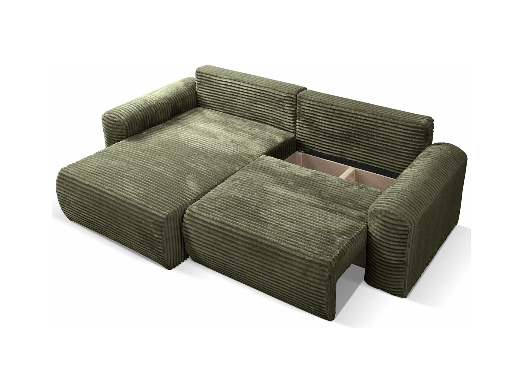 Canapé d'angle réversible avec fonction de couchage - en velours côtelé vert olive - LEO