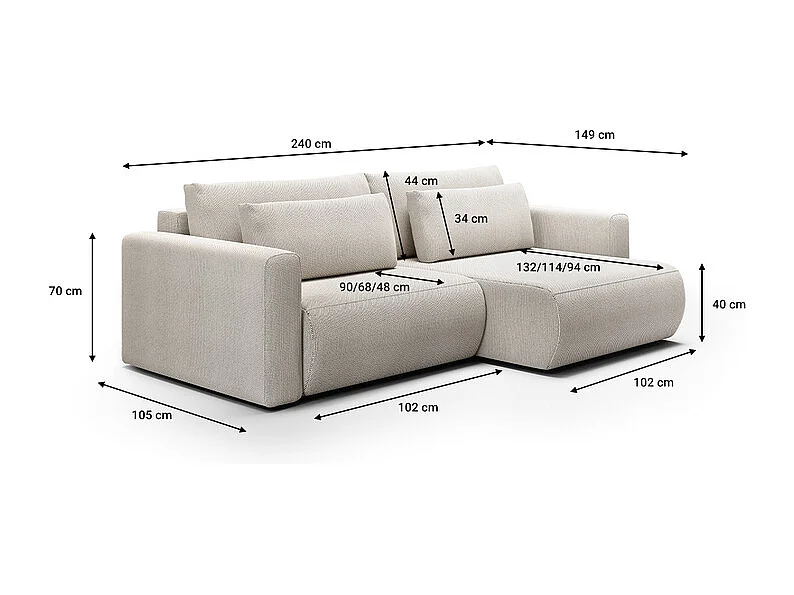 Canapé d'angle réversible convertible 3 places coffre Evy Gris Clair