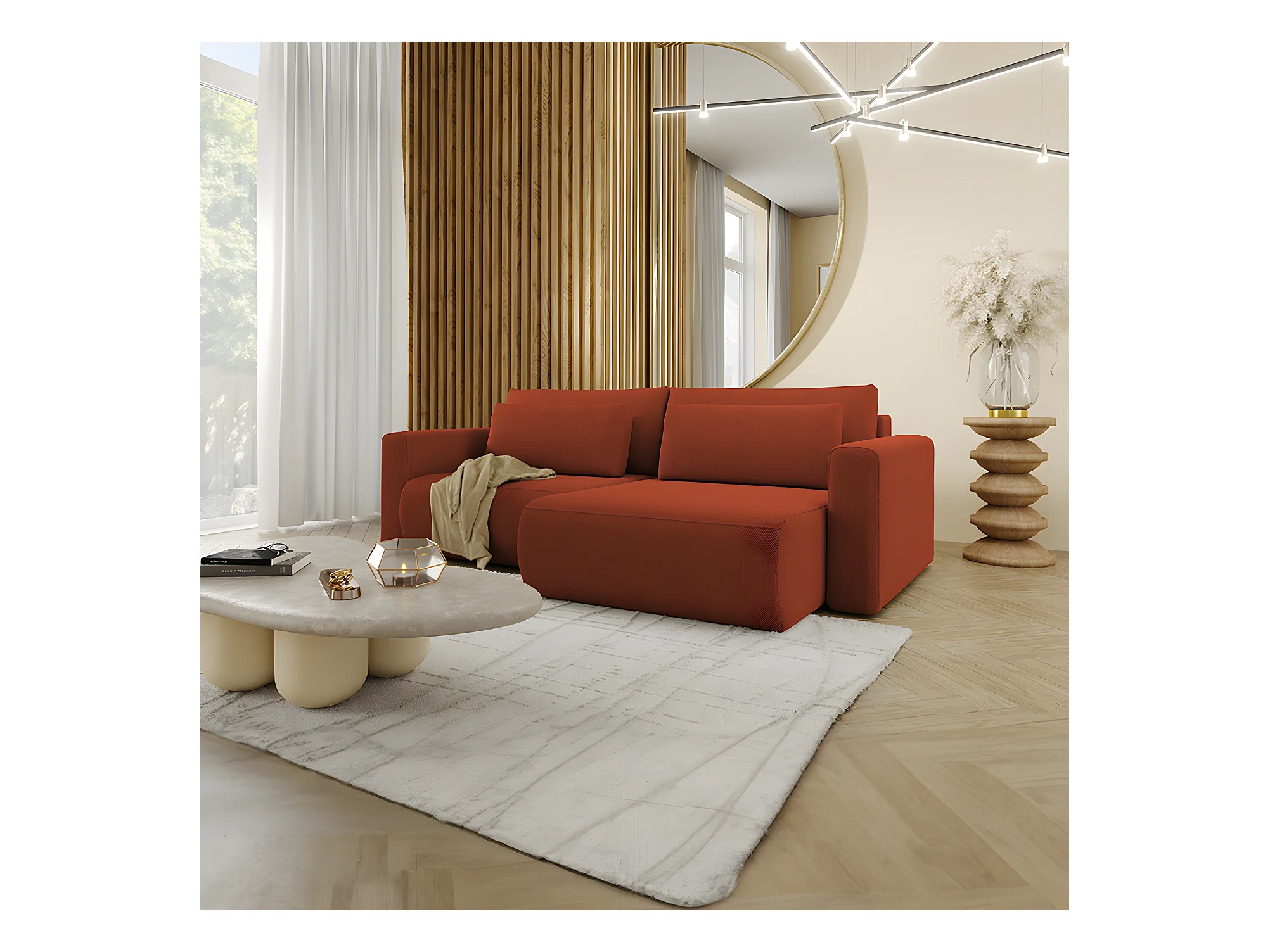 Canapé d'angle réversible convertible 3 places coffre Evy Orange Brique
