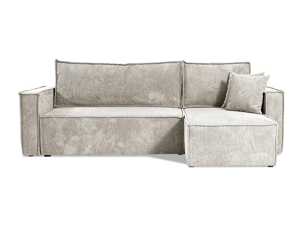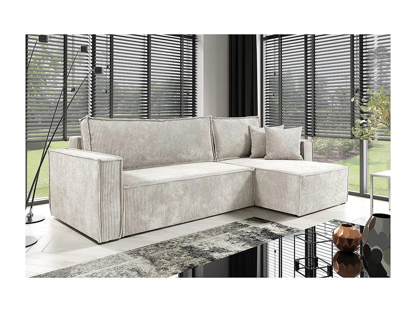 Canapé d'angle réversible convertible 3 places Ezekiel velours côtelé Blanc Cassé