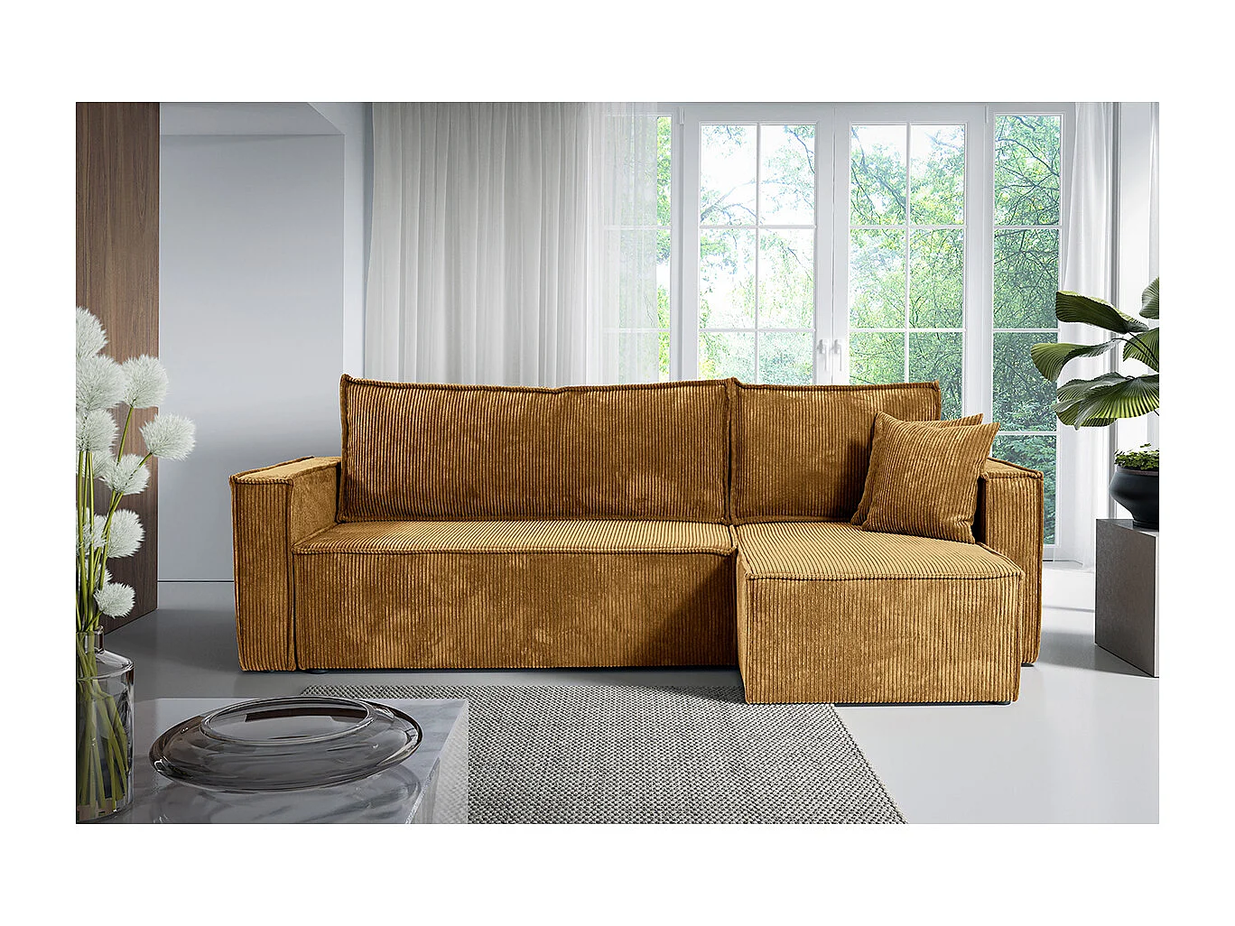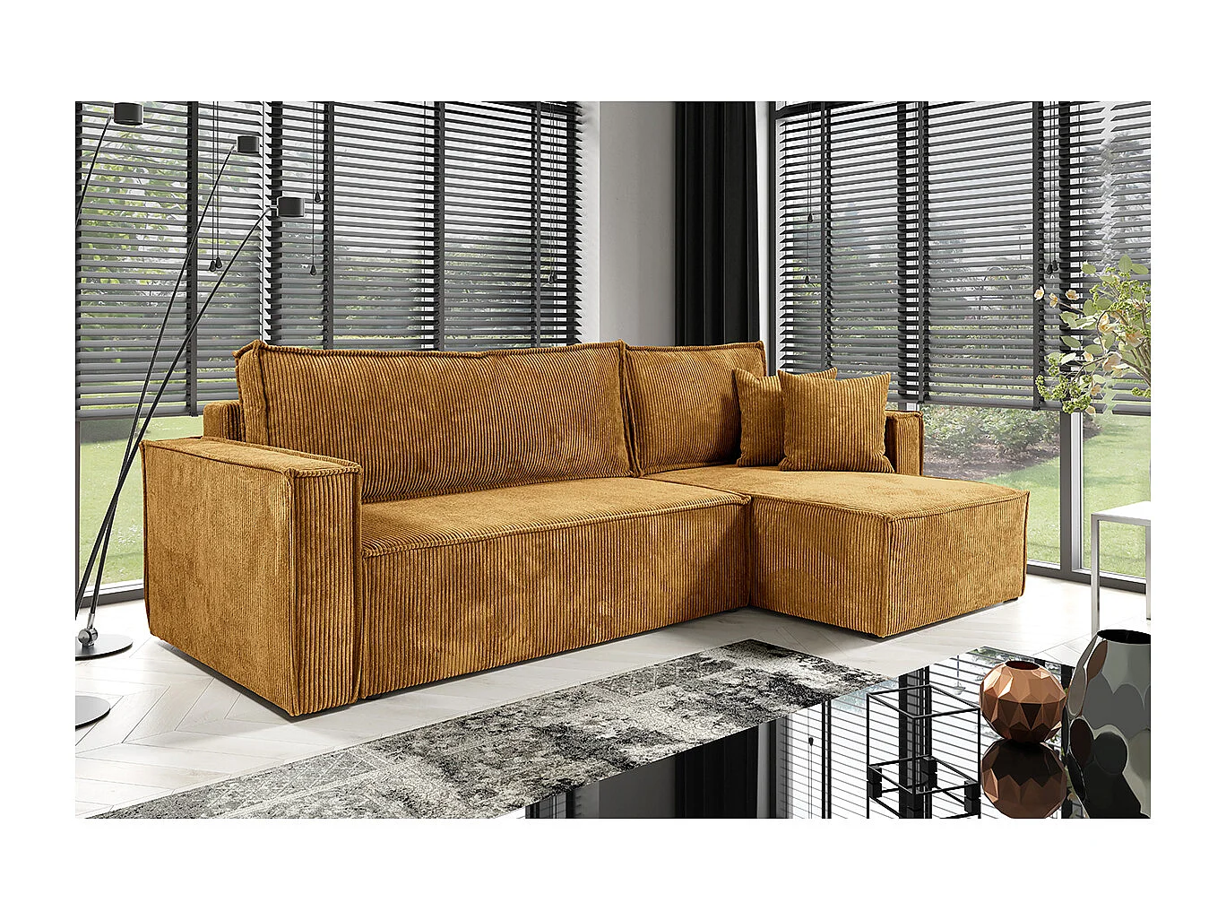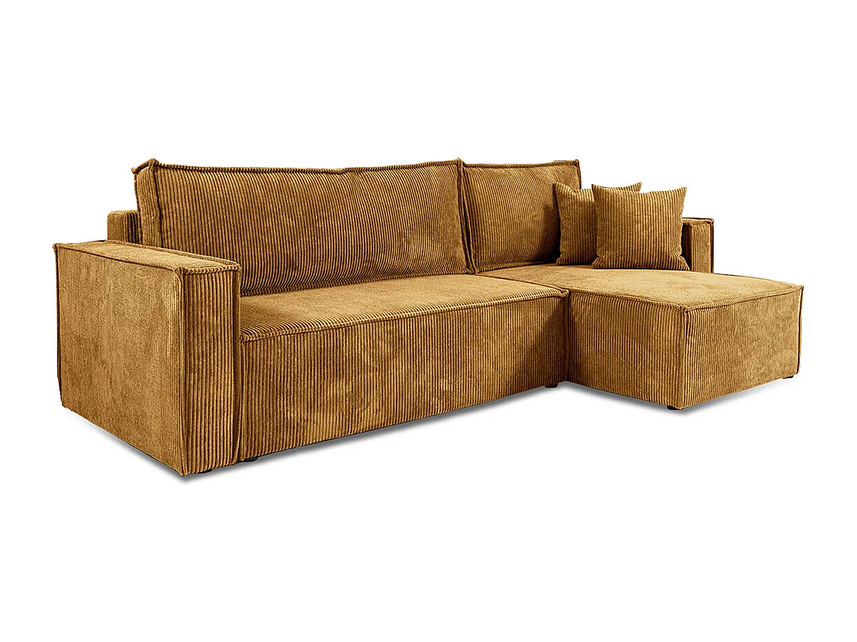 Canapé d'angle réversible convertible 3 places Ezekiel velours côtelé Jaune