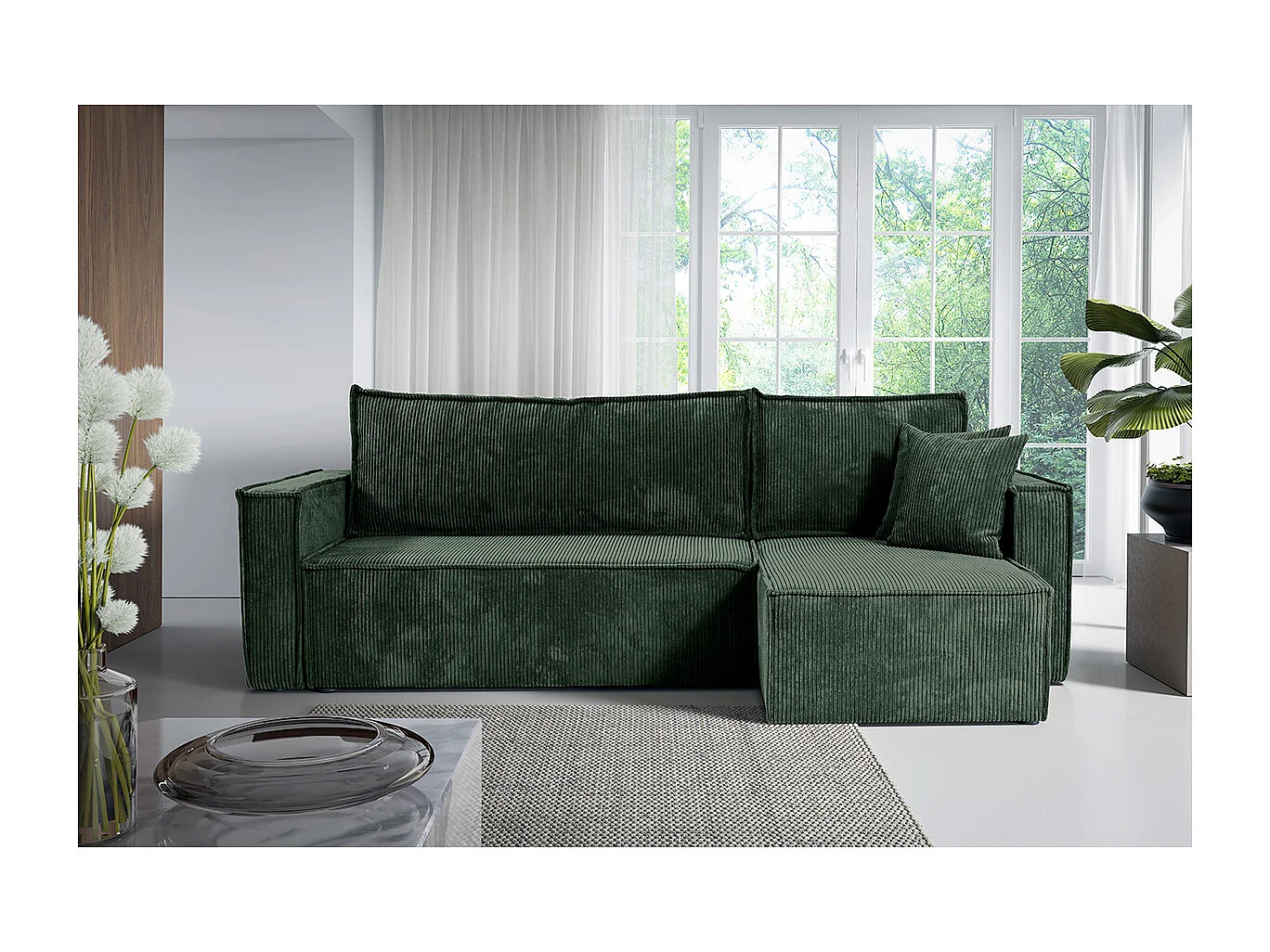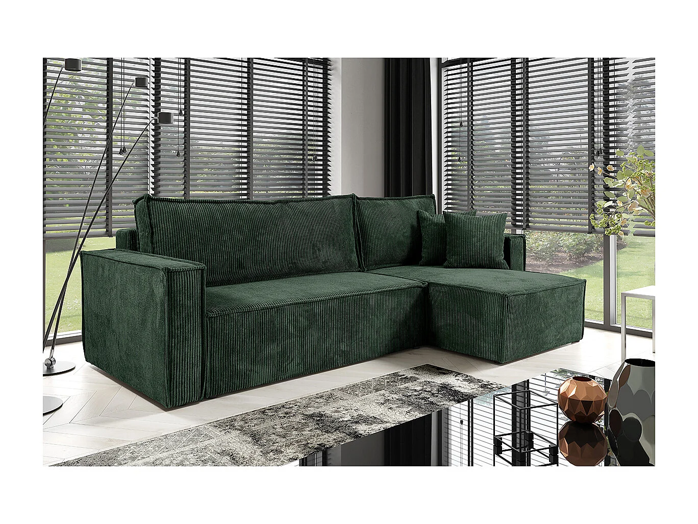 Canapé d'angle réversible convertible 3 places Ezekiel velours côtelé Vert Sapin