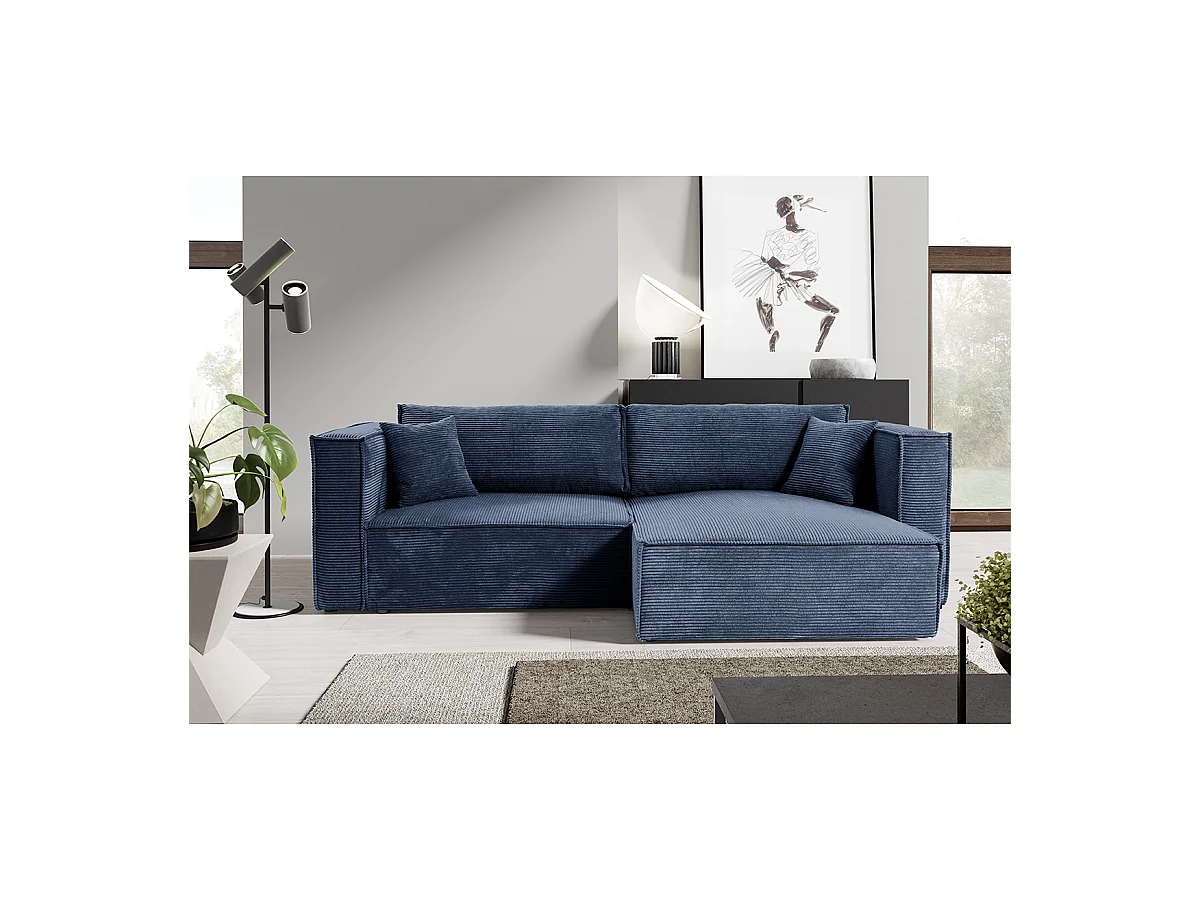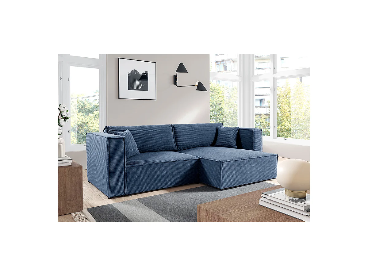 Canapé d'angle réversible convertible 3 places Jimmy velours côtelé Bleu