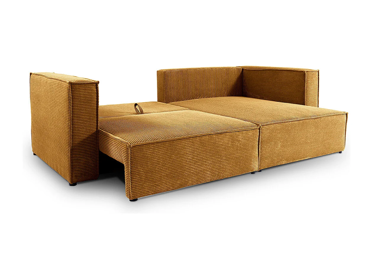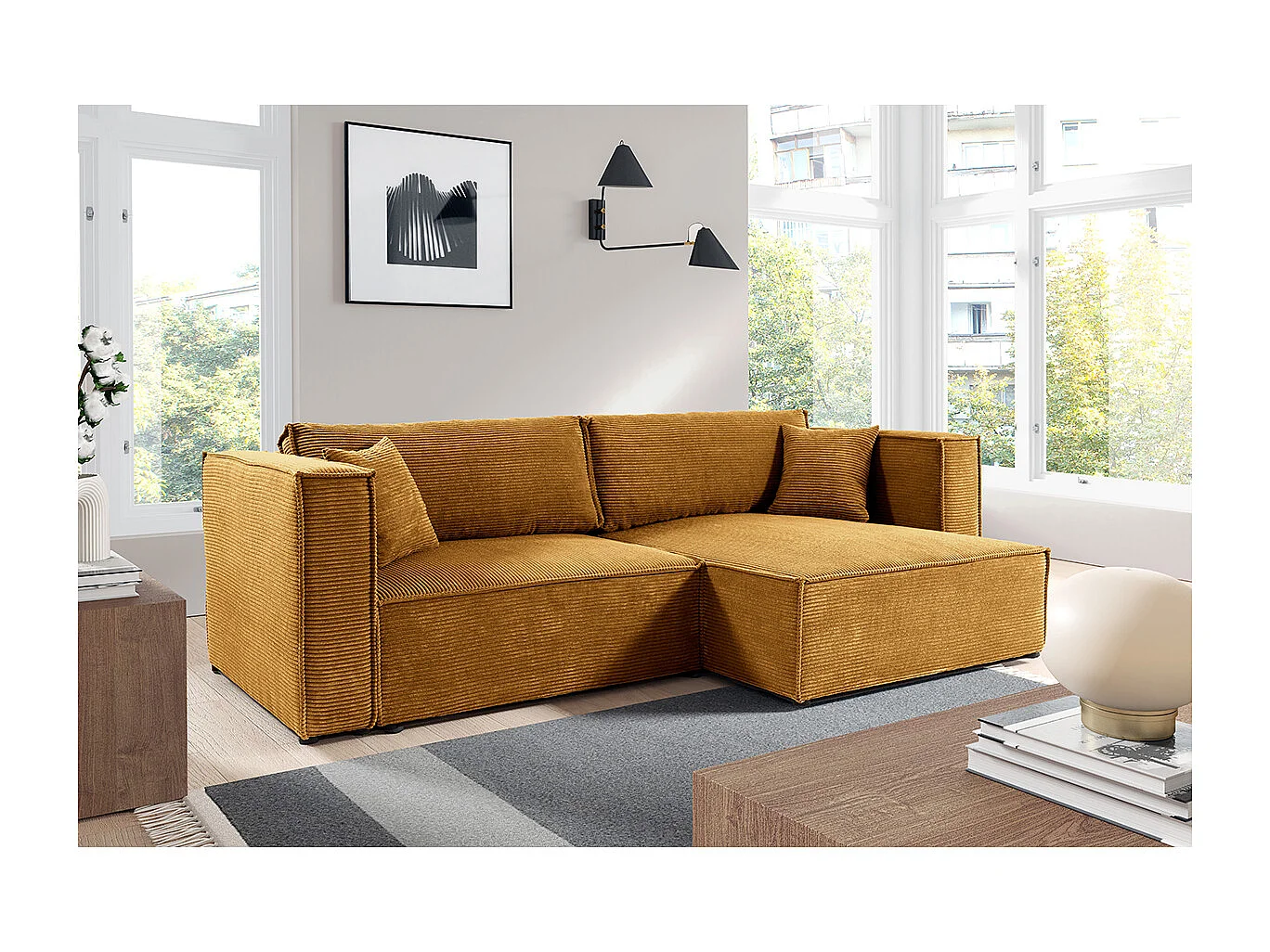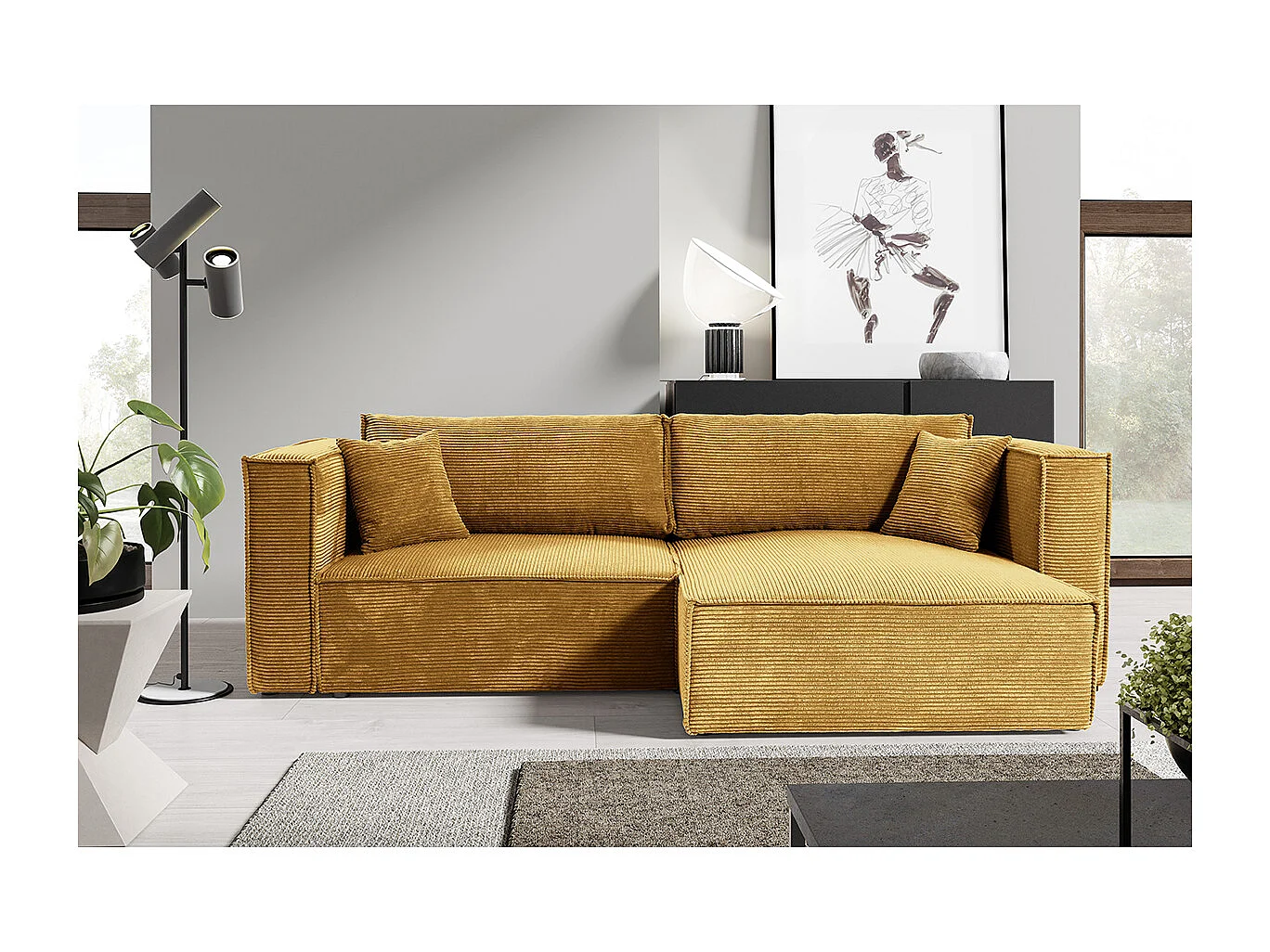 Canapé d'angle réversible convertible 3 places Jimmy velours côtelé Jaune