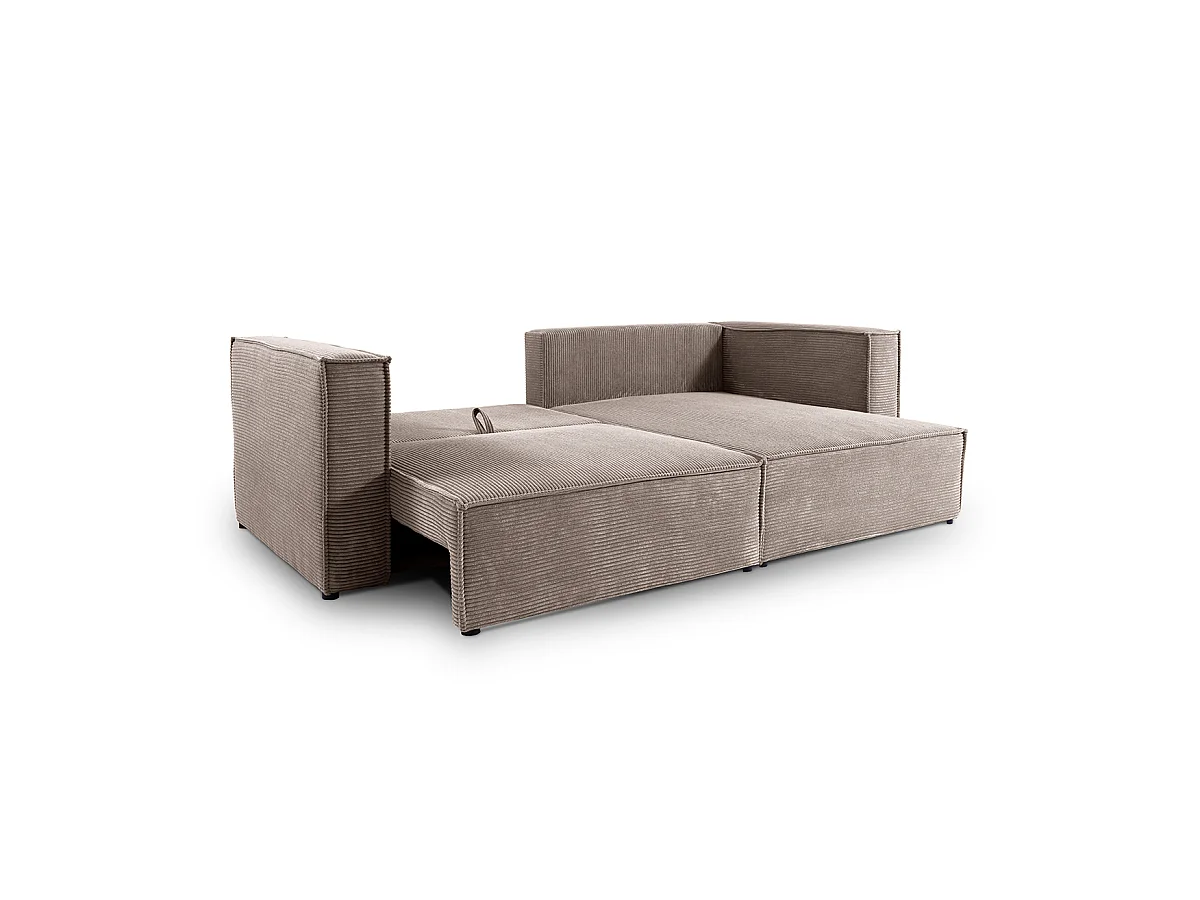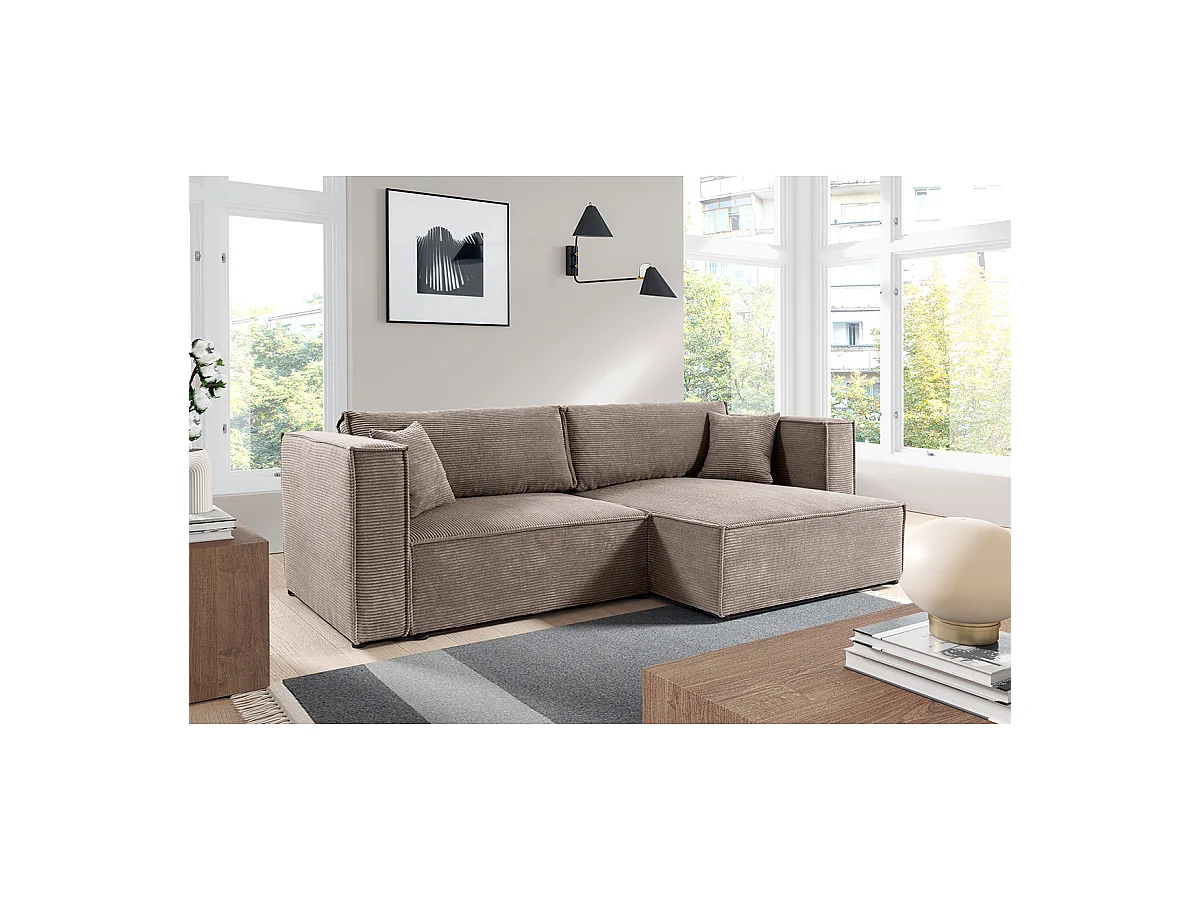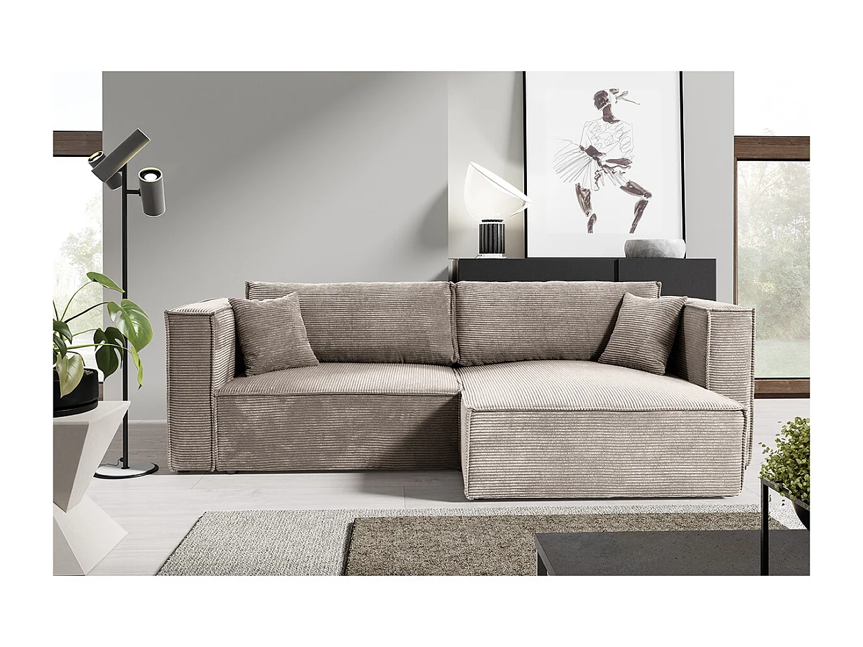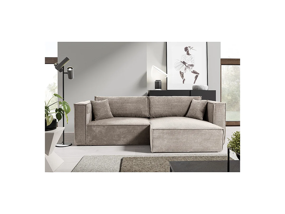 Canapé d'angle réversible convertible 3 places Jimmy velours côtelé Taupe