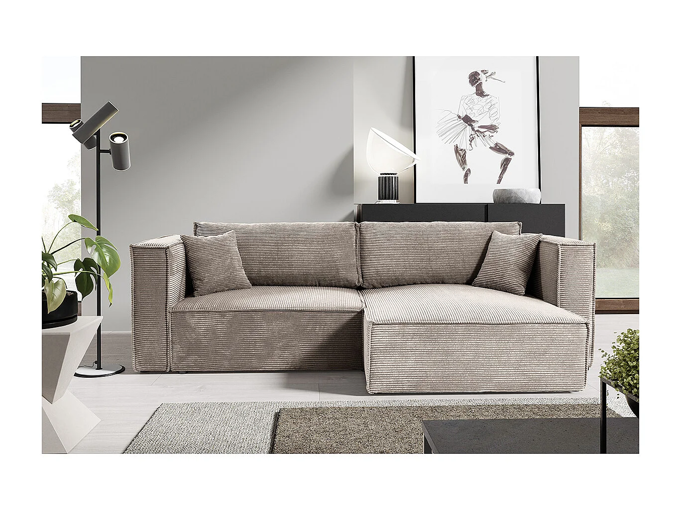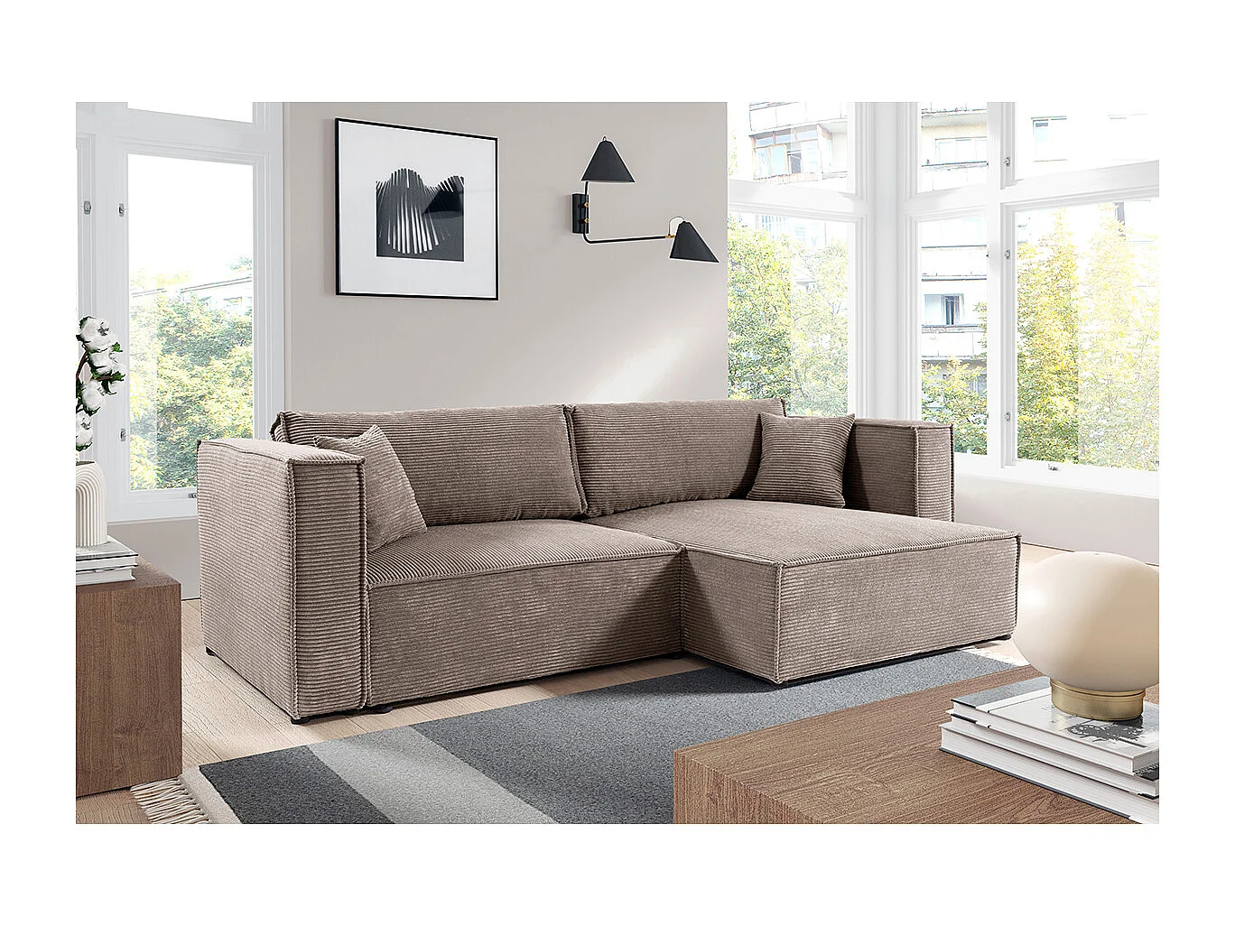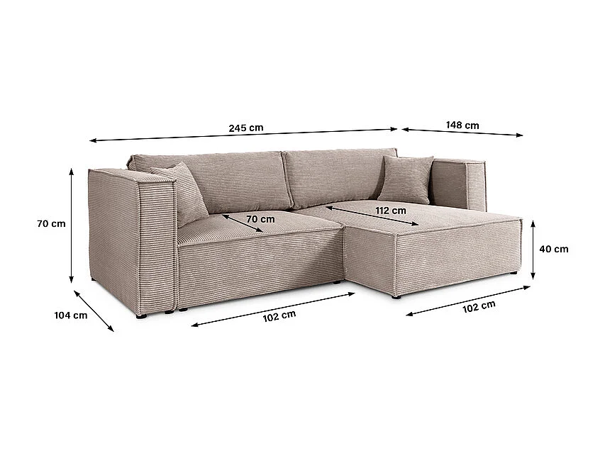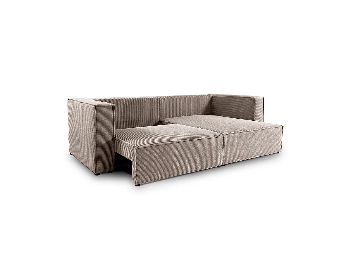 Canapé d'angle réversible convertible 3 places Jimmy velours côtelé Taupe