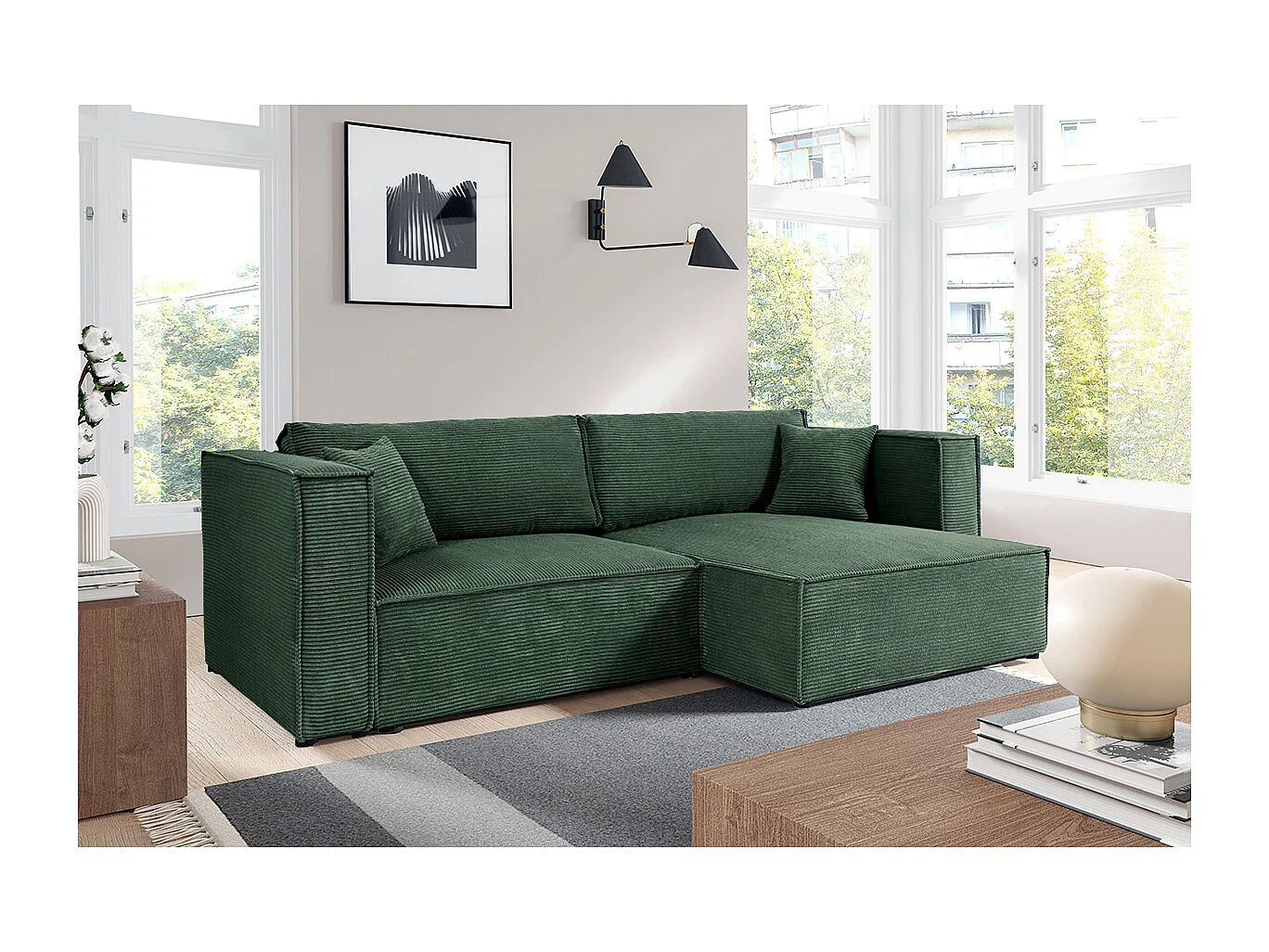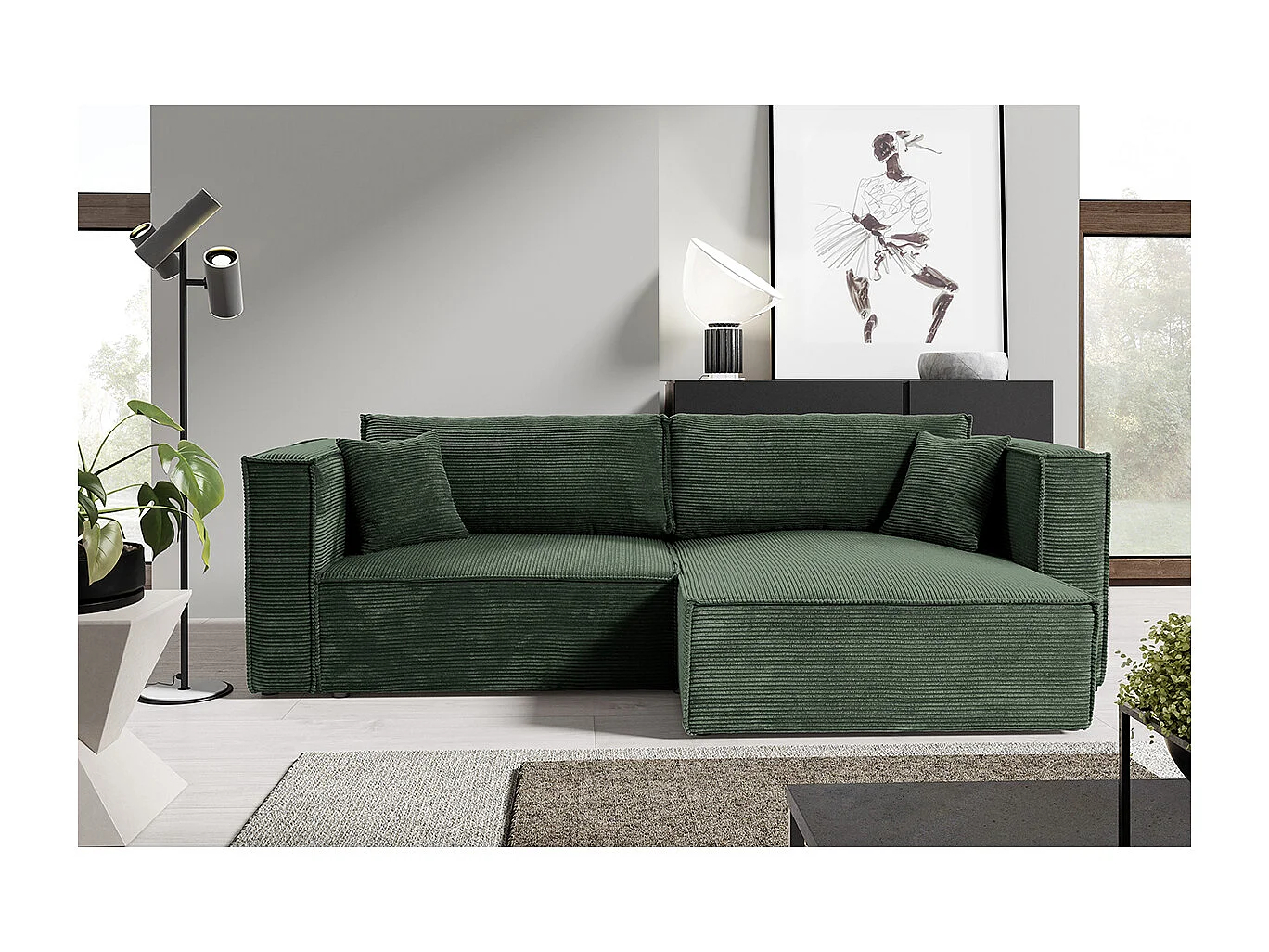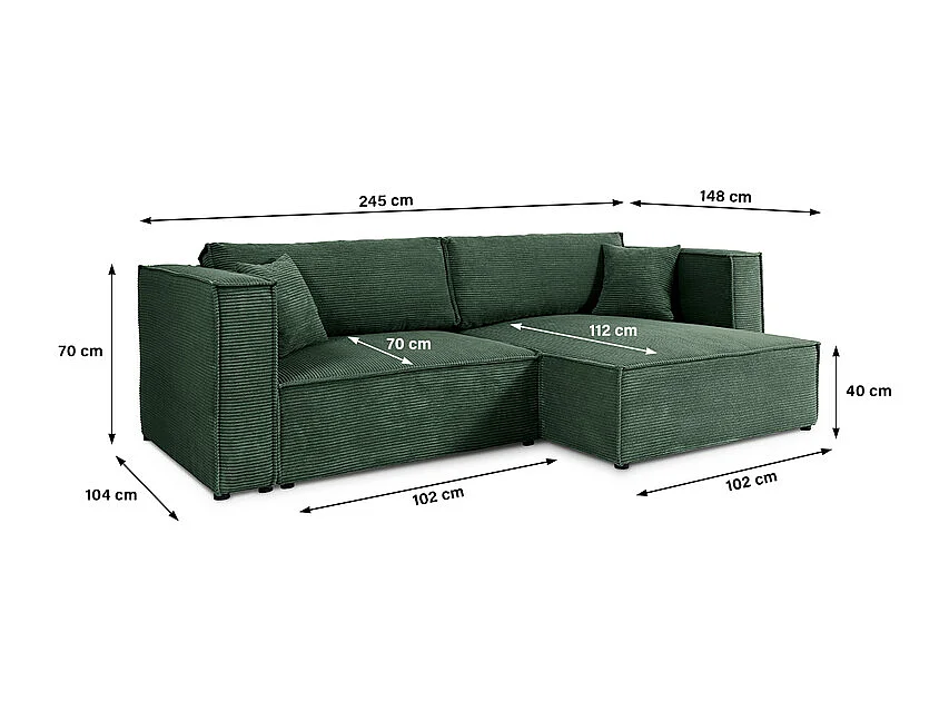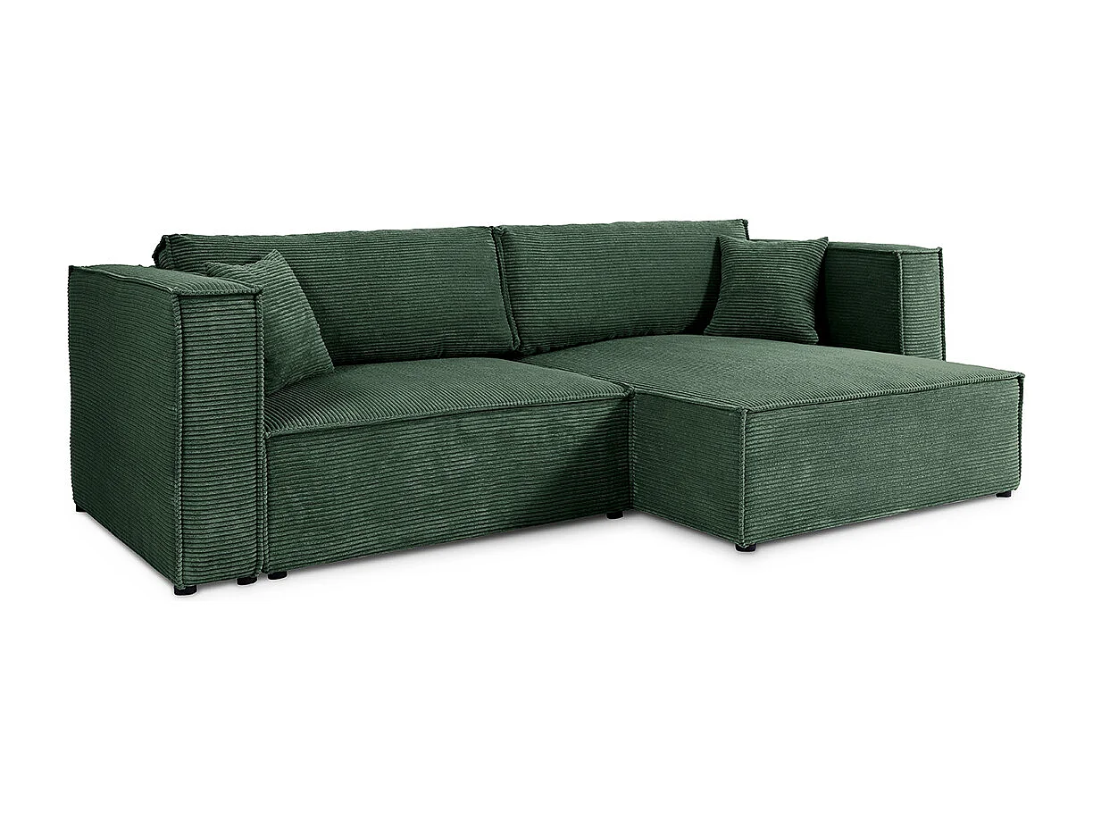 Canapé d'angle réversible convertible 3 places Jimmy velours côtelé Vert Sapin