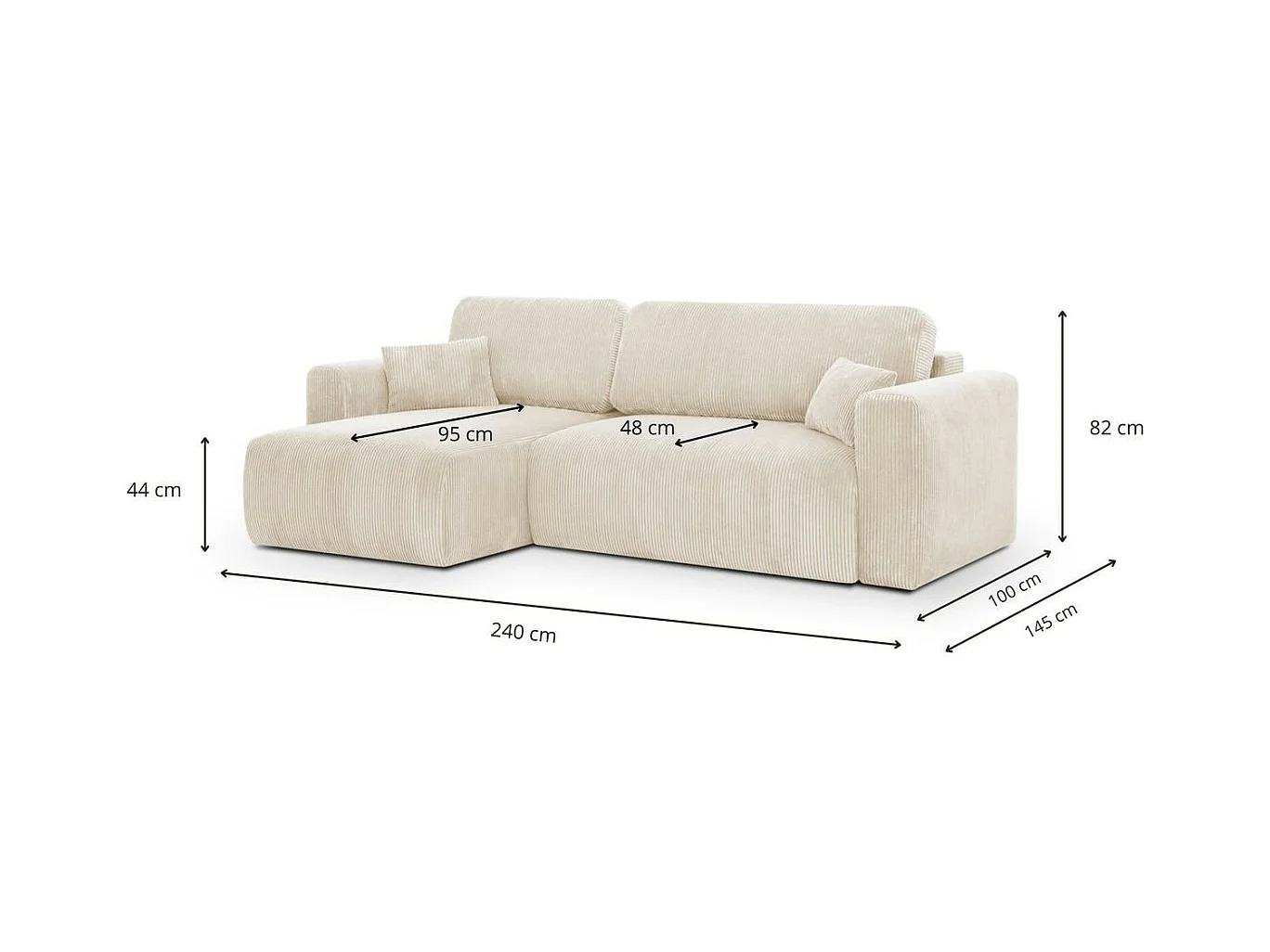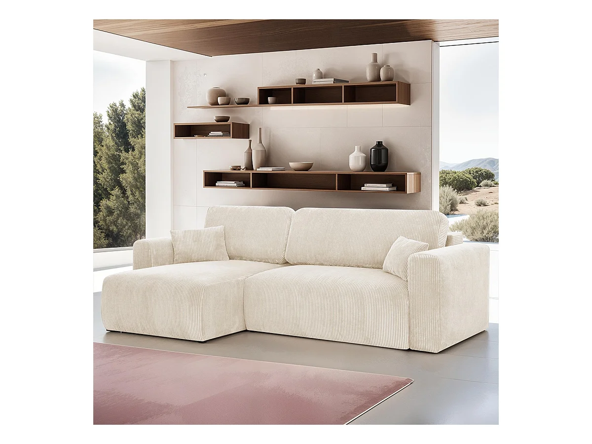 Canapé d'angle réversible convertible 4 places avec coffre de rangement en velours côtelé beige - Davis