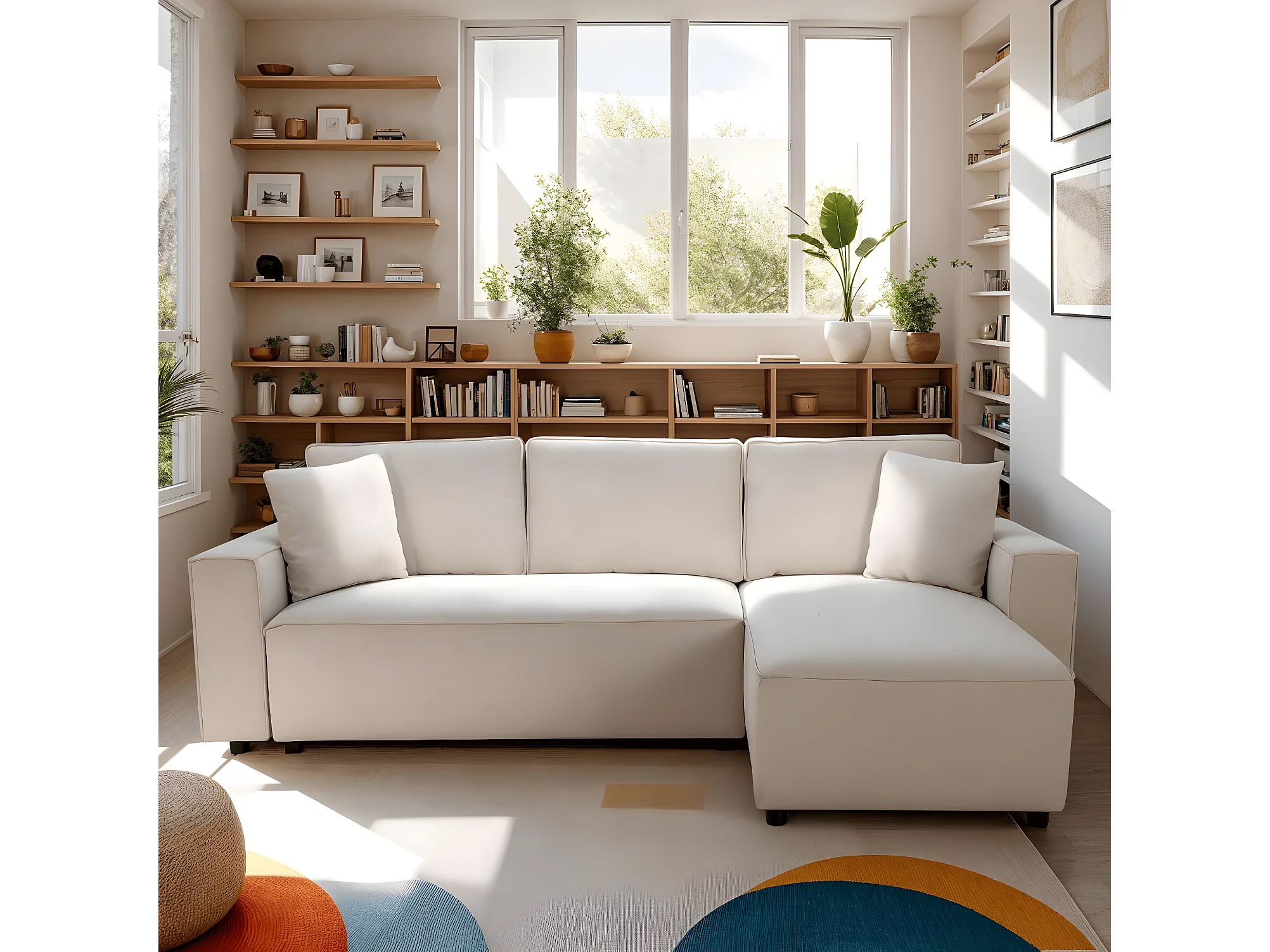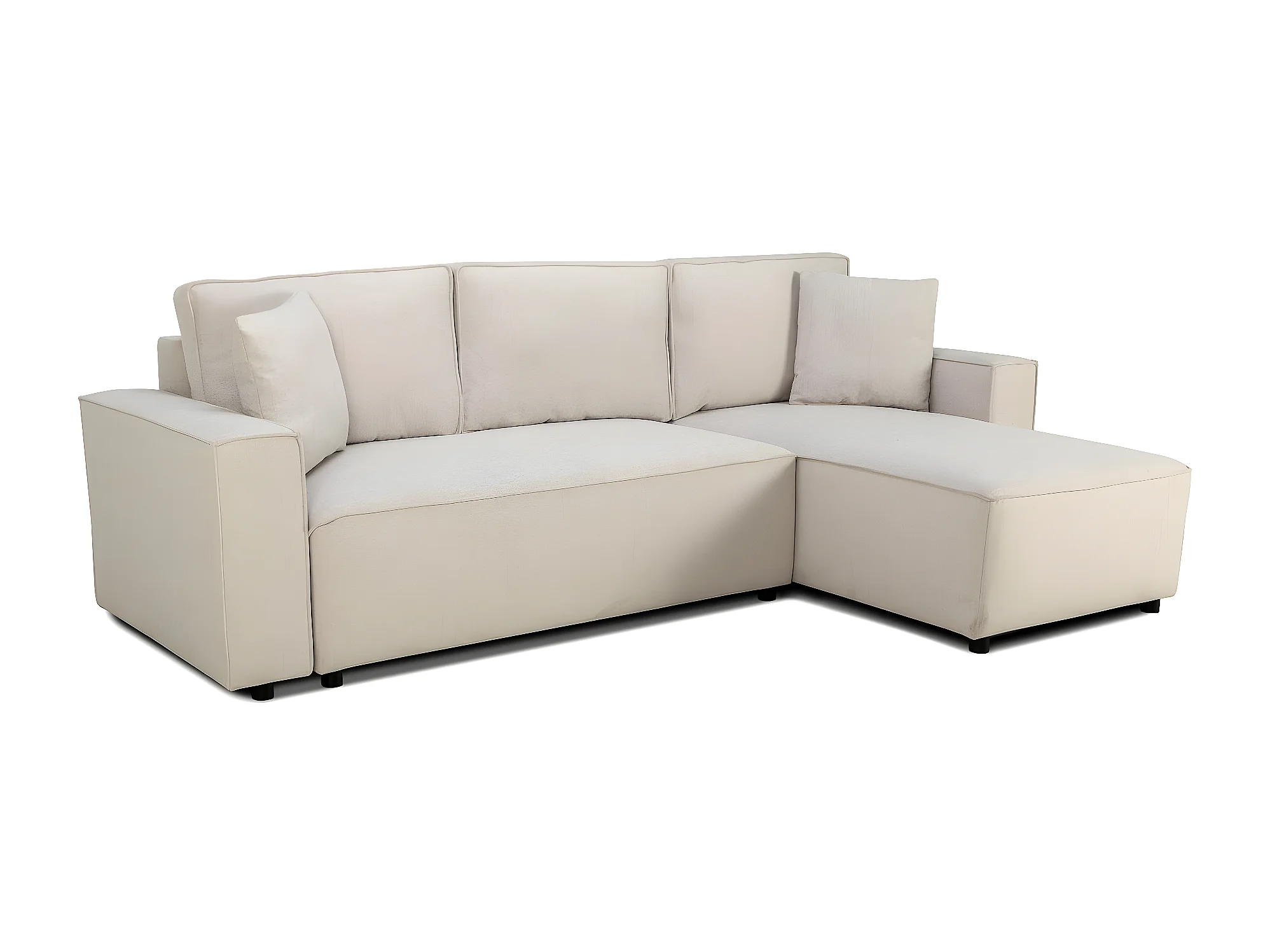Canapé d'angle réversible convertible 4 places en tissu beige - Théa