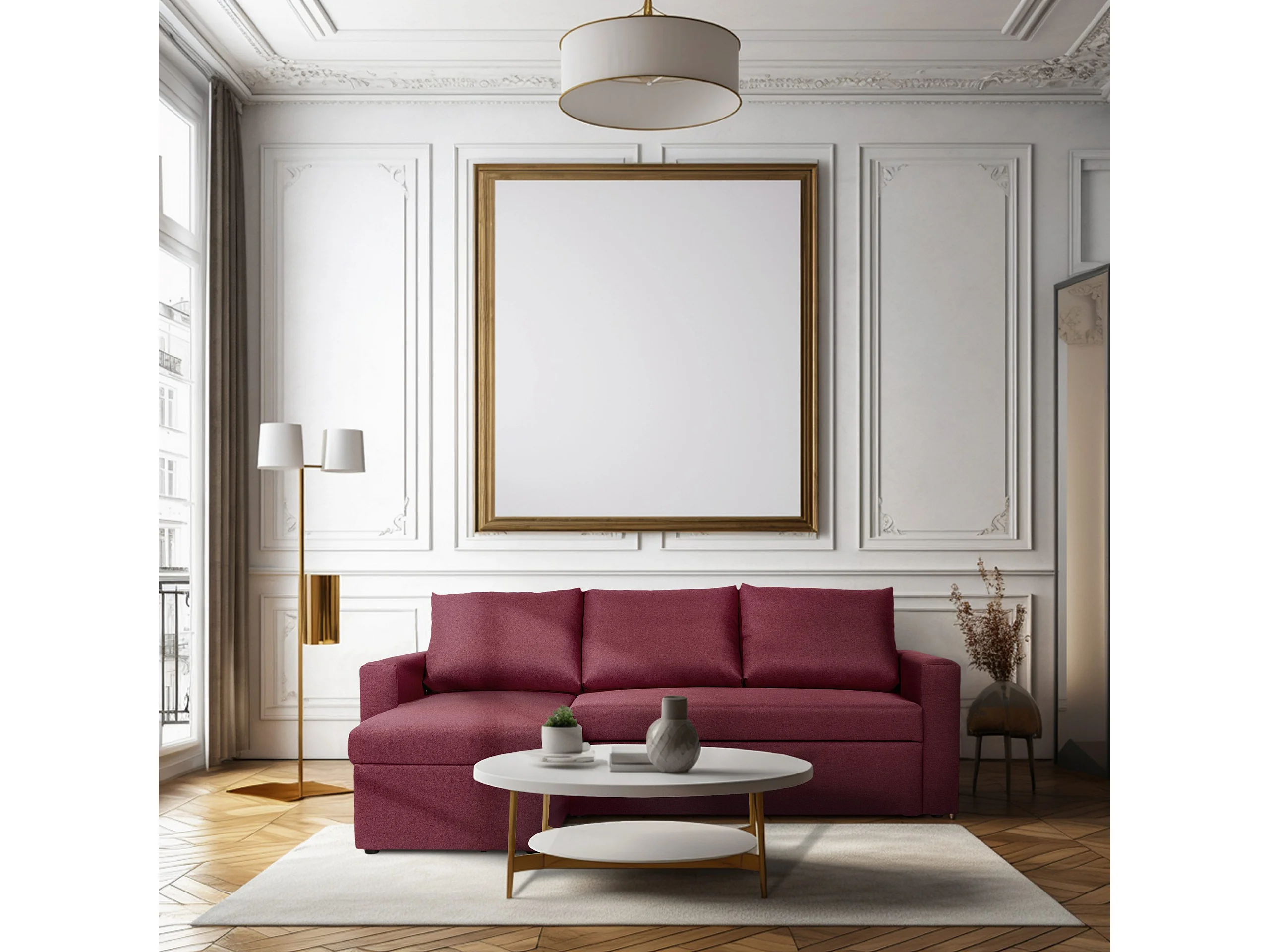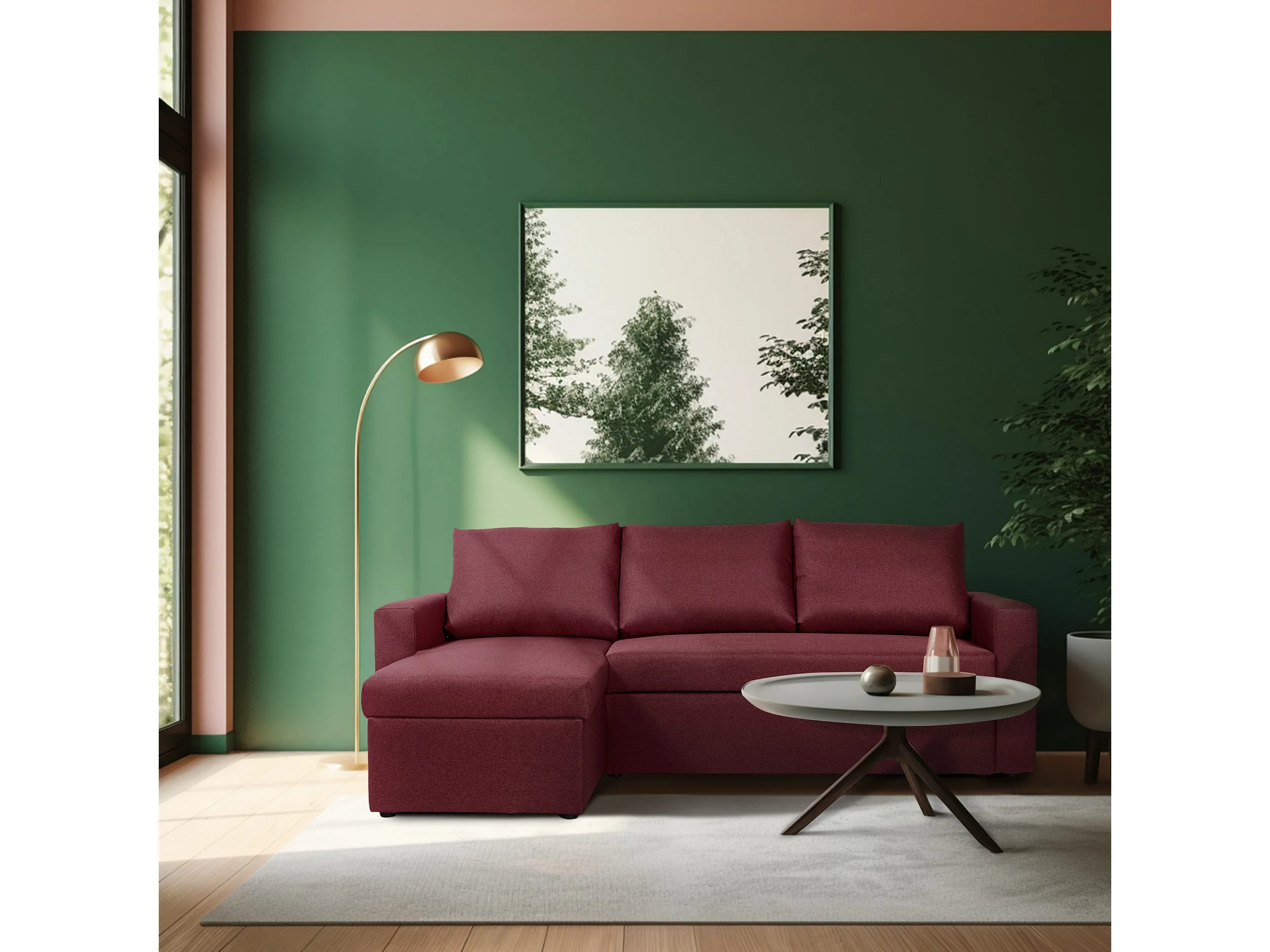 Canapé d'angle réversible convertible 4 places en tissu rouge bordeaux ALEDO - MADE IN FRANCE
