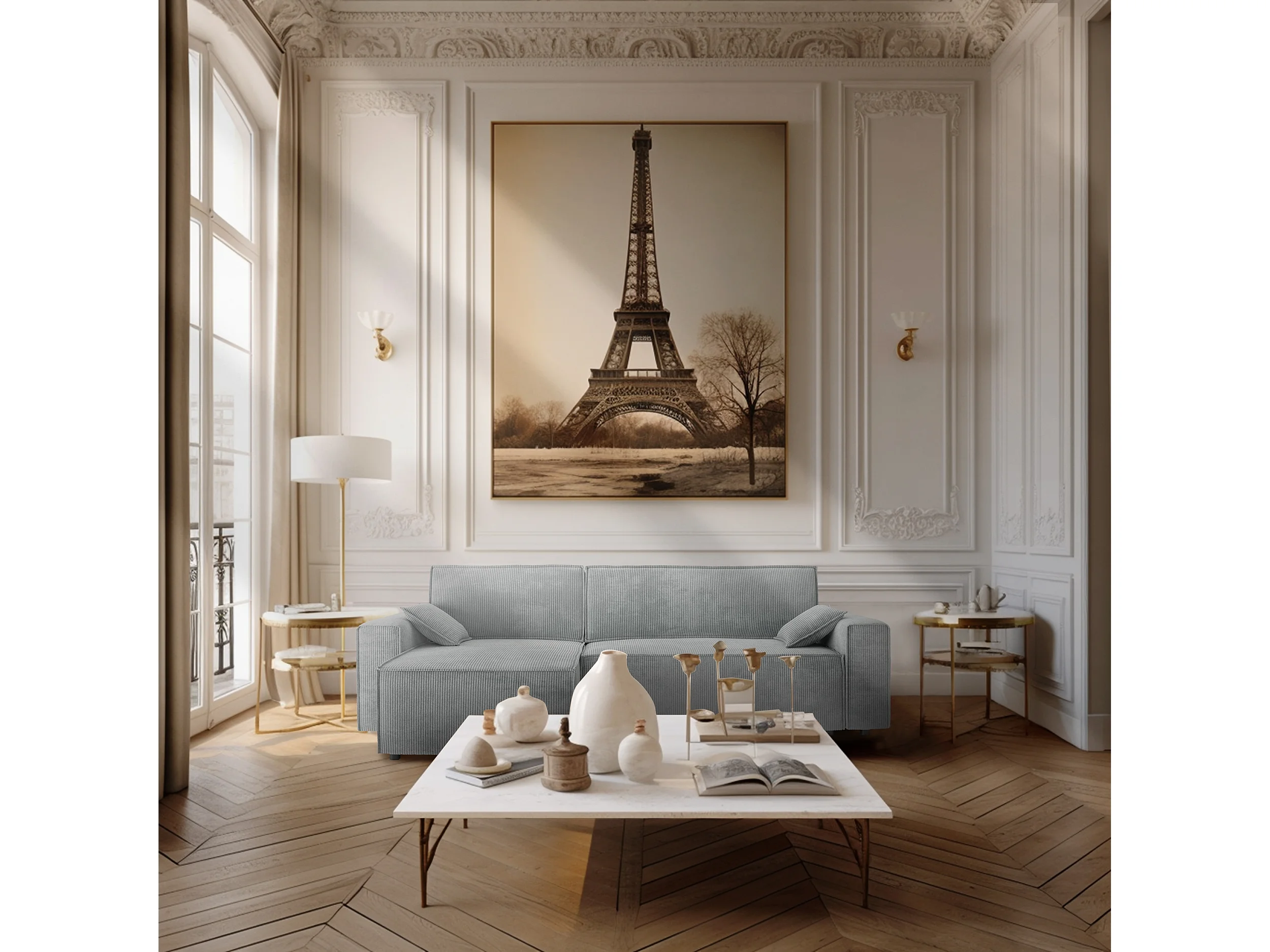 Canapé d'angle réversible convertible 4 places en velours côtelé gris DURIF - MADE IN FRANCE