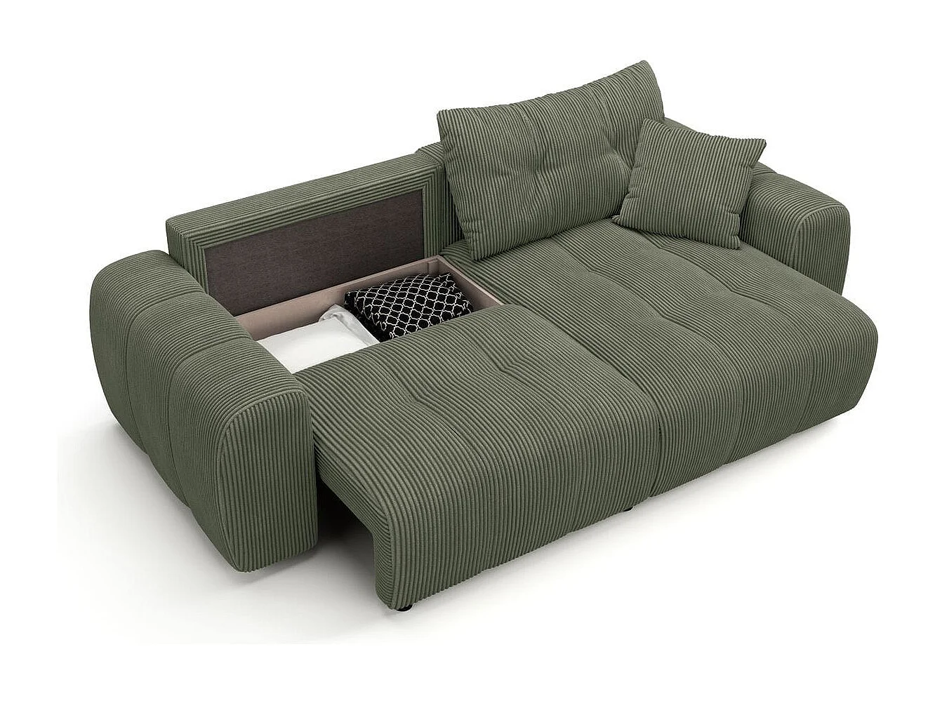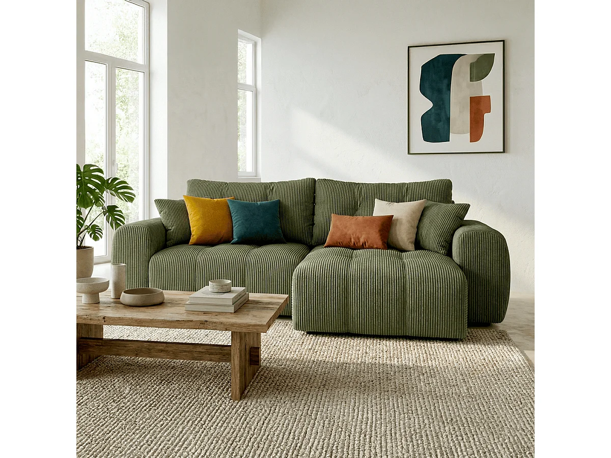 Canapé d'angle réversible convertible 4 places en velours côtelé vert kaki - Alba