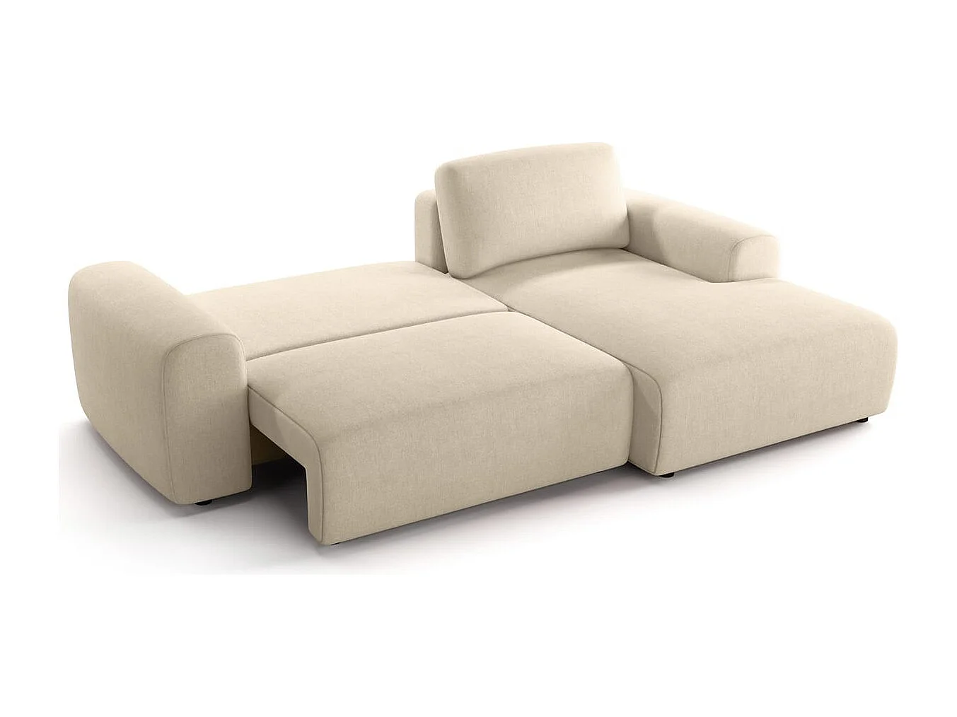 Canapé d'angle réversible convertible 5 places avec coffre de rangement en tissu chenille beige - Luno