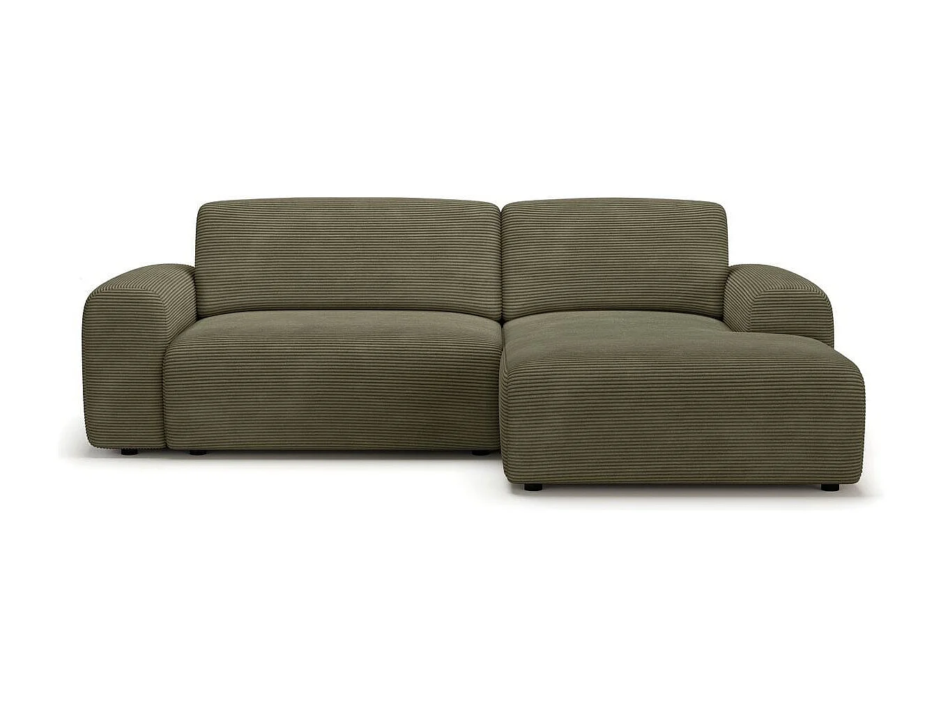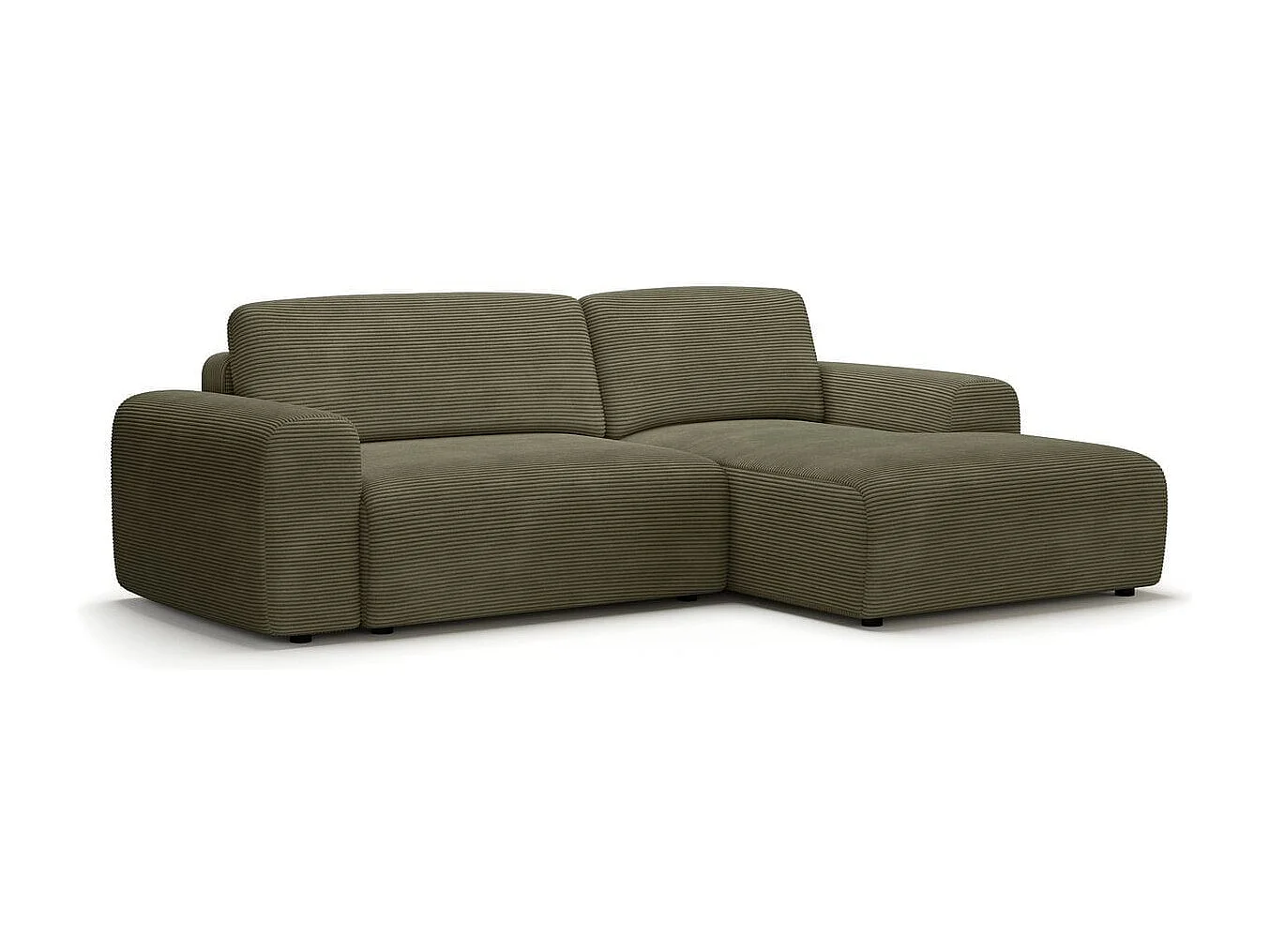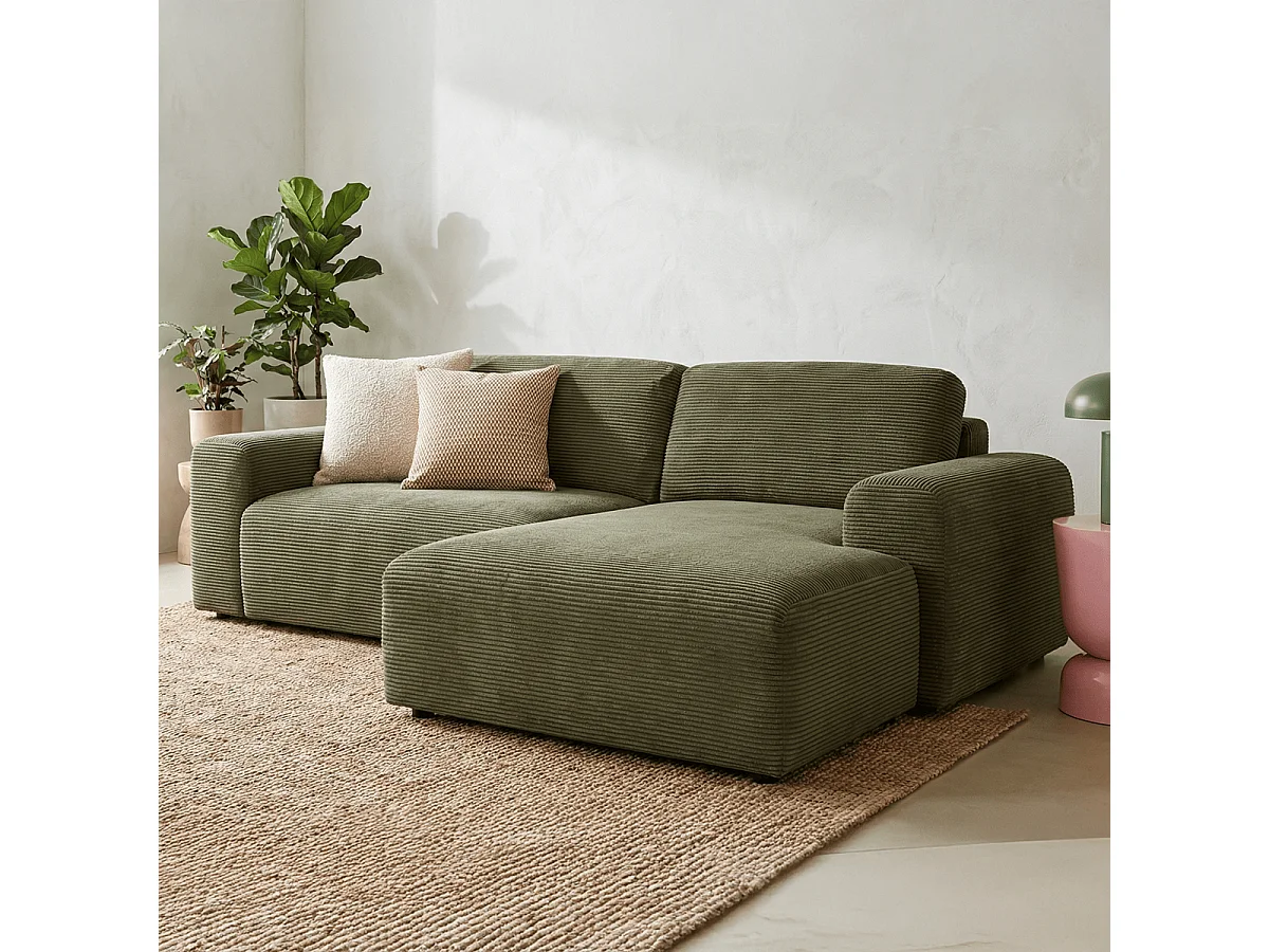 Canapé d'angle réversible convertible 5 places avec coffre de rangement en velours côtelé vert kaki - Luno